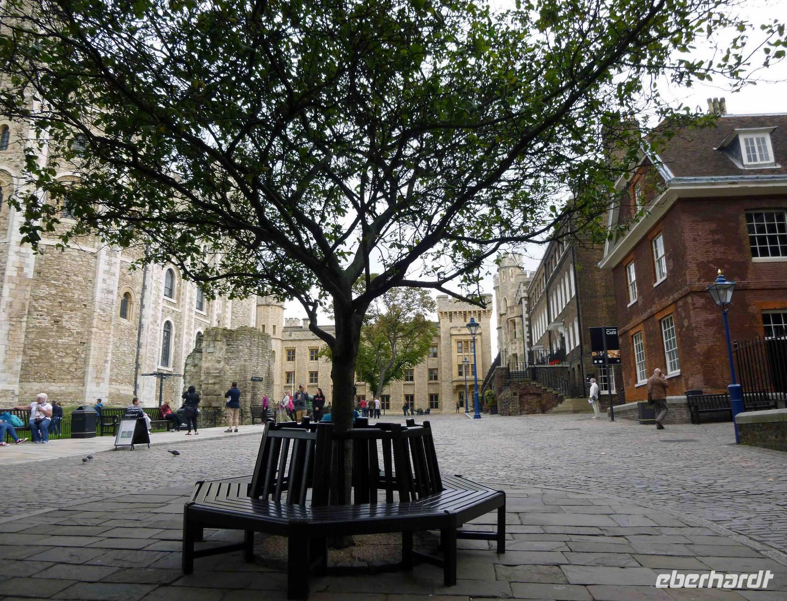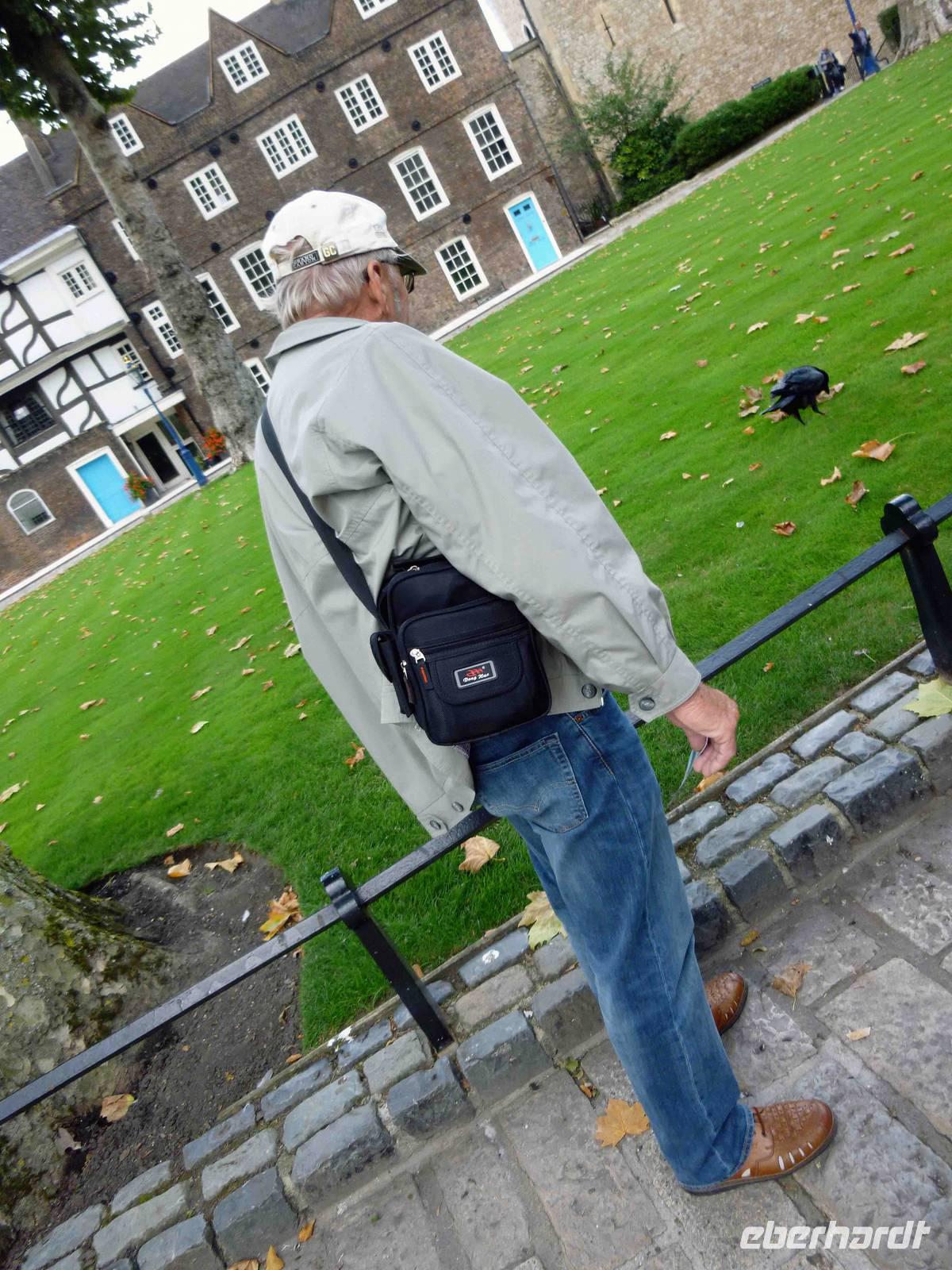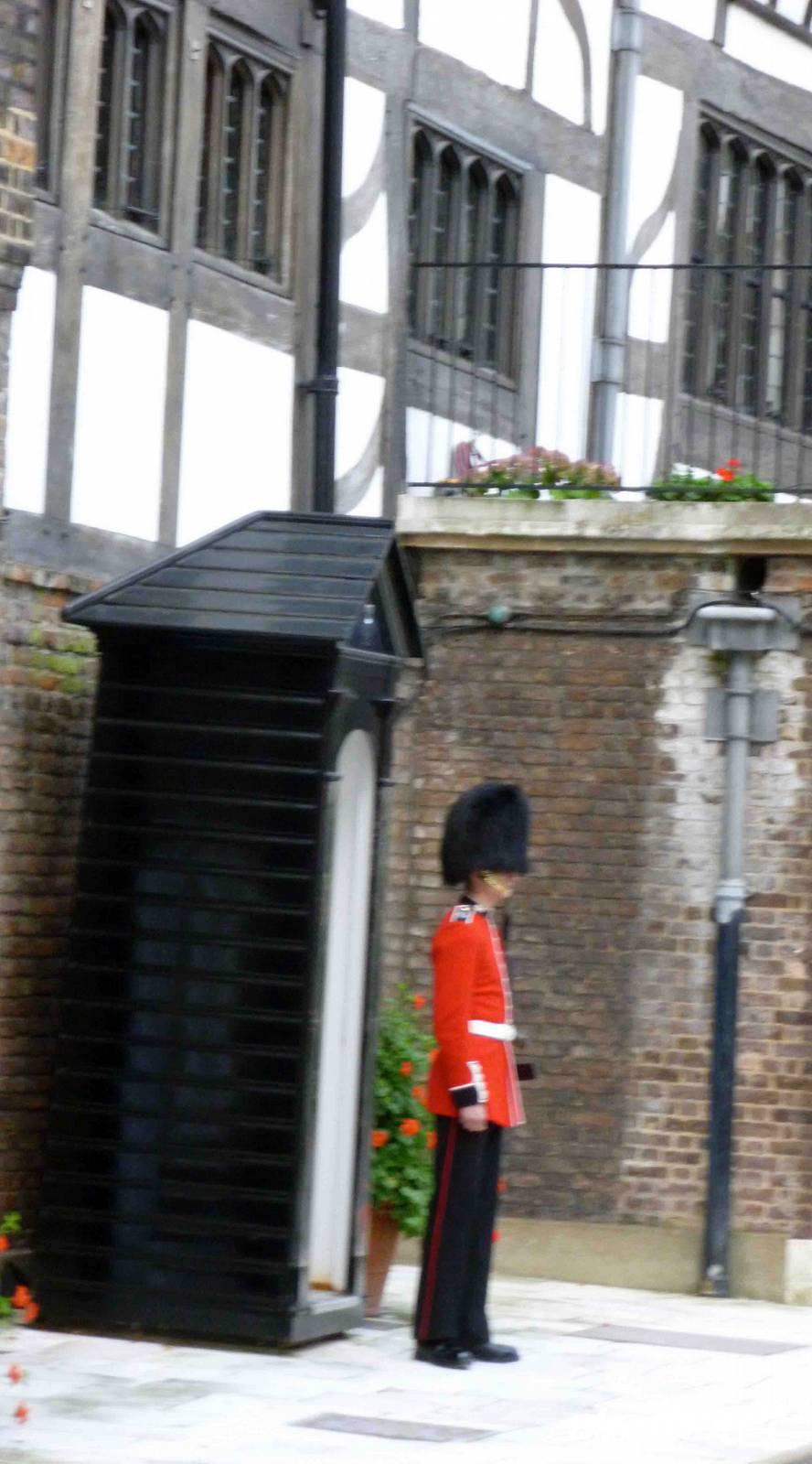 Dann weiter zum bewachten Queens House, dass für Anna Boleyn erbaut wurde, dessen Fertigstellung sie jedoch nicht mehr erlebte: auch sie wurde auf dem königlichen Schafott davor hingerichtet. Hier sahen wir auch die Yeoman Warders, altgediente Soldaten, die sich um uns Besucher und die Empire-Raben kümmerten. Da von deren Wohlergehen das Wohlergehen des Empire abhing, hatten sie genug zu tun!