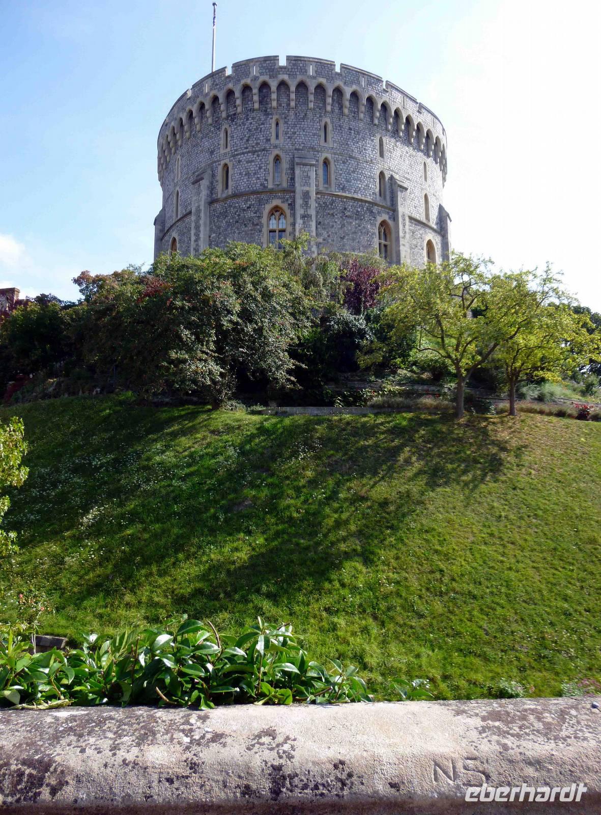 Dann weiter zum Keep (Motte) und nach außen auf die Nordterassen mit herrlichem Blick auf Eton zum Eingang der Staatsgemächer mit Puppenhaus, St. Georgs Hall, den Privatgemächern des Königs und der Königin, dem Saal des Hosenbandordens, dem Speisesaal etc.