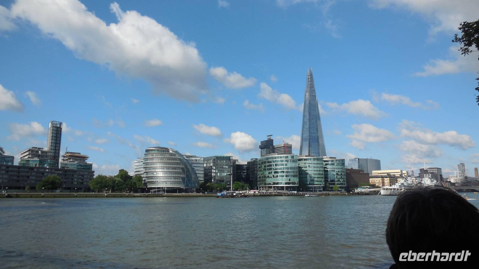 wir eine Bootsfahrt auf der Themse.Wissenswertes über die vorbeiziehenden Gebäude