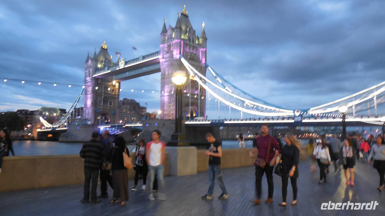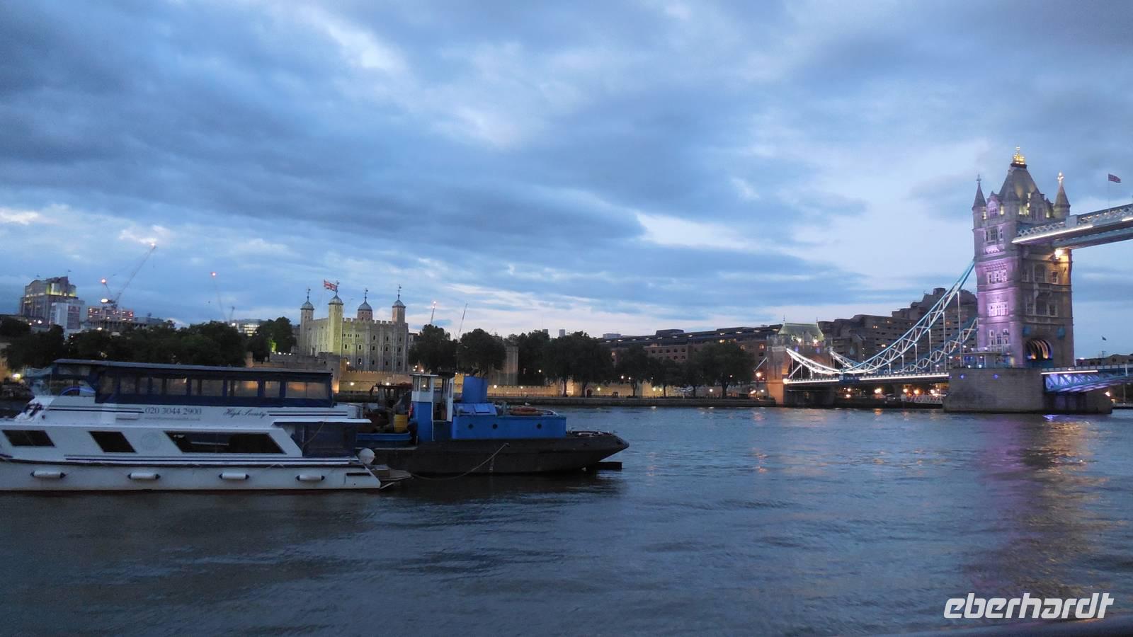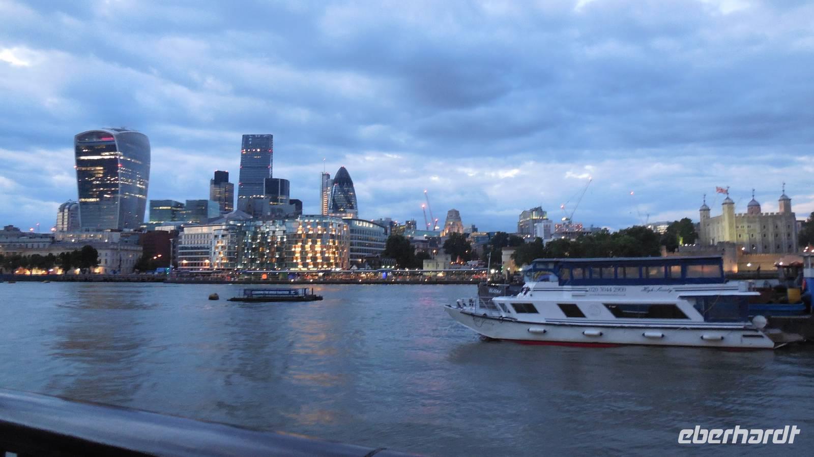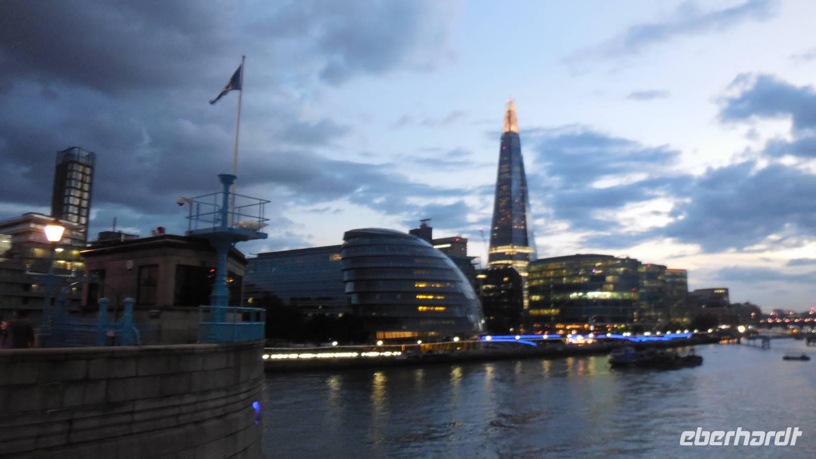 Themse und die Stadt.Abends spazierten wir gemeinsam über die Tower-Bridge und am Kai