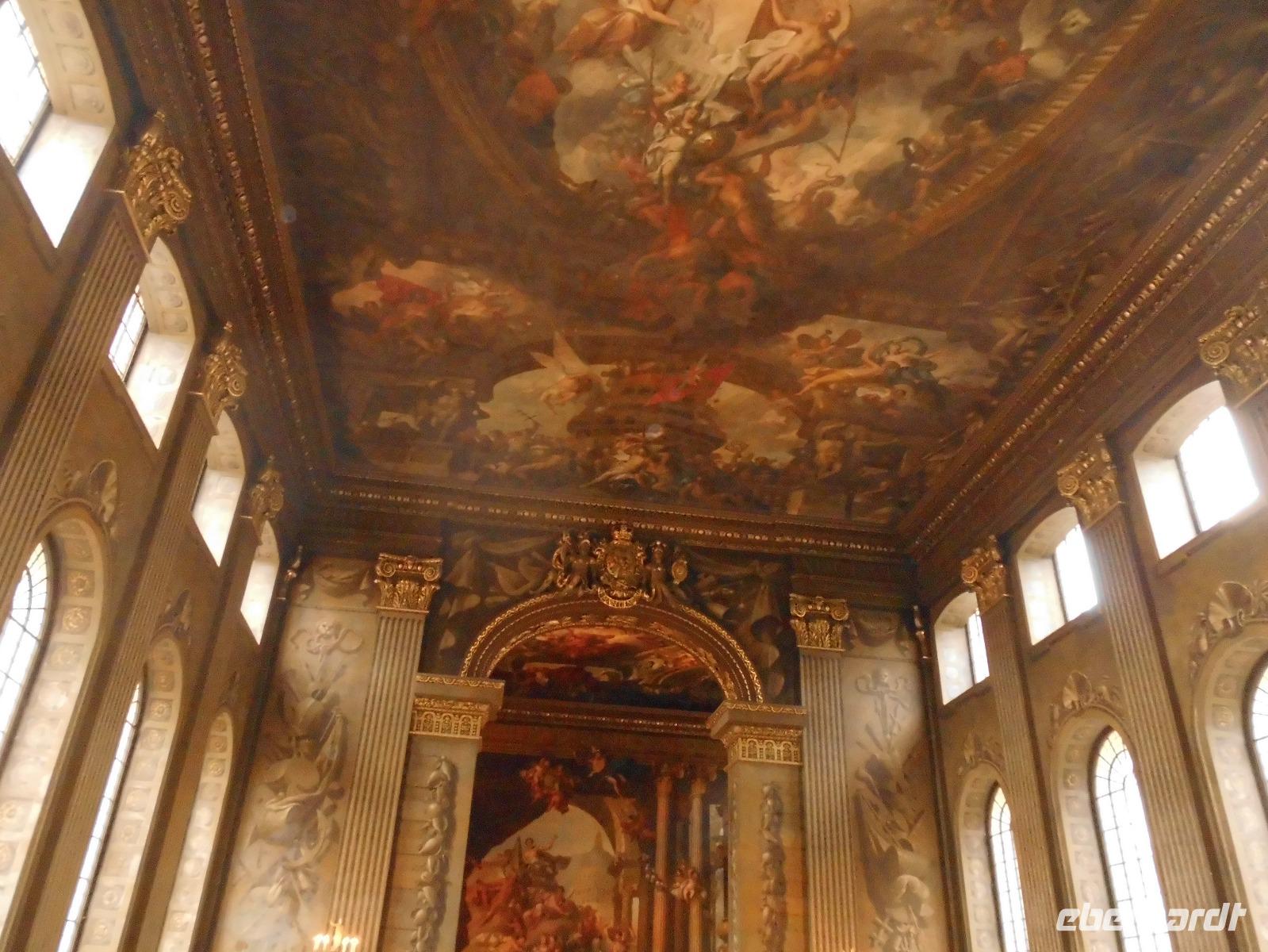 Mit unserer Stadtführerin Eva entdeckten wir die Sehenswürdigkeiten der Stadt bei einer Busfahrt. Auf einem kleinen Spaziergang zeigte sie uns auch stille Winkel, die man inmitten dieser betriebsamen Stadt nicht vermuten würde .Auch interessante „Histörchen" wusste sie zu erzählen. Der Nachmittag begann mit einer Schifffahrt auf der Themse. Vorbei am London-Eye, St. Paul's Cathedral, dem Tower, unserem Hotel, den Docklands, unter der Tower-Bridge und anderen hindurch, fuhren wir nach Greenwich. Dort erwartete uns die „Cutty Sark" und das vom Erbauer der St. Paul's Kathedrale entworfene Bauensemble der ehemaligen Militärakademie. Wir schauen schauten uns die prächtige „Painting Galerie" an. Dort bewunderten wir auch einen gerade zum Master graduierten Studenten mit seiner sehr festlich gekleideten stolzen Familie, die wir auch fotografieren durften. Bevor wir gemeinsam den Hügel zum Nullmeridian hinaufgingen, war Gelegenheit sich im Maritimen Museum umzuschauen. Am Meridian herrschte reger Andrang, denn viele Touristen möchten sich dort fotografieren lassen.