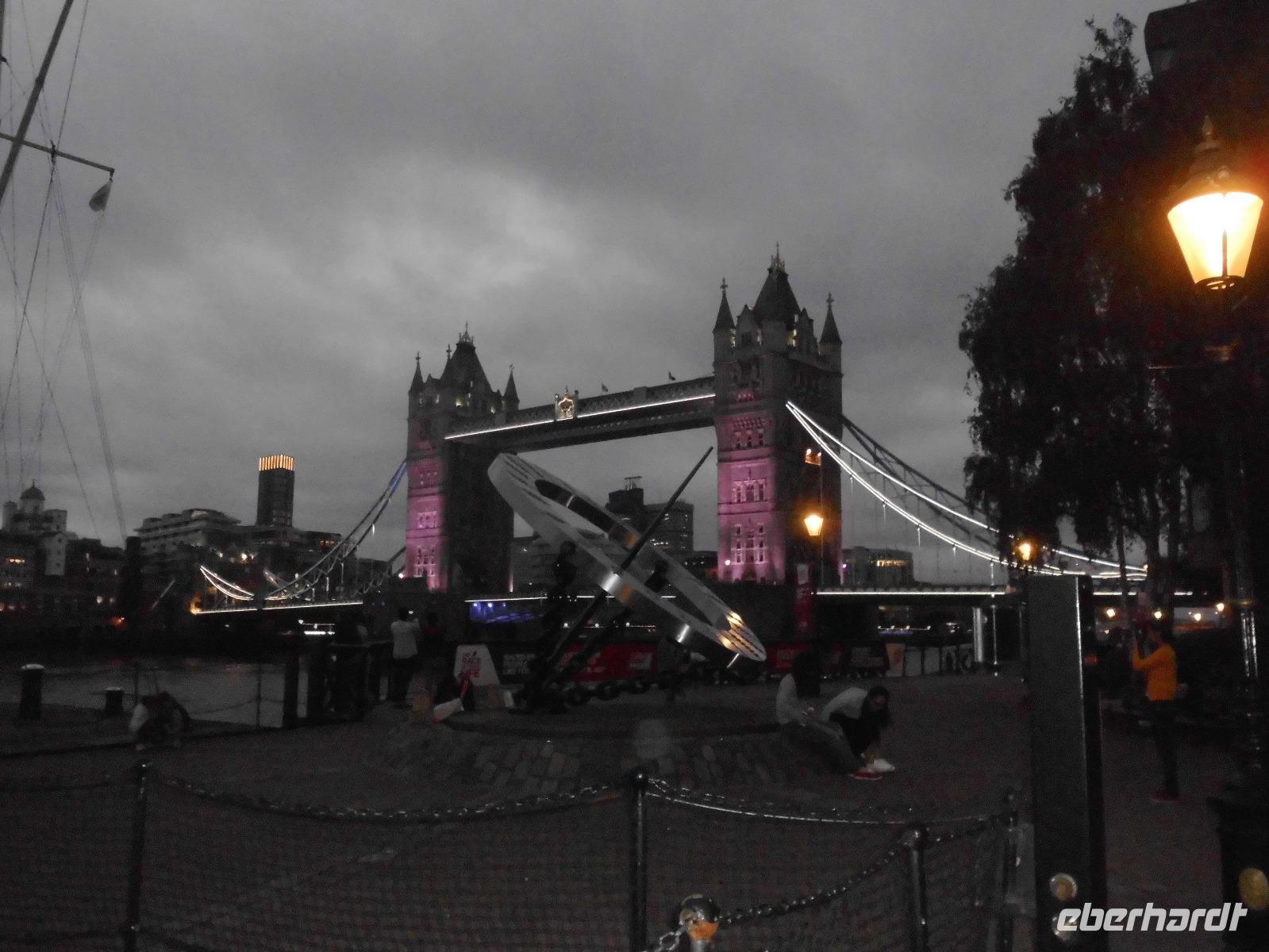 Am Vormittag brachte uns ein Bus ins Stadtzentrum. So konnten wir einen Spaziergang zur Number 10, Downing Street und zur Horse Guard unternehmen. Durch den St. James'Park ging's zum Buckingham-Palast, wo sich jeder einen günstigen Platz zur Beobachtung der Wachablösung und für seine Erinnerungs- fotos suchen konnte. Leider verzögerte sich der Beginn, und es war schade, daß an diesem Tag eine „abgespeckte" Version dieses Spektakels stattfand. Da man uns zum falschen Treffpunkt geschickt hatte, fuhren wir anschließend mit der U-Bahn zum Tower. Der Nachmittag gehörte dann ganz dem Bewundern der Kronjuwelen, der Waffensammlung des White Tower, einem Spaziergang auf dem Mauerwall, der ehemaligen Hinrichtungsstätte und natürlich auch den Raben des Towers. Abends führte uns wir ein Spaziergang über die Towerbridge an der Themse entlang in den modernen Teil Londons, wo wir in einem Restaurant zu Abend aßen.