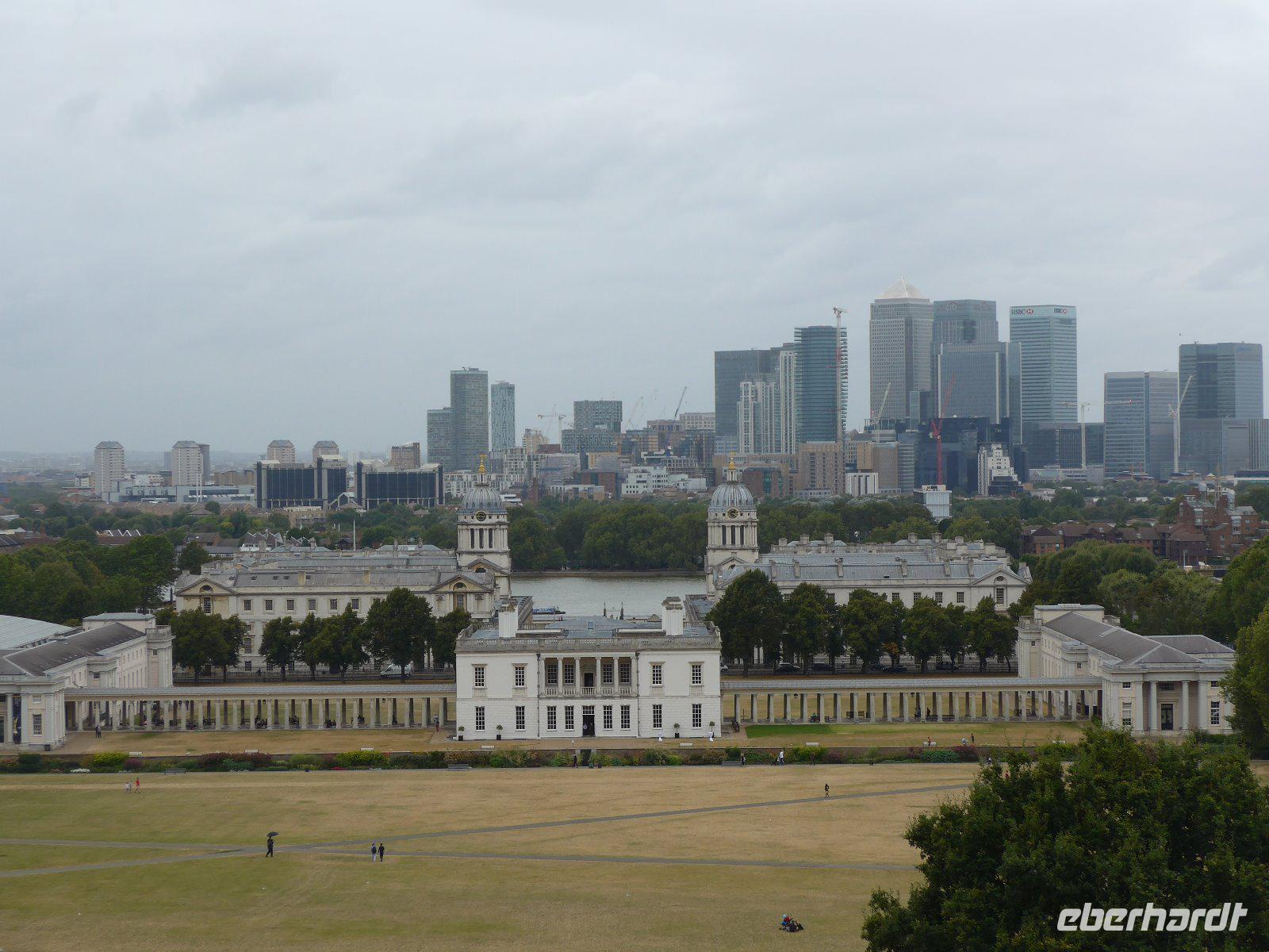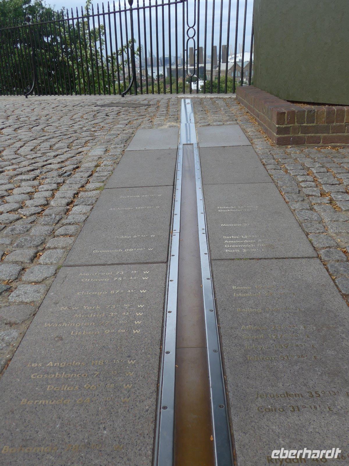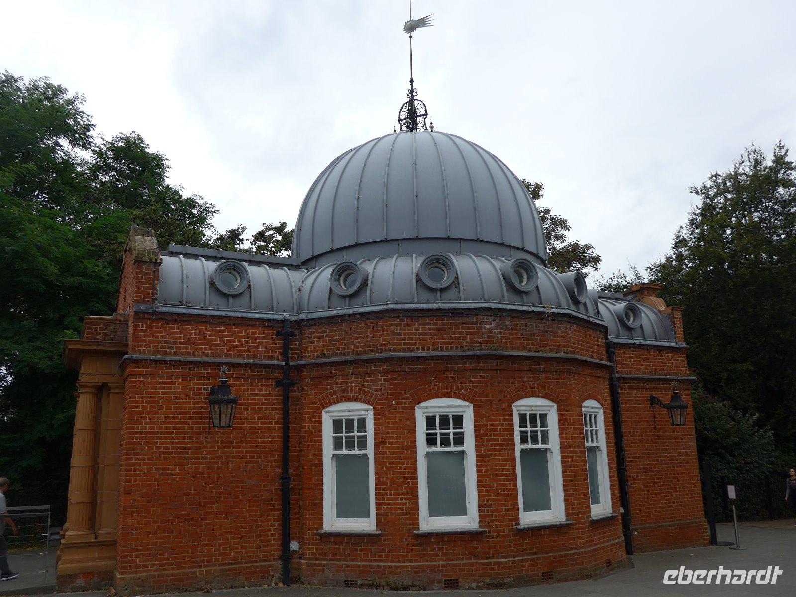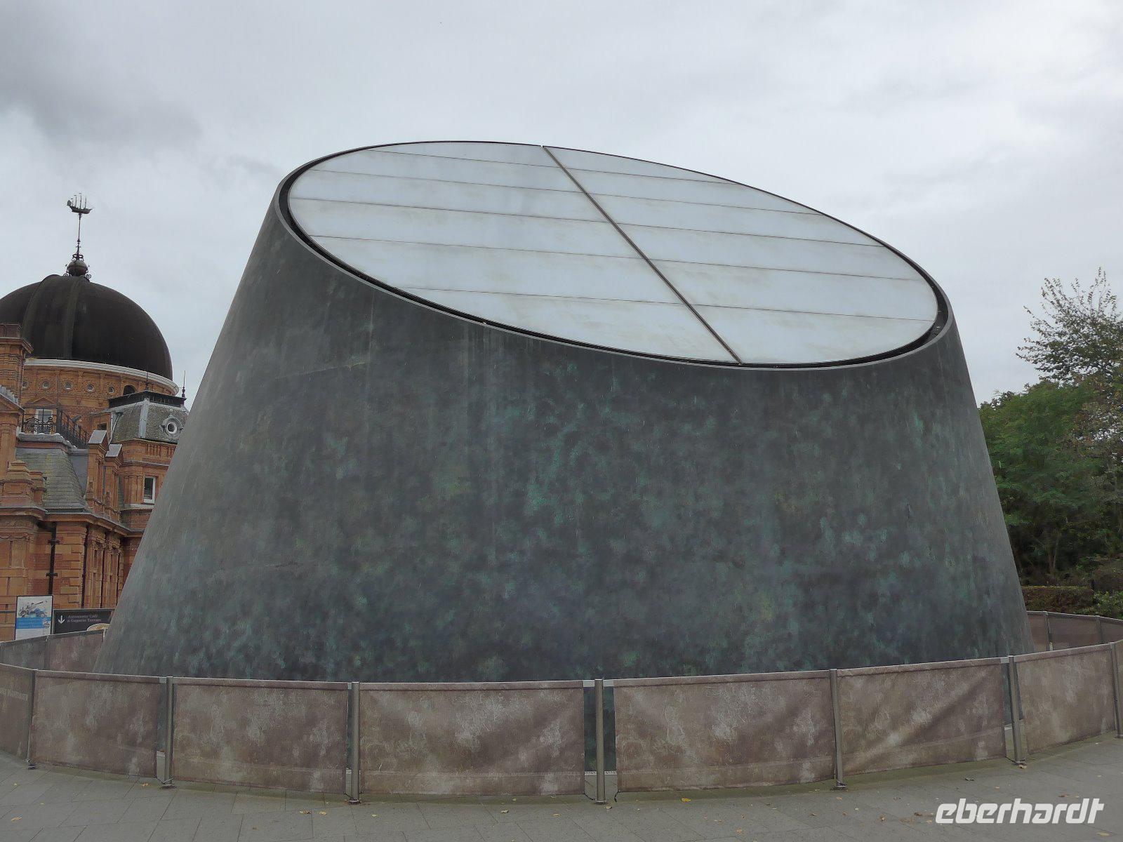 Fasziniert vom Inneren ging schließlich der Weg durch den Park nach oben zum Observatorium. Ein herrlicher Blick auf das andere Themseufer entschädigte für den etwas mühevollen Aufstieg. Wer sich am Meridian fotografieren lassen wollte hatte trotz zahlreicher Besucher die Möglichkeit. Ob die altertümlichen Präzisionsgeräte oder das siebt größte Teleskop der Welt. Die Entscheidung war wahrlich nicht einfach. Audioguide erleichterte etwas das Verständnis. Auf jeden Fall konnte man einen Blick auf die rote Zeitkugel werfen, die lederbezogen 1833 installiert wurde und seit 1919 eine rote Kugel aus Aluminium ist. Noch heute fällt sie jeden Tag um 13 Uhr. Einst wichtig für die Einstellung der Schiffschronometer ist es heute eher ein Spektakel für die Touristen.