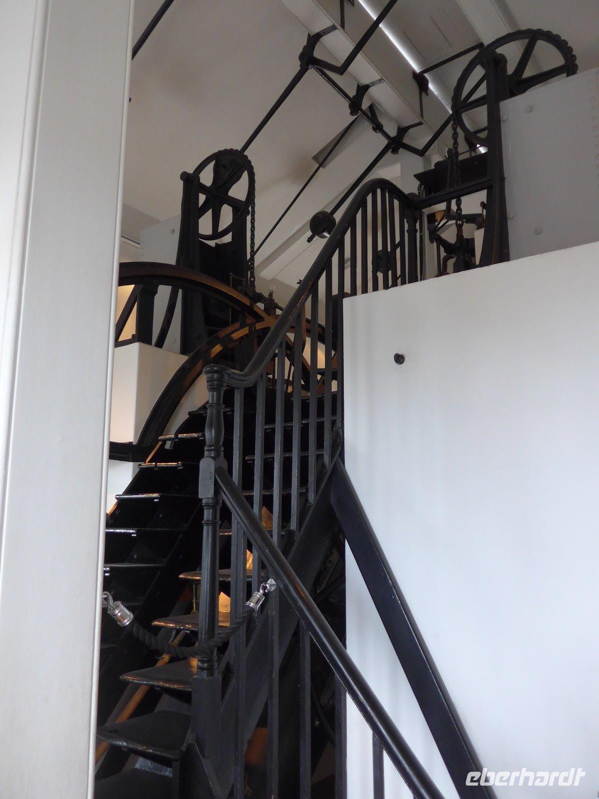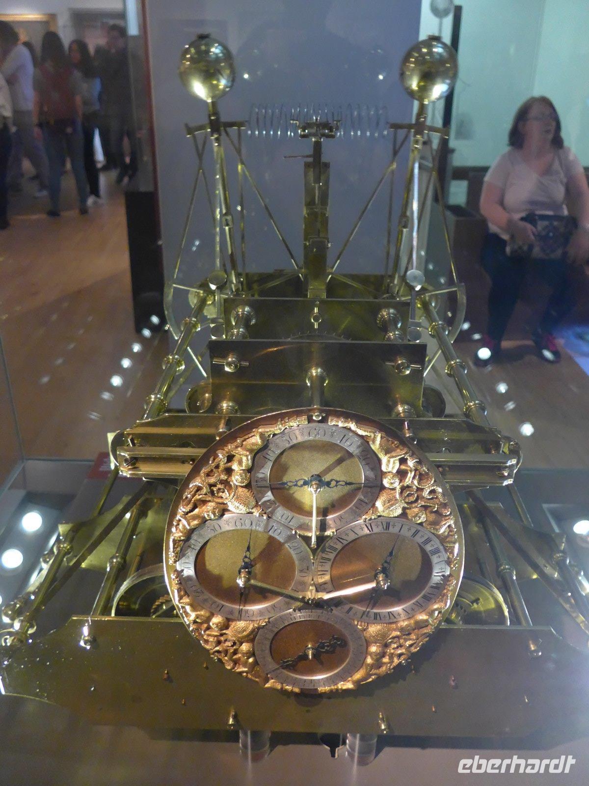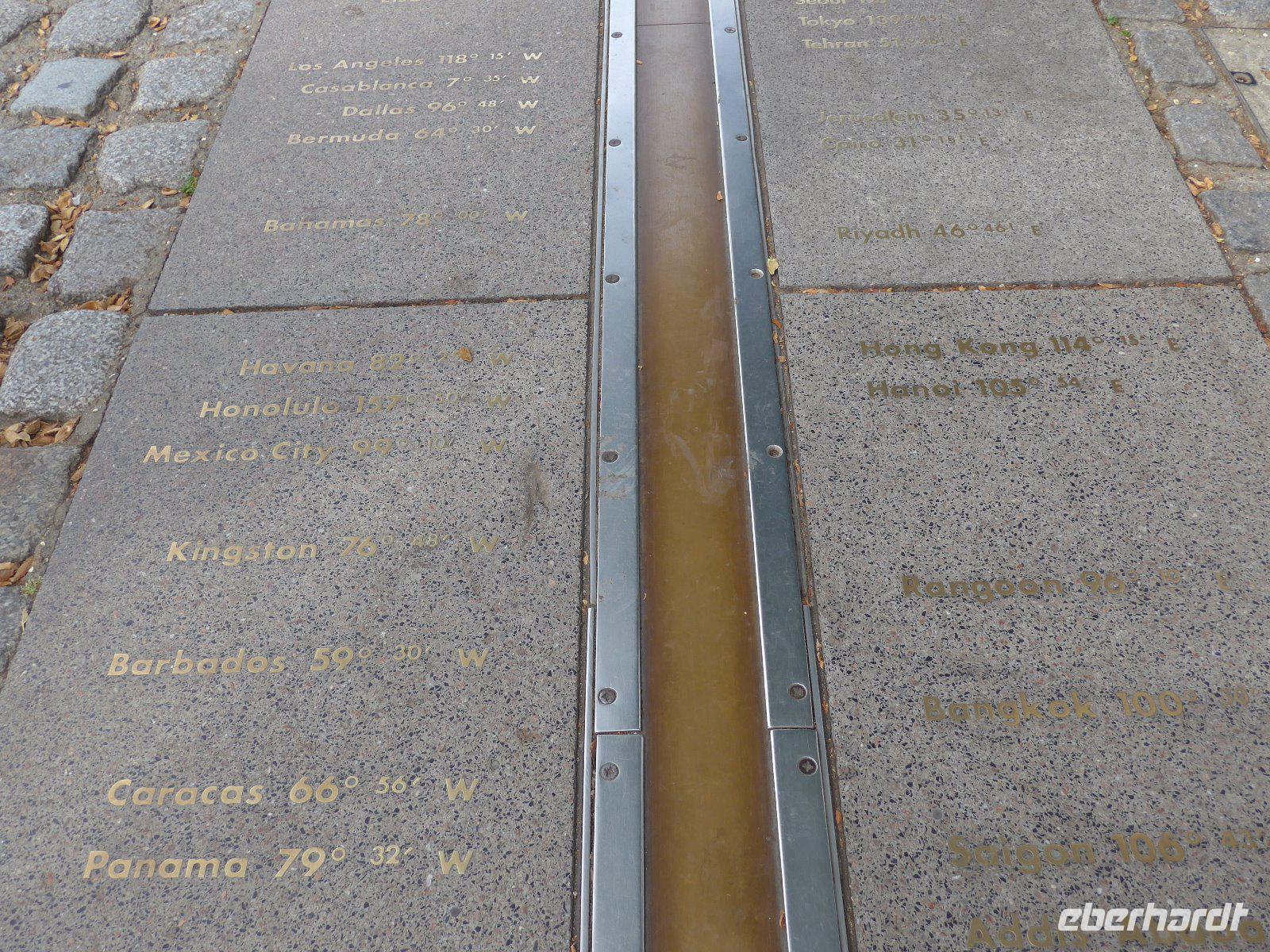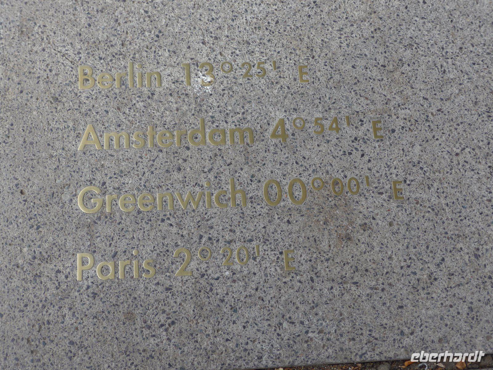 Fasziniert vom Inneren ging schließlich der Weg durch den Park nach oben zum Observatorium. Ein herrlicher Blick auf das andere Themseufer entschädigte für den etwas mühevollen Aufstieg. Wer sich am Meridian fotografieren lassen wollte hatte trotz zahlreicher Besucher die Möglichkeit. Ob die altertümlichen Präzisionsgeräte oder das siebt größte Teleskop der Welt. Die Entscheidung war wahrlich nicht einfach. Audioguide erleichterte etwas das Verständnis. Auf jeden Fall konnte man einen Blick auf die rote Zeitkugel werfen, die lederbezogen 1833 installiert wurde und seit 1919 eine rote Kugel aus Aluminium ist. Noch heute fällt sie jeden Tag um 13 Uhr. Einst wichtig für die Einstellung der Schiffschronometer ist es heute eher ein Spektakel für die Touristen.