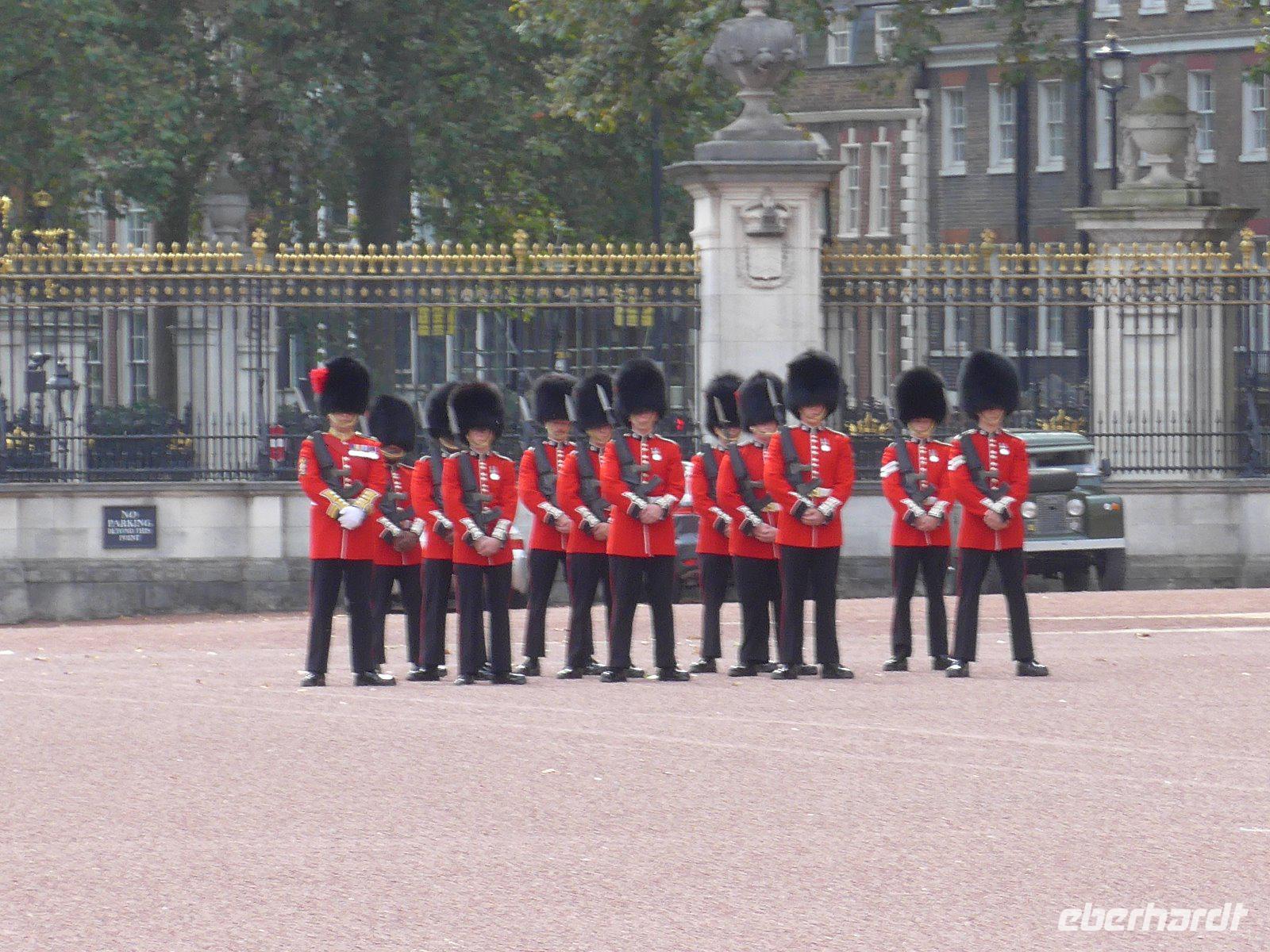 Wachablösung ein Muss für jeden London-Besucher. Rechtzeitig vor Ort sein ist die Voraussetzung für gute Plätze. So ging es für uns schon nach dem Frühstück los in Richtung Innenstadt. Am Westminster Pier ging es dann zu Fuß über den Exerzierplatz der Horse Guards und St. James Park bzw. Mall zum Buckingham Palace.