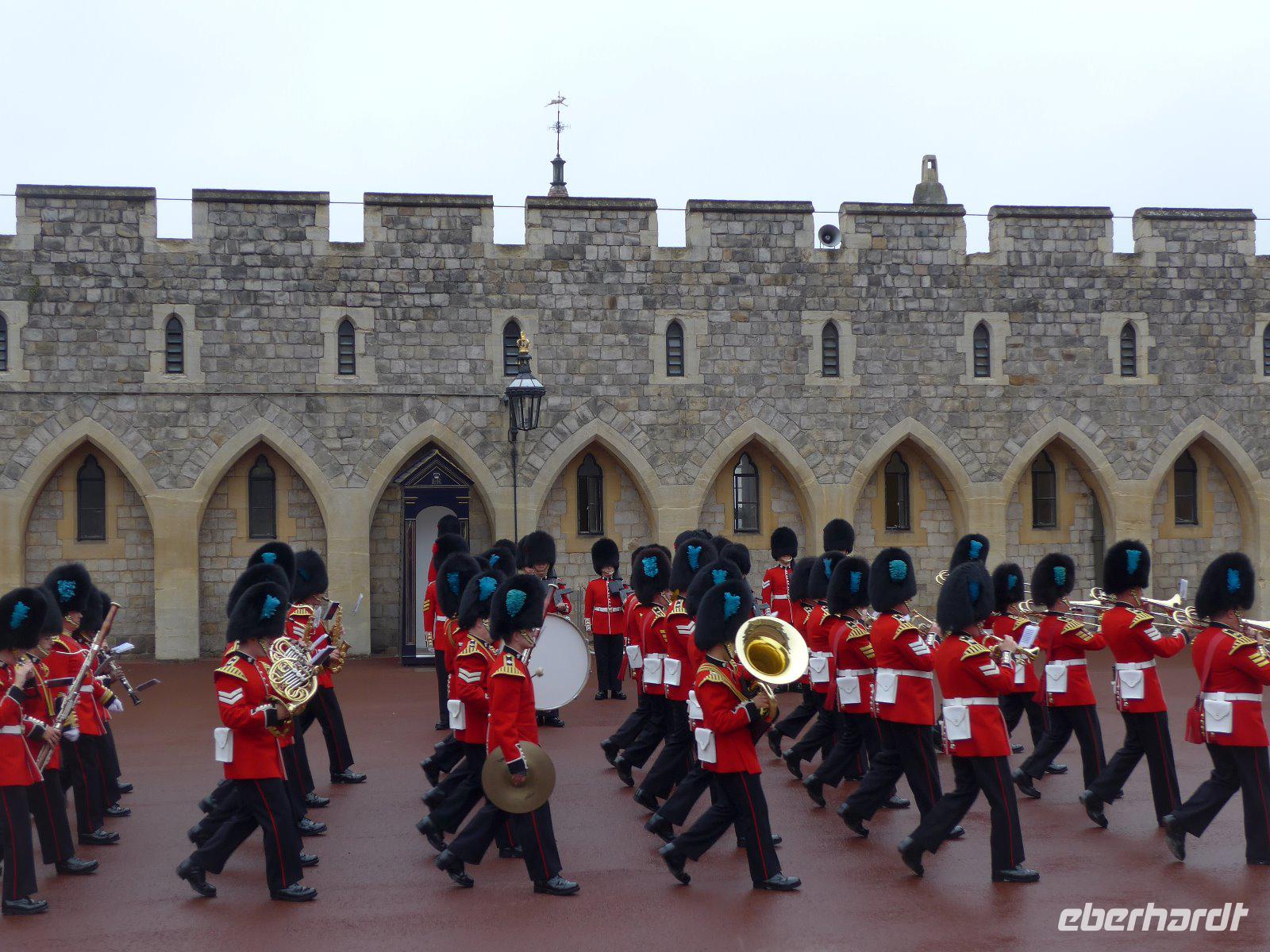 In Windsor angekommen - erlebten wir Schlangen, dennoch klappte alles wie am Schnürchen, so dass wir relativ schnell vor dem Wahrzeichen von Windsor - dem Round Tower standen. Gerade rechtzeitig um die Wachablösung auch hier zu erleben - ohne Zaun u. hautnah erlebten wir dieses traditionelle Zeremoniell. Gut das man schon auf der Fahrt wichtige Fakten gehört hat - so konnte es nun ausgestattet mit Audioguides auf den Rundgang gehen. Ob Großes Treppenhaus, Waterloo-Saal oder Hosenbandorden-Thronsaal sowie die St. Georg-Hall - in allen Räumen wurde man vom Prunk geblendet.