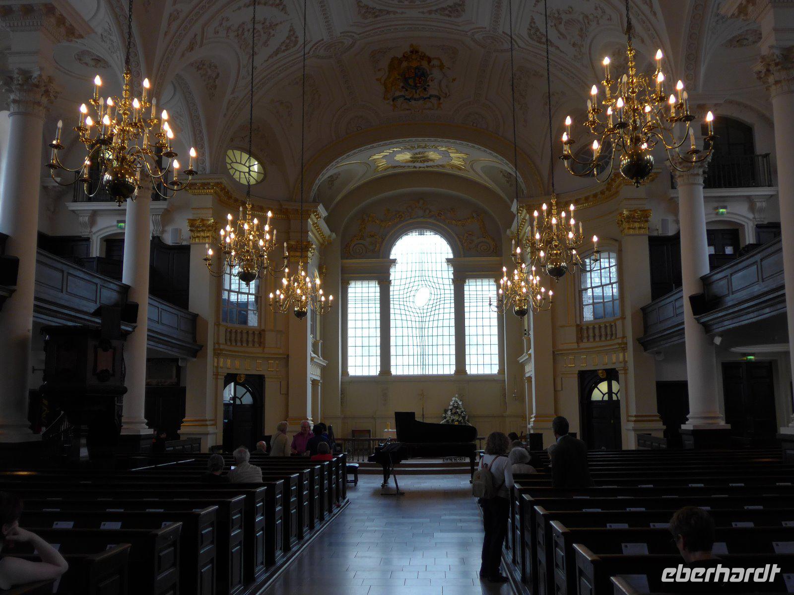 Am Westminster Pier wurden wir abgesetzt und ein großer Teil der Gäste machte sich allein auf Entdeckungstour, vielleicht auch um mit den letzten Pfundnoten noch kleine Souvenirs für zu Hause zu erhaschen. Einige nutzten aber auch das Angebot vom Reiseleiter noch die National Gallery zu besuchen. Über die White Hall vorbei an Downing Street 10 und Hourse Gardes erreichten wir schnell den Trafalgar Square, wo sich das Museum befindet. Ein schöner Abschluss bildete das Lunch-time-Konzert in St. Martin on the Field. Unter anderem wurden wir mit Beethoven Sonate in A Op 47 "Kreutzer" von einer Violistin u. Pianist verwöhnt. Mit großen Applaus verabschiedeten wir die Künstler u. bis zur Abfahrt blieb noch etwas Zeit letzte Eindrücke zu sammeln