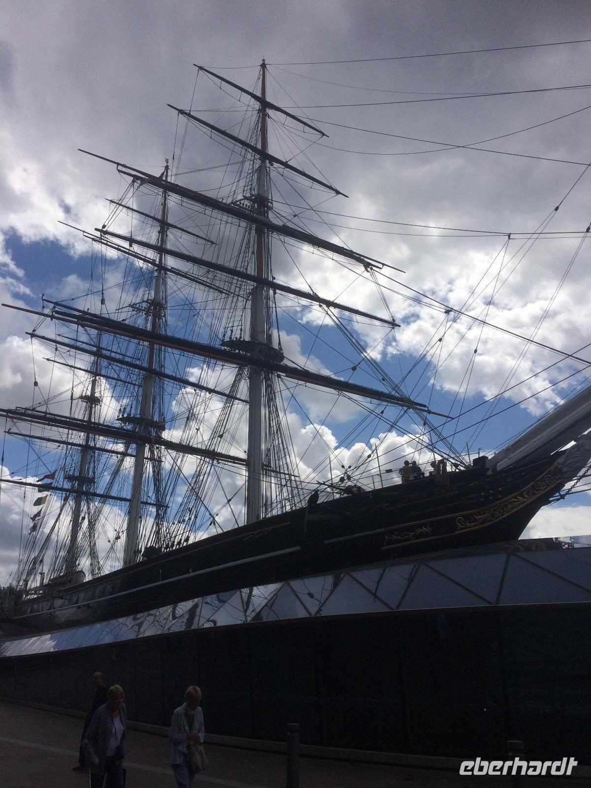 Am Morgen erwartete uns Phil in der Rezeption. Er bot uns eine super Stadtrundfahrt. Wir sahen den Trafalgar Square und fuhren die Mall hinuner zum Buckingham Palast. Dann sahen wir Westminster Abbey, die Häuser am Eaton Square, den Hyde Park und das berühmte Kaufhaus Harrods. Im Viktoria und Albert Museum hatten wir 30 Minuten Freizeit. Dann fuhren wir durch Berkeley und sahen berühmte Mode Boutiquen, u.a. die von Stella McCartney. Dann ging es durch die Oxford Street zu Picadilly und zu Downing Street No. 10 den Regierungssitz, bis zu Westminster, wo es aufs Schiff ging. Wir schafften es gerade so vor dem plötzlich einsetztenden Regen auf das Themse-Ausflugsboot.. Das Boot fuhr zickzack über die Themse und legte auch am Tower in der Nähe unseres Hotels an. Dann ging es an den Docklands vorbei nach Greenwich, wo uns direkt in einem Trockendock, die legendäre Cutty Sark, ein englischer Tee- und Wollclipper aus 1869 erwartete. Das stolze Segelschiff Cutty Sark brauchte für die Reise um das Kap der Guten Hoffnung 102 Tage. Dann hatten wir etwas Freizeit im lebhaften Markt von Greenwich um etwas zu essen oder Kaffee zu trinken. An der Universität vorbei, gingen wir dann durch das sehr interessante Maritime Museum. Hier könnte man auch leicht einen ganzen Tag verbringen. Aber unser Ziel war den steep hill/steilen Hügel hoch zum königlichen Observatorium zu gehen , wo wir das Wohnhaus der Astronomen und riesige Teleskope, aber vor allem den Prime = Nullmeridian im Boden eingelassen sehen konnten. Vor der General James Wolfe Statue hatten wir einen grandiosen Blick hinunter auf Greenwich über die Themse zur faszinierenden Skyline der Weltstadt London. Unser Busfahrer Frank kam uns entgegen und brachte uns sicher ins Hotel zurück.Ein Teil der Gruppe hatte Abendessen im Hotel; andere auf eigene Faust.