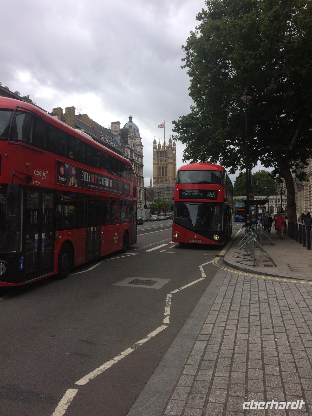 Die Weltstadt London, Hauptstadt Großbritanniens an der Themse, mit ihren roten Doppeldeckerbussen, roten Telefonzellen, roten Briefkästen, den königlichen Palästen und Wachablösungen, faszinierenden