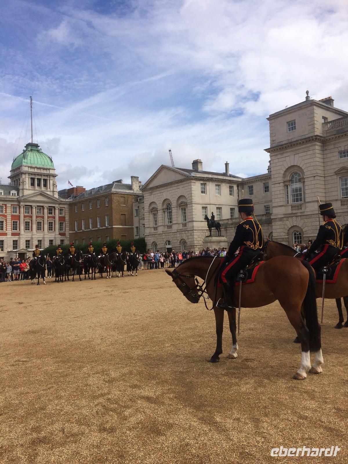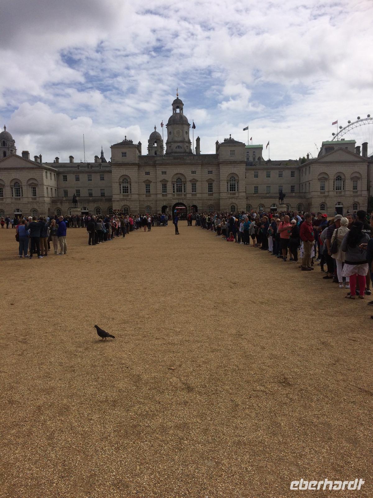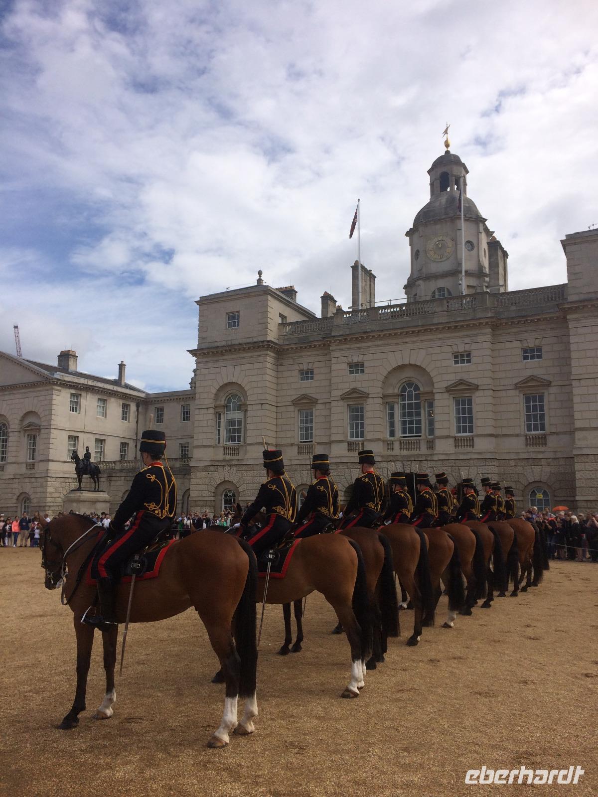 Palast oder zur Horse Guards Parade an Whitehall zu laufen. Denn laut Auskunft der Polizei würde heute keine Wachablösung am Buchingham Palast stattfinden. Die Gruppe teilte sich, einige sahen Whitehall, den Regierungssitz Downing Street No.10, das Außenministerium, die Cabinet War Rooms, Kriegsbunker Churchills von außen und dann die Wachablösung bei den Armeekasernen.