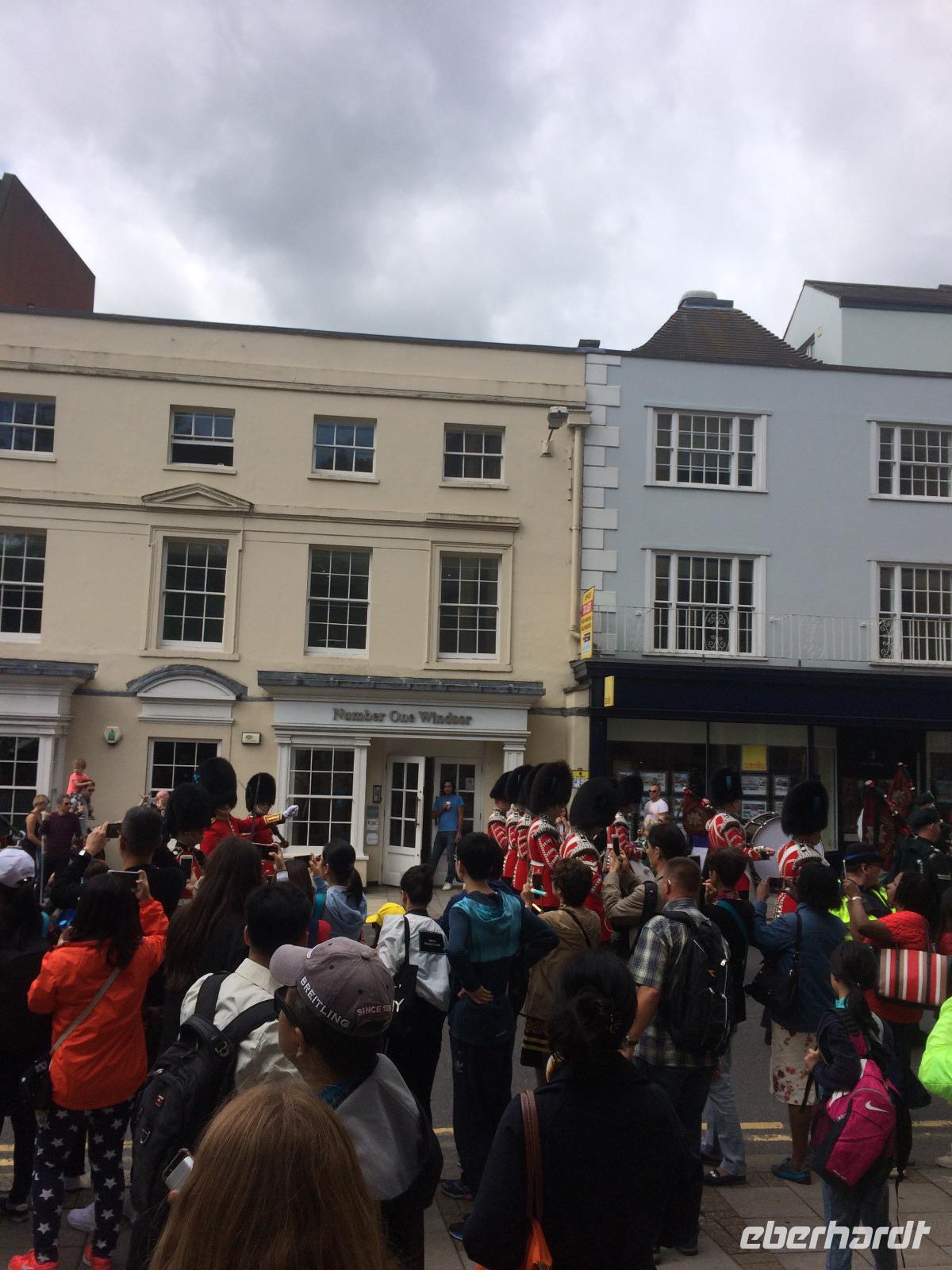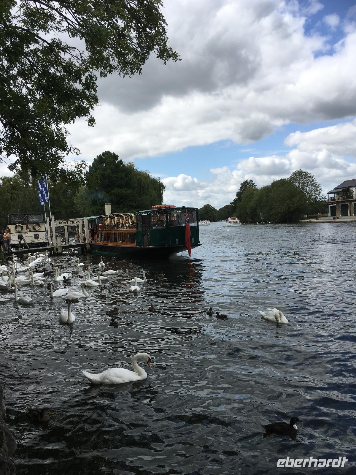 Heute trafen wir uns schon um 8 Uhr in der Hotellobby, um gemeinsam zum Tower Parkhaus zu laufen. Große Teile der Innenstadt und Brücken waren heute gesperrt. Über 100.000 biker fanden sich in der Stadt ein. Auch in unserem Hotel sahen wir Rennräder und Mountainbikes. Über Umwege fuhren wir nach Windsor. Dort angekommen war der Coach Park, der Busparkplatz schon gut gefüllt. Deswegen auch recht lange Schlangen vor dem Schloß Windsor, dem ältesten noch bewohnten Königsschloss. Neben dem Buckhinham Palast, den schottischen Schlössern Balmoral und Holyrood, hält sich die englische Königin Elisabeth II regelmäßig in Windsor und Sundringham auf. Wir besichtigten gemeinsam die St. George Chapel mit der herrlichen Decke im Perpendicular Stil, der Grabkapelle der Queen-Eltern und Prinzessin Margaret und den Gräbern Heinrich VIII mit seiner geliebten Gattin Jane Seymore im Chor. Die Flaggen und goldenen Täfelchen des Hosenbandordens interessierten uns bevor wir uns in die Schlange zum Puppenhaus und den State Apartments einreihten. Einmal im Schloss der Königin gewesen zu sein, was für ein Erlebnis! Wir trafen uns dann beim Königin Viktoria Denkmal und spazierten die Themse entlang, wo es unglaublich viele Schwäne und Narrow Boats (schmale ehem. Lastenboote, heute Ausflugsschiffe) gab und gingen zum Busparkplatz zurück. So bekamen wir einen Blick auf Eaton, denn wir zogen es vor, früher nach London zurückzufahren. 8 Gäste stiegen dann bei Madame Tussauds aus. Die Wachsfiguren berühmter Persönlichkeiten aus der ganzen Welt in zeitgemäßem Ambiente - wirklich toll präsentiert. Abendessen wieder im Brasserie Restaurant mit Blick auf die beleuchtete wunderschöne Tower Brücke.