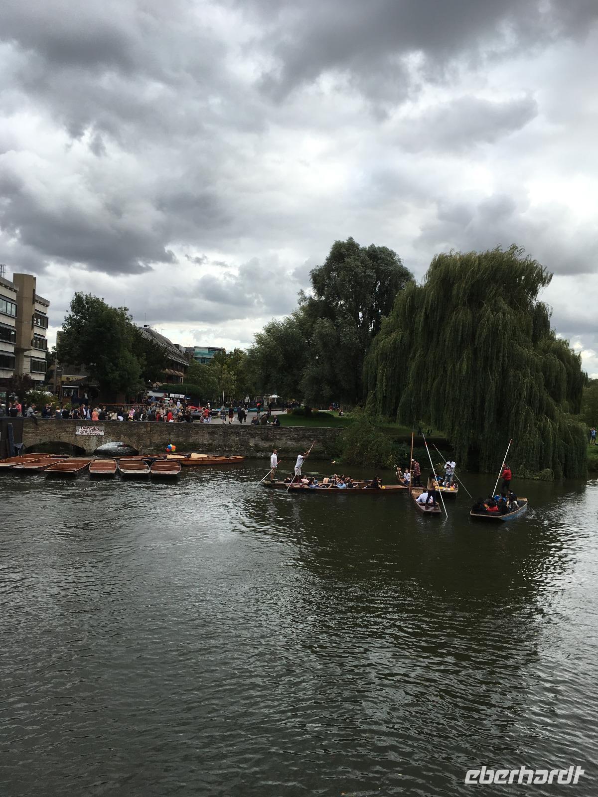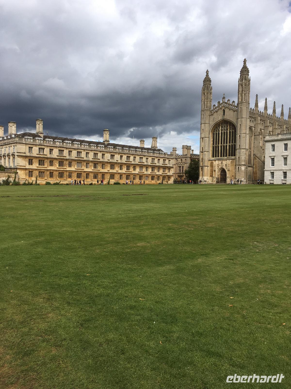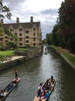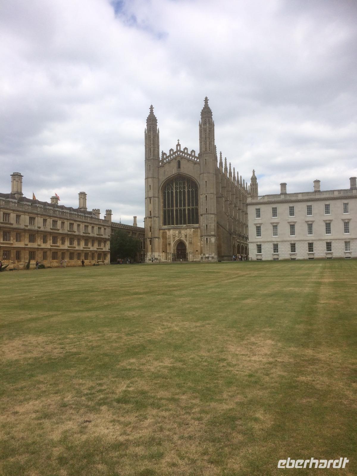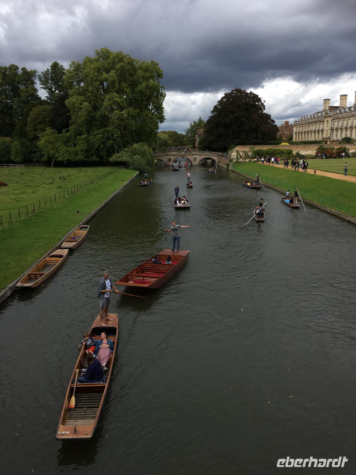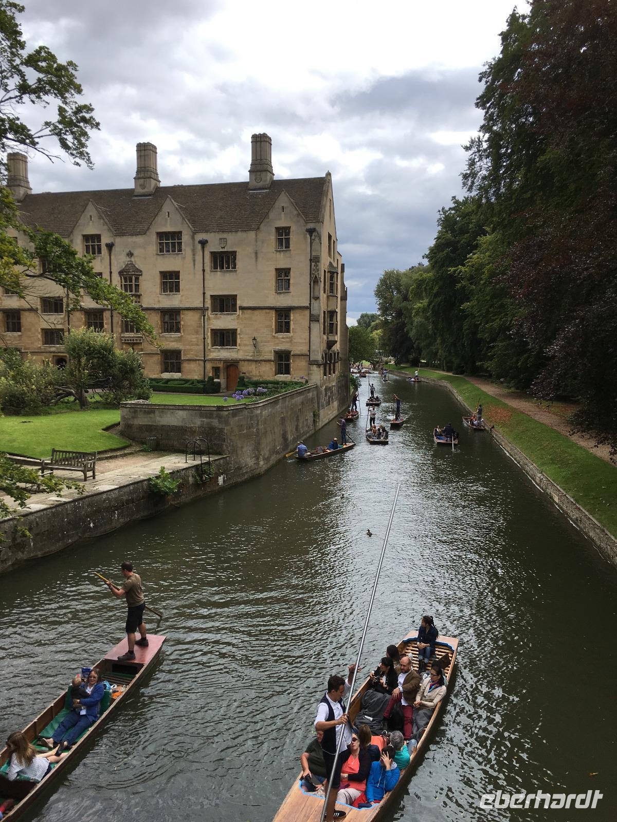 Nach einem early breakfast, frühen englischen Frühstück, mit Spiegel- oder Rühreiern, Schinken, gebackenen Tomaten, Bohnen, Speck, Würstchen, Toast, Orangenmarmelade usw. verließen wir mit dem Bus die Fähre in Harwich. Hoppla links Fahren war angesagt! Erste englische Landschaften und blumengeschmückte Dörfer mit typischen Reihenhäusern erwarteten uns.Pünktlich um 9 Uhr erwarteten uns an der Queen's Road in Cambridge 2 Stadtführerinnen, die unsere Gruppe aufteilten. Eine Gruppe ging direkt über die Silver Road ins Zentrum zur King's Parade. Die andere über die Backs, die ausgedehnten Grünanlagen hinter den Colleges. Wir gingen durch Clare College am Fellows Garden vorbei, hörten, dass Oxbridge die Welt verändert hat, dass u.a. im Eagle die DNA von den Entdeckern verkündet wurde, hörten von der Boat Race, dem legendären Bootrennen zwischen Oxford und Cambridge und vom Leben der Studenten. Wir hatten noch etwas Freizeit, bevor wir uns vor St. Mary trafen um am Kings und Queens College vorbei über den Cam Fluss mit der Mathematiker-Brücke und den Stocherkähnen zum Bus zu kommen. Bereits kurz nach 14 Uhr waren wir in unserem ideal an der Themse und Tower Bridge gelegenen Hotel und konnten uns frisch machen. Kurz darauf fanden sich auch unsere 9 Fluggäste in der Lobby ein und machten die Gruppe komplett.