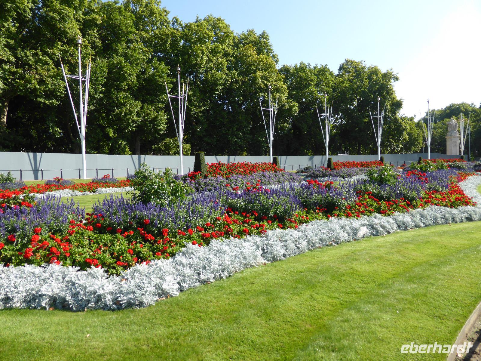 Durch den St. James Park gelangten wir zum Buckingham Palast. Das Gelände des heutigen St. James Parks war ursprünglich Sumpfgebiet, welches nach Trockenlegung zum Jagdrevier umgewandelt und später als Park der Öffentlichkeit übergeben wurde.