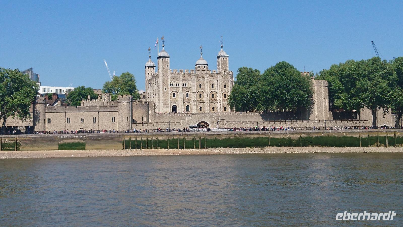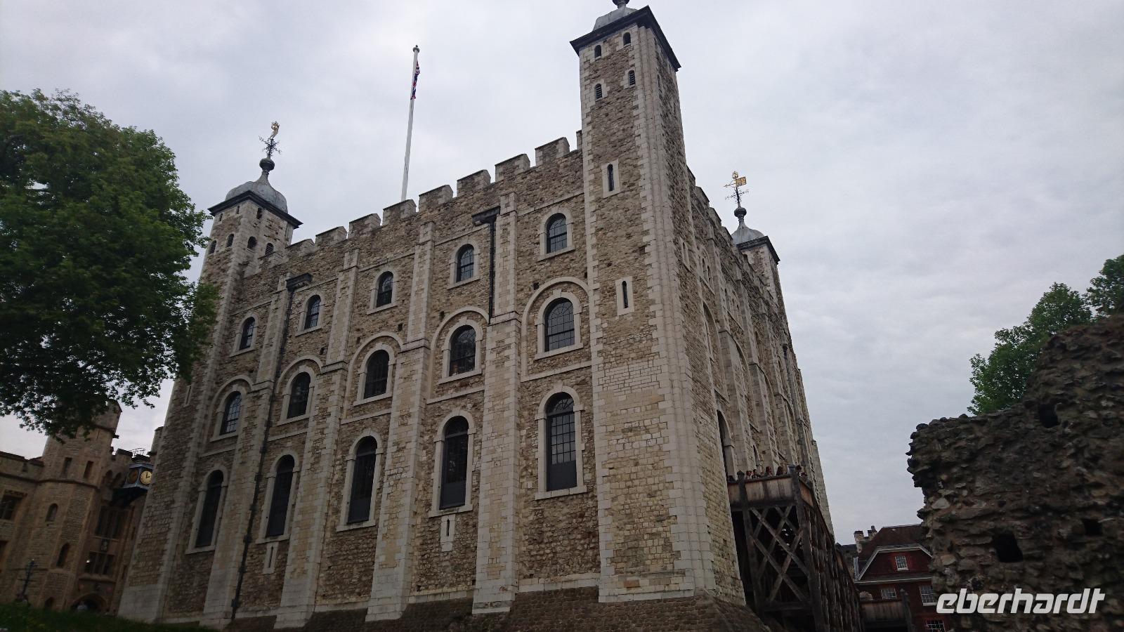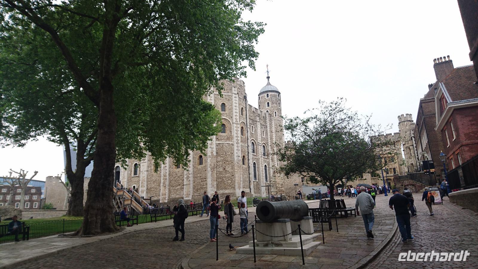 Nach einem Frühstück trafen wir Stefan und unseren englischen Bus am Hotel und fuhren nach Westminster zu „Victoria Embankment", spazierten zuerst zur Zentrale der „New Scotland Yard", wo natürlich Fotos entstehen mussten, weil das sich dort langsam drehende Logo der Polizeibehörde ja zum Beispiel aus den alten „Edgar-Wallace-Filmen" in schwarz-weiß bekannt war. Dann ging es zum nächsten Fototermin hinüber zur „Downing Street No. 10" und weiter zu den „Horse Guards", von da dann direkt in den „St. James Park". Die Gegensätze von Häuserschluchten verschiedenster Baustile und Architekturmerkmale und ruhigen Parkzonen wurden uns wieder einmal deutlich. Durch den Park, entlang an Seen und vielen Seevögeln ging es zu „The Mall" und wir erhaschten einen ersten Blick zum „Buckingham Palace" an diesem Morgen. Am Palast angekommen machten wir uns Zeit und Ort unseres Wiedersehens aus und suchten uns gute Sichtplätze für die täglich stattfindende große Wachablösung. Die einzelnen Garden kamen mit lauter Musik zu Fuß oder hoch zu Ross zum Palastvorplatz und „changing of the guard" konnte beginnen. Anschließend und nach vielen interessanten Eindrücken vom militärischen Drill der Garde ging es mit Stefan zur „Pall Mall", einer Straße am „St. James Palace", wo wir bald wieder auf unseren Bus trafen. Die kurze Wartezeit, die wir bei allen Treffen mit unserem fahrbaren Untersatz in Kauf nehmen mussten, konnten wir beim verkehrsmäßig aufgrund Hauptstadtflair, Pfingsten und Hochzeitsbesuchern stets verstopften Straßensystem Londons gut verstehen und Stefan stand stets mit dem jeweiligen Fahrer in telefonischer Verbindung, sodass wir in etwa einschätzen konnten, wann es weiter geht. Nun fuhren wir also zum „Tower of London" und damit zur Schatzkammer der Queen, aber auch einem architektonischen und geschichtlichen Zeugnis der militärischen Vormachtstellungs-Vergangenheit des Vereinigten Königreiches. Nachdem wir von Stefan unsere Eintrittskarten erhielten, ging es hinein in die Geschichte der Stadt. Staunend sahen wir die kostbaren Schätze, die dicken Mauern darum herum, die einzelnen Ausstellungen und die bunt angezogenen „Beefeater" sowie die berühmten Raben des „Tower of London". Jeder konnte sich zeit nehmen, wie er wollte, um den Tower zu besichtigen. Ein paar unserer Gäste hatten einen Besuch bei „Madam Tussaud" gebucht. Dabei ging leider etwas schief. Die Ausstellung wird privat geführt und änderte kurzfristig ihre Öffnungszeiten, ohne die Gäste oder die Tickets vertreibenden Agenturen darüber zu informieren, wodurch einige schon, andere jedoch leider nicht ihr Ticket einlösen und die Wachsfiguren besuchen konnten. Das war schade, doch wir blieben guter Dinge, denn wir sahen und erfuhren bereits soviel in und über London, dass wir uns davon die Laune nicht verderben ließen. Den Nachmittag und Abend des Tages nutzten wir nun für individuelle Erkundungen in London und für ein gutes Abendessen wo es uns auf unseren Erkundungen am Besten gefiel, ehe wir uns für den kommenden Tag ausruhten.