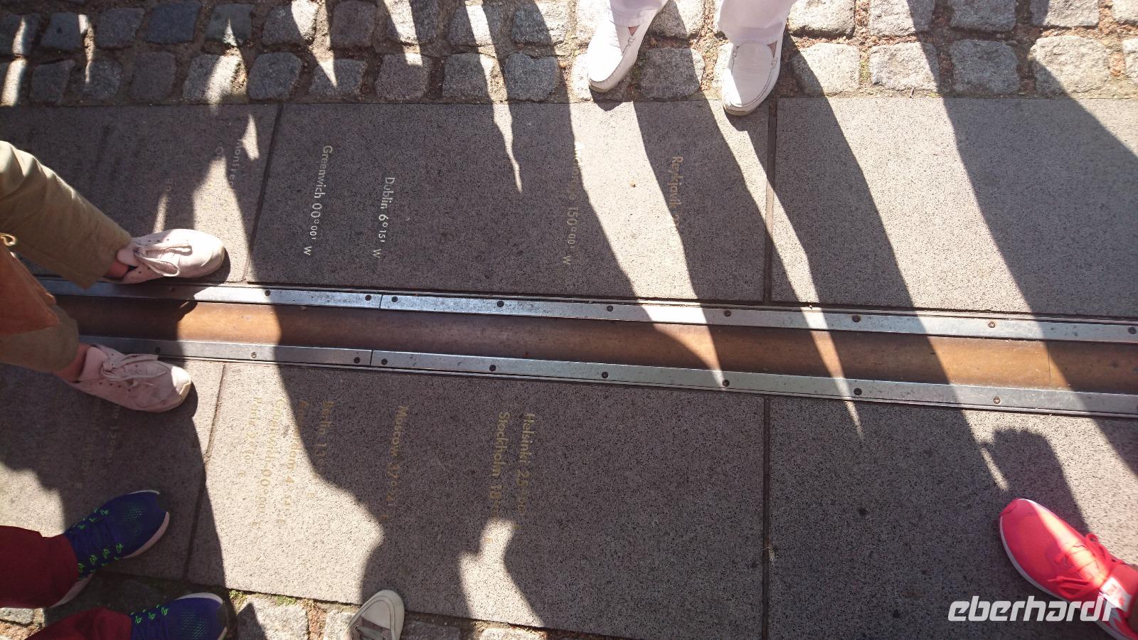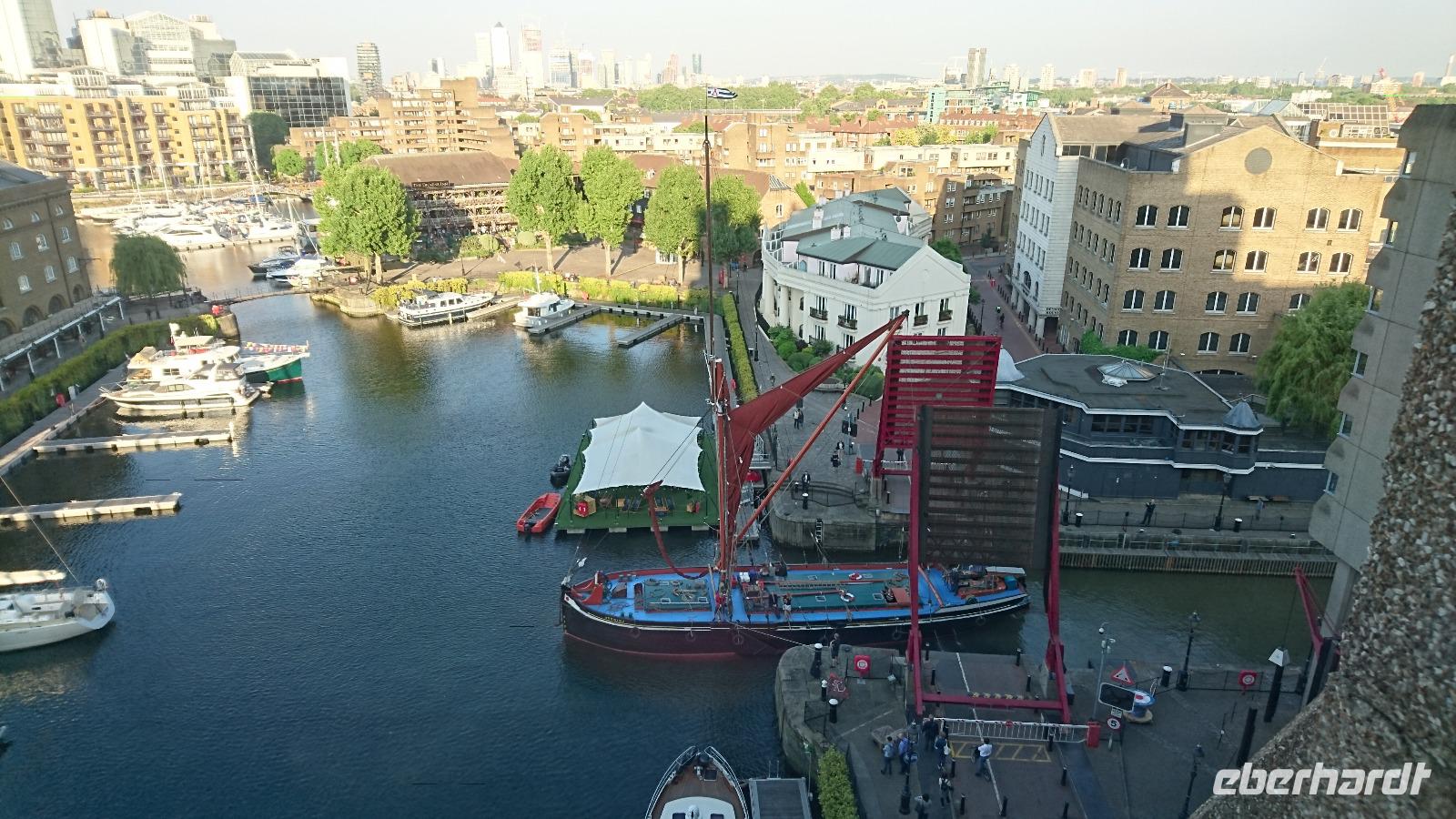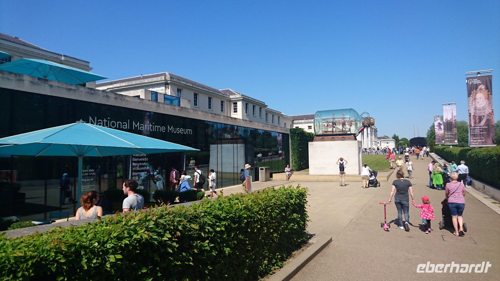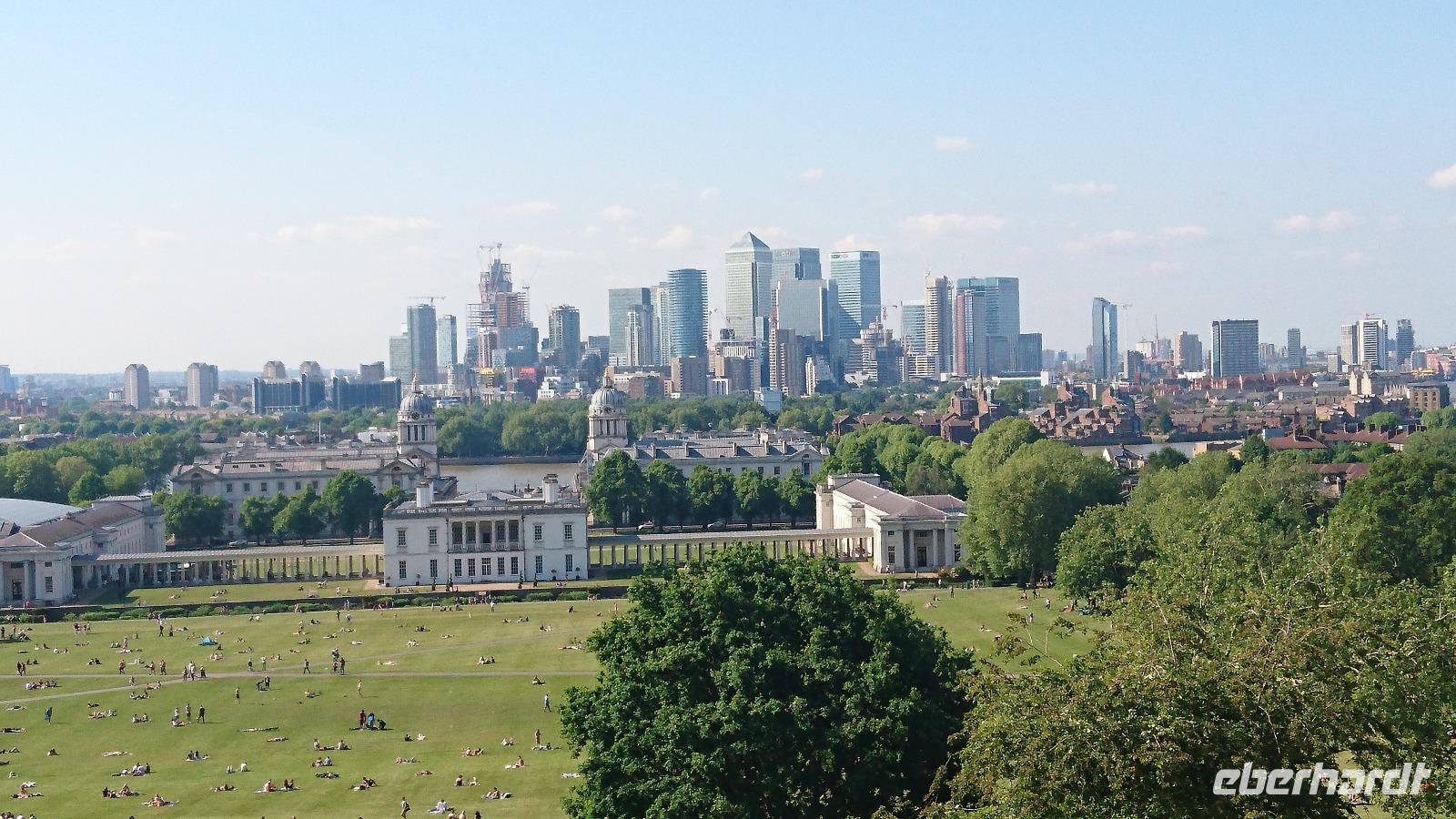 Zeitiges Frühstück war möglich, aber nicht nötig. Am Vormittag trafen wir uns mit Stefan und unserem örtlichen London-Stadtführer in der Hotellobby, saßen bald darauf im Bus und erfuhren gleich viel über die Geschichte der Stadt, während unser Bus in den derzeit innovativsten Stadtteil fuhr. Auf der „Isle of Docks", den Docklands, sahen wir die bereits seit den achtziger Jahren entstehenden neuen Geschäftshäuser, die schon ein wenig an Manhattan in den USA erinnerten. Der krasse Gegensatz offenbarte sich uns dann am Themseufer der Halbinsel, wo wir zweistöckige Reihenhäuser, weite Wiesen und das Flussufer vorfanden, von da einen ersten Blick nach Greenwich hinüber hatten, der uns bekannt vorkam. Tatsächlich malte Canaletto eben diesen Blick und eines der Gemälde hängt auch in der Gemäldegalerie in Dresden. Im Vergleich schien bei diesem Blick die Zeit stehen geblieben zu sein. Drehten wir uns um, sahen wir auf das modernste Viertel der Stadt. Entlang der ferngesteuert und damit ohne Fahrpersonal fahrenden „Dockland Light Railway" fuhren wir in Richtung Innenstadt, stiegen mehrmals unterwegs aus, zum Beispiel an der „St. Pauls Cathedral", der „Royal Albert Hall" und nahe „Westminster Abbey". Zur Mittagszeit erreichten wir schließlich nach tollen stadtrundfahrt-Eindrücken des „Westminster Pier", wo Stefan unsere Bootsfahrkarten besorgte und wir wenig später das Passagierschiff mit Panoramafenstern für unsere Fahrt auf der Themse gen Greenwich betraten. Ein kleiner Kiosk an Bord bescherte uns einen kleinen Mittagsimbiss, wenn wir wollten. Auf der Fahrt mit Zwischenstopps am „London Eye" und an der „Tower Bridge" sahen wir London aus einer ganz anderen Perspektive und erfuhren währenddessen in Englisch an Bord bzw. mach Ankunft in Greenwich von Stefan in Deutsch einiges über die Gebäude am Themseufer, wie das „Royal Shakespeare Theater London", die „Modern Tate Galerie", den Themsetunnel und vieles Weitere. In Greenwich spazierten wir dann vorbei am einst wohl schnellsten Teesegler Englands, der „Cutty Sark", zum Marinemuseum. Dieses besichtigten wir und wanderten dann mit Stefan weiter zum „Royal Observatory Greenwich", der Zeitkoordinierungsstelle Großbritanniens und gleichzeitig Fotostopp für den Nullmeridian. Nach einem individuellen Besuch bei „Camera Obscura", London-Blick, Meridian und verschiedenen Vermessungsausstellungen im Observatorium ging es weiter zum südlichen Ausgang des königlichen Greenwich-Parks, wo uns unser Bus für die Rückfahrt zum Hotel erwartete. Den Abend ließen wir dann durch die geniale Lage unseres Hotels an „Tower Bridge", Tower, Themse und damit inmitten des tosend-interessanten Londoner Innenstadt-Lebens in einem der umliegenden Pubs und Restaurants gemütlich ausklingen, ordneten all unsere neuen Eindrücke und ruhten uns später aus für kommende Erlebnisse.