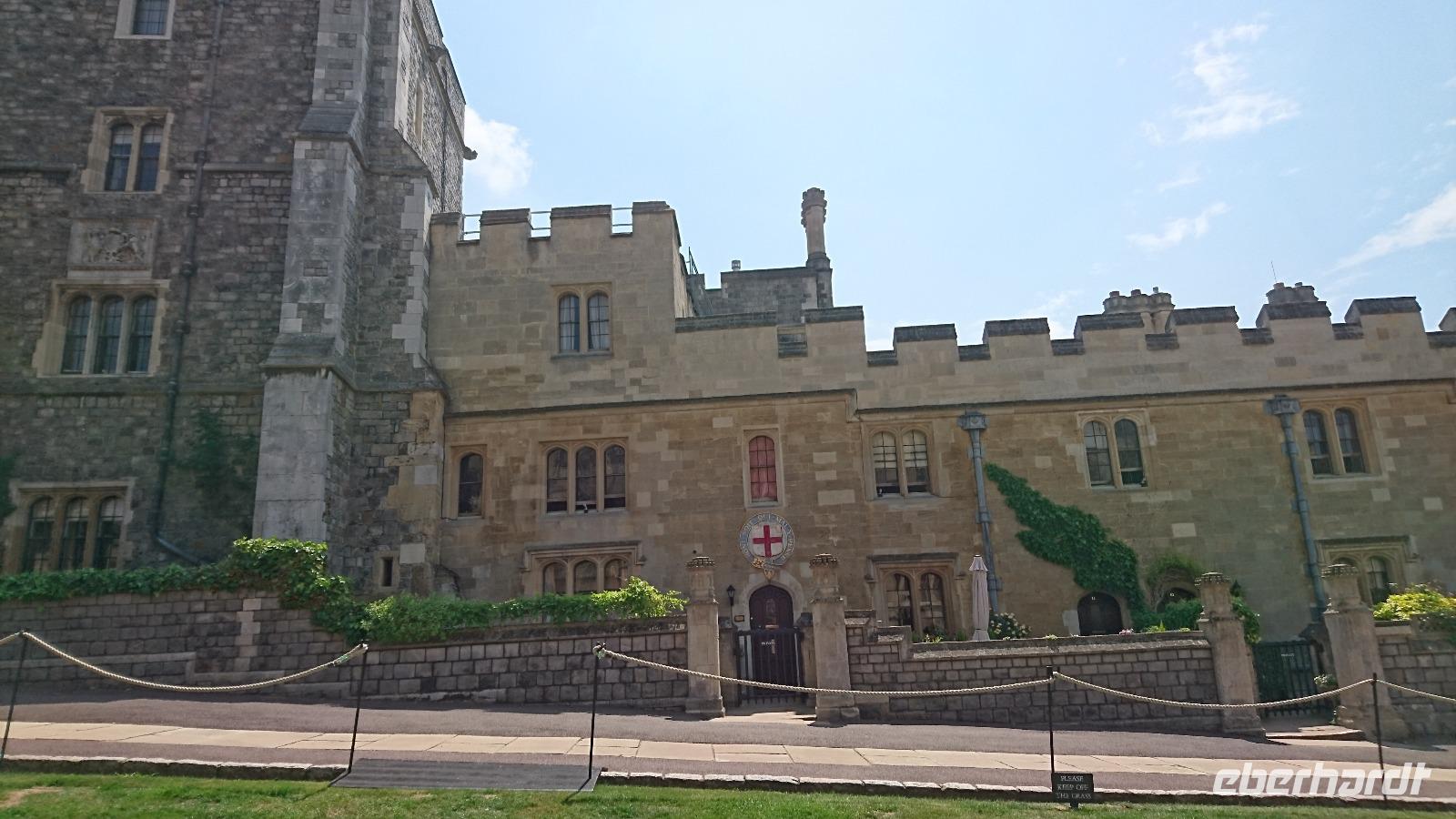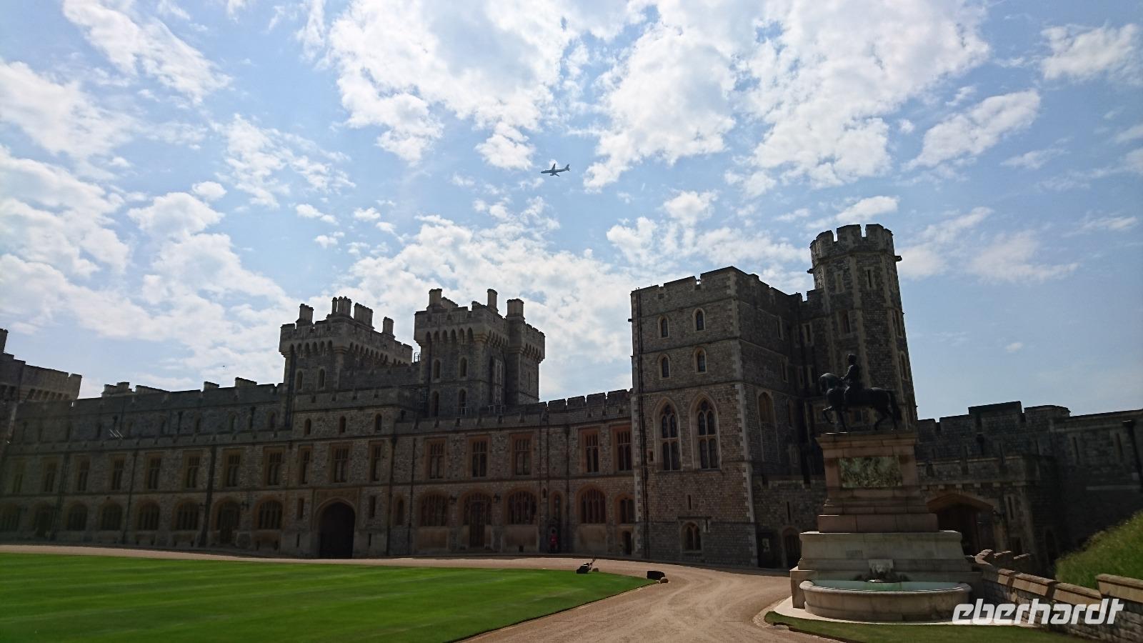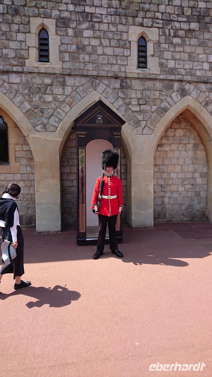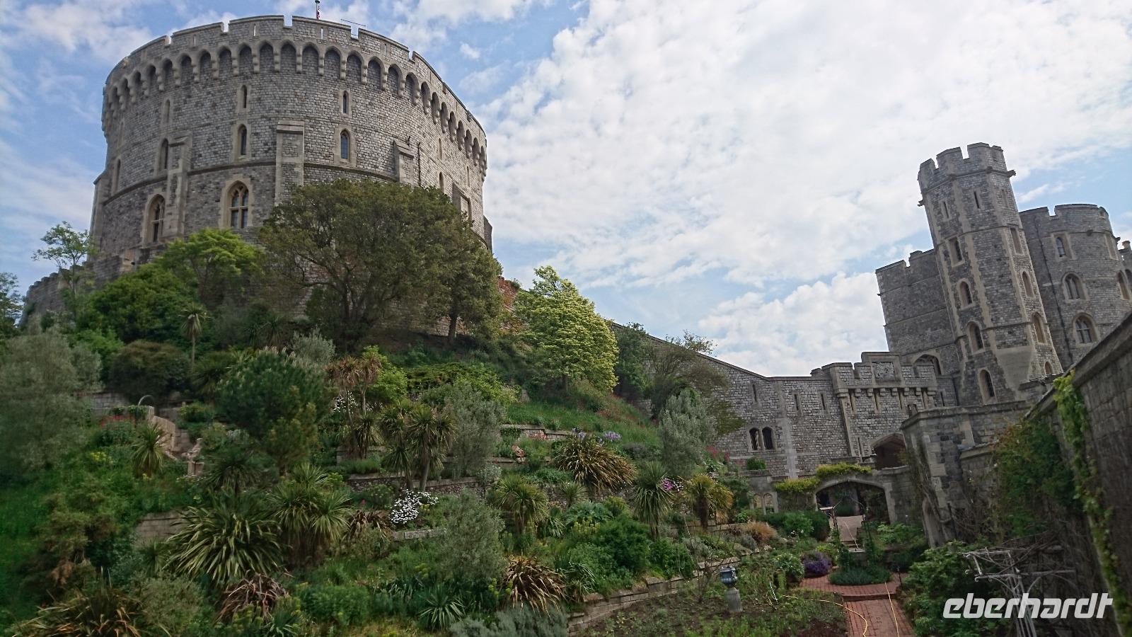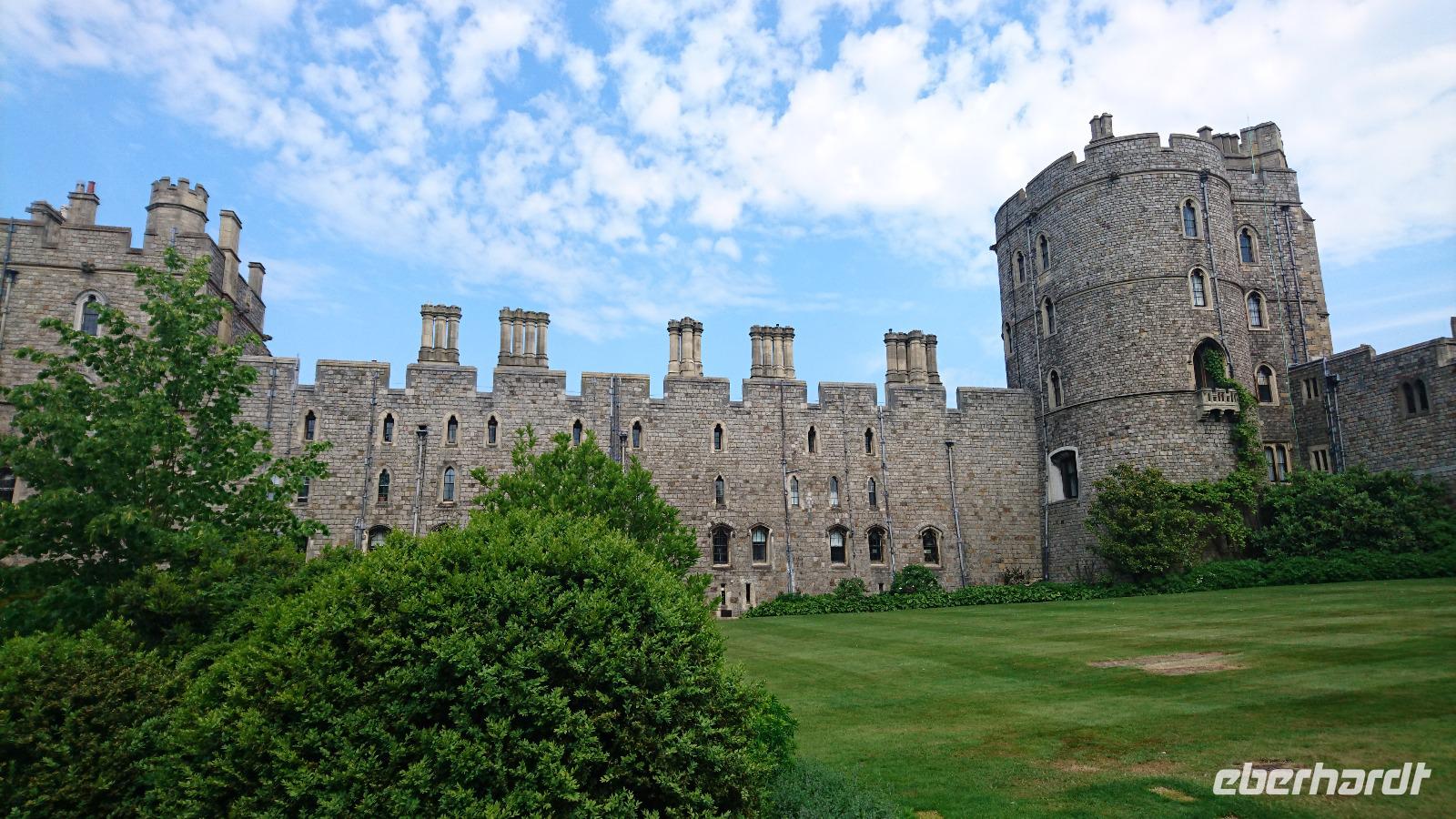 Am Vormittag trafen sich alle Windsor-Besucher wieder an der Rezeption, andere unternahmen bereits eigene Touren durch London oder hatten andere Pläne. Unser Bus fuhr dann durch den morgendlichen Verkehr durch die Innenstadt und dann zur Autobahn in Richtung „London Heathrow" und weiter nach Windsor. Natürlich sahen wir hier schon bei unserer Ankunft, wie viele Menschen wohl zur Hochzeit vor drei Tagen hier gewesen sein mussten und wie man diese, aber auch die königliche Familie und deren Gäste absicherte. Wir spazierten zum Eingang des Castle und besuchten dieses mit Audioguides, konnten, da die königliche Familie gerade in London weilte, alle zugänglichen Räume sehen, was nicht immer der Fall ist, und staunten über königliche Gemächer, royales Spielzeug, dicke Mauern, unendlich viele Räume, grüne Oasen zwischen den alten Steinen und Unmengen von Besuchern, die jedoch aufgrund der Weitläufigkeit in „Windsor Castle" nicht weiter störten. Jeder gestaltete sich seinen Schlossbesuch individuell, wer wollte, besuchte danach noch den kleinen Ort Windsor mit seinem Rathaus, in dem der „Prince of Wales" und Lady Camilla einst heirateten, dem alten Bahnhof, in dem man die Lokomotive des Regierungszuges von „Queen Victoria" bestaunen konnte, und den vielen Souvenirgeschäften, aber auch bunt angezogenen Damen auf den Straßen, welche die „Lustigen Weiber von Windsor" von William Shakespeare darstellen wollten. Später trafen wir uns fast alle für einen Spaziergang mit Stefan nach Eton. Leider war das „Eton College" aufgrund gerade laufender Prüfungen für die Öffentlichkeit geschlossen, doch Stefan zeigte und alte Häuser, schön gestaltete Gärten und Gassen und lud uns darauf noch in den zünftigen alten Eton-Pub „The George" auf ein Getränk unserer Wahl ein. Dabei sprachen wir gern über die vielen schönen Erlebnisse unserer Reise. Später spazierten wir wieder über die Themsebrücke zurück nach Windsor uns fuhren darauf mit unserem Bus zurück nach London, um noch einen Abend individuell gier zu verbringen und doch schon unsere Koffer zu packen. Dann wollten wir uns noch einmal ausruhen für den nächsten Tag.
