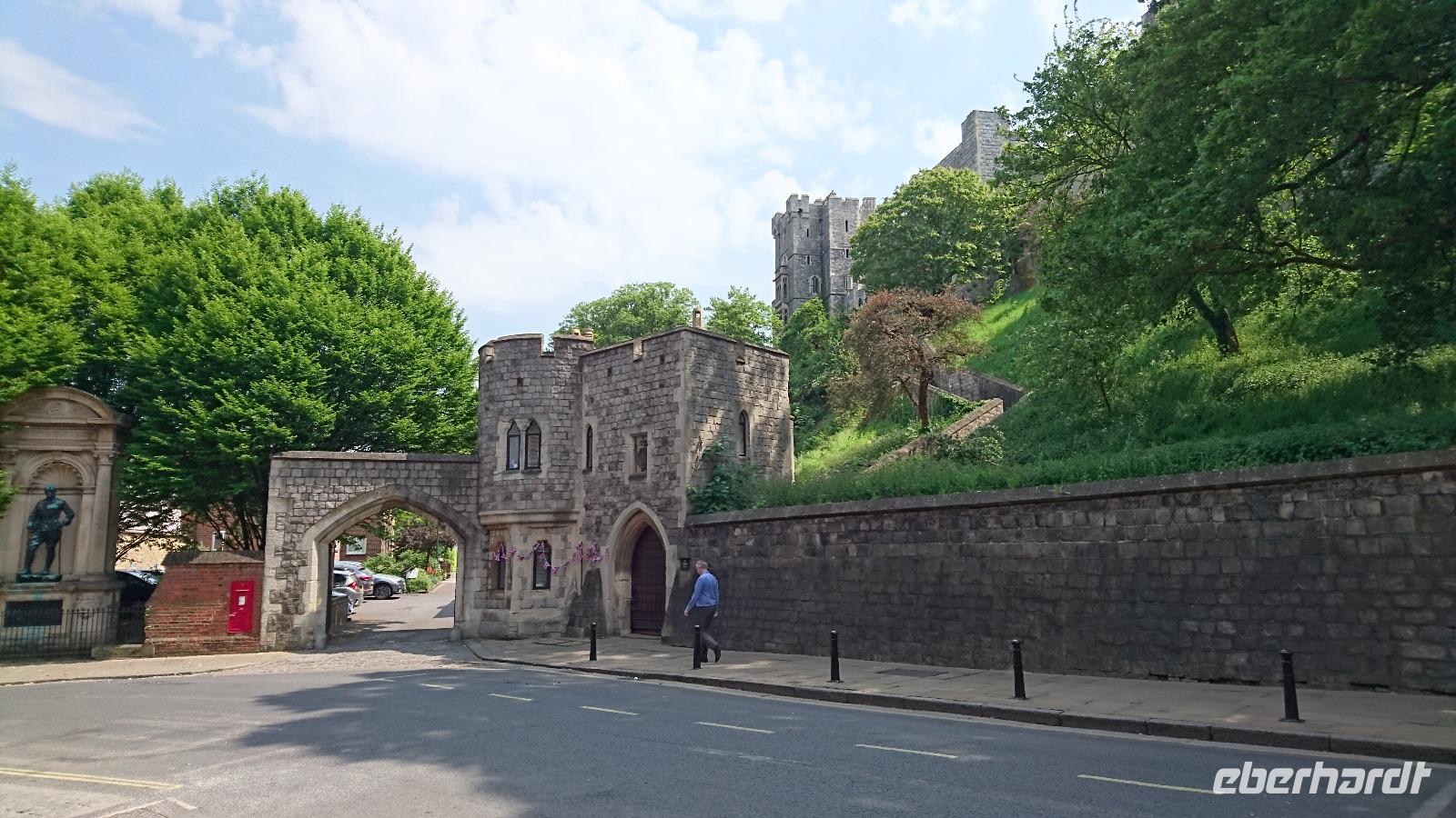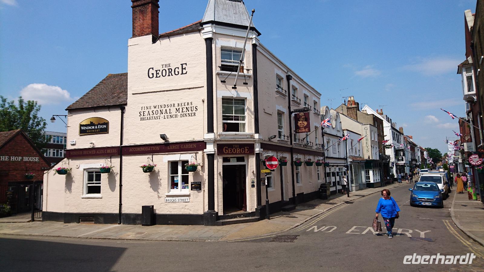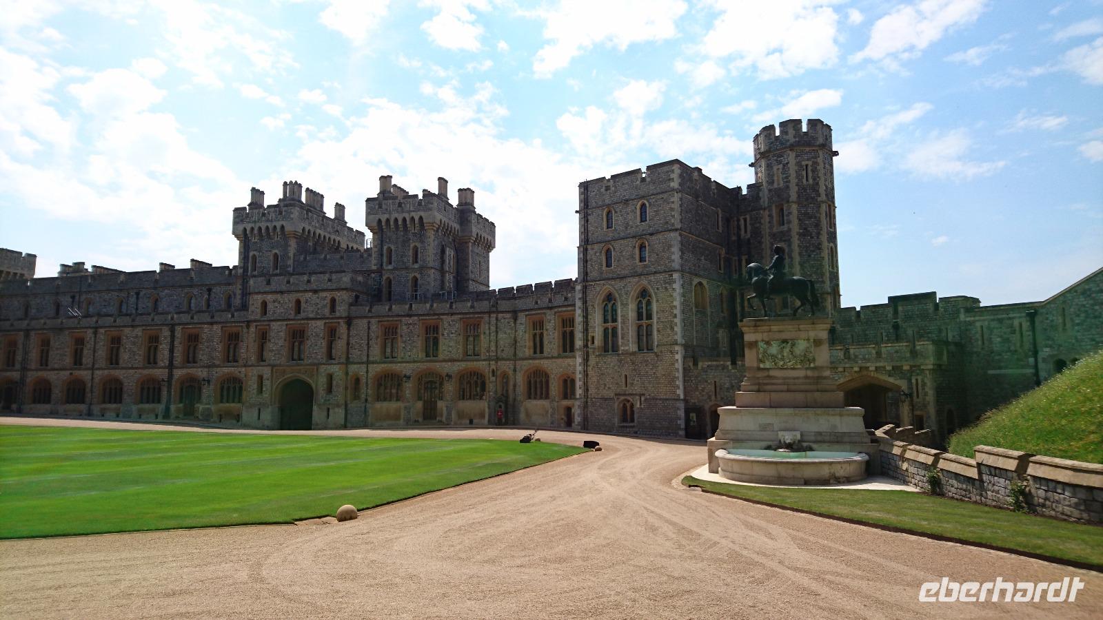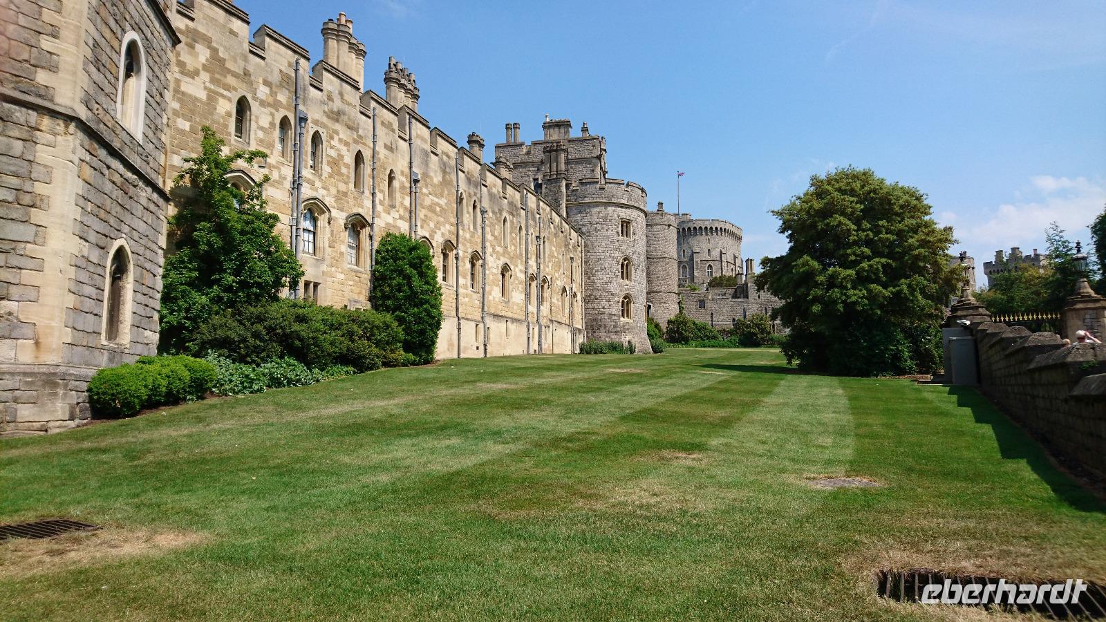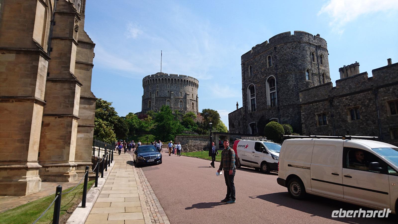 Am Vormittag trafen sich alle Windsor-Besucher wieder an der Rezeption, andere unternahmen bereits eigene Touren durch London oder hatten andere Pläne. Unser Bus fuhr dann durch den morgendlichen Verkehr durch die Innenstadt und dann zur Autobahn in Richtung „London Heathrow" und weiter nach Windsor. Natürlich sahen wir hier schon bei unserer Ankunft, wie viele Menschen wohl zur Hochzeit vor drei Tagen hier gewesen sein mussten und wie man diese, aber auch die königliche Familie und deren Gäste absicherte. Wir spazierten zum Eingang des Castle und besuchten dieses mit Audioguides, konnten, da die königliche Familie gerade in London weilte, alle zugänglichen Räume sehen, was nicht immer der Fall ist, und staunten über königliche Gemächer, royales Spielzeug, dicke Mauern, unendlich viele Räume, grüne Oasen zwischen den alten Steinen und Unmengen von Besuchern, die jedoch aufgrund der Weitläufigkeit in „Windsor Castle" nicht weiter störten. Jeder gestaltete sich seinen Schlossbesuch individuell, wer wollte, besuchte danach noch den kleinen Ort Windsor mit seinem Rathaus, in dem der „Prince of Wales" und Lady Camilla einst heirateten, dem alten Bahnhof, in dem man die Lokomotive des Regierungszuges von „Queen Victoria" bestaunen konnte, und den vielen Souvenirgeschäften, aber auch bunt angezogenen Damen auf den Straßen, welche die „Lustigen Weiber von Windsor" von William Shakespeare darstellen wollten. Später trafen wir uns fast alle für einen Spaziergang mit Stefan nach Eton. Leider war das „Eton College" aufgrund gerade laufender Prüfungen für die Öffentlichkeit geschlossen, doch Stefan zeigte und alte Häuser, schön gestaltete Gärten und Gassen und lud uns darauf noch in den zünftigen alten Eton-Pub „The George" auf ein Getränk unserer Wahl ein. Dabei sprachen wir gern über die vielen schönen Erlebnisse unserer Reise. Später spazierten wir wieder über die Themsebrücke zurück nach Windsor uns fuhren darauf mit unserem Bus zurück nach London, um noch einen Abend individuell gier zu verbringen und doch schon unsere Koffer zu packen. Dann wollten wir uns noch einmal ausruhen für den nächsten Tag.