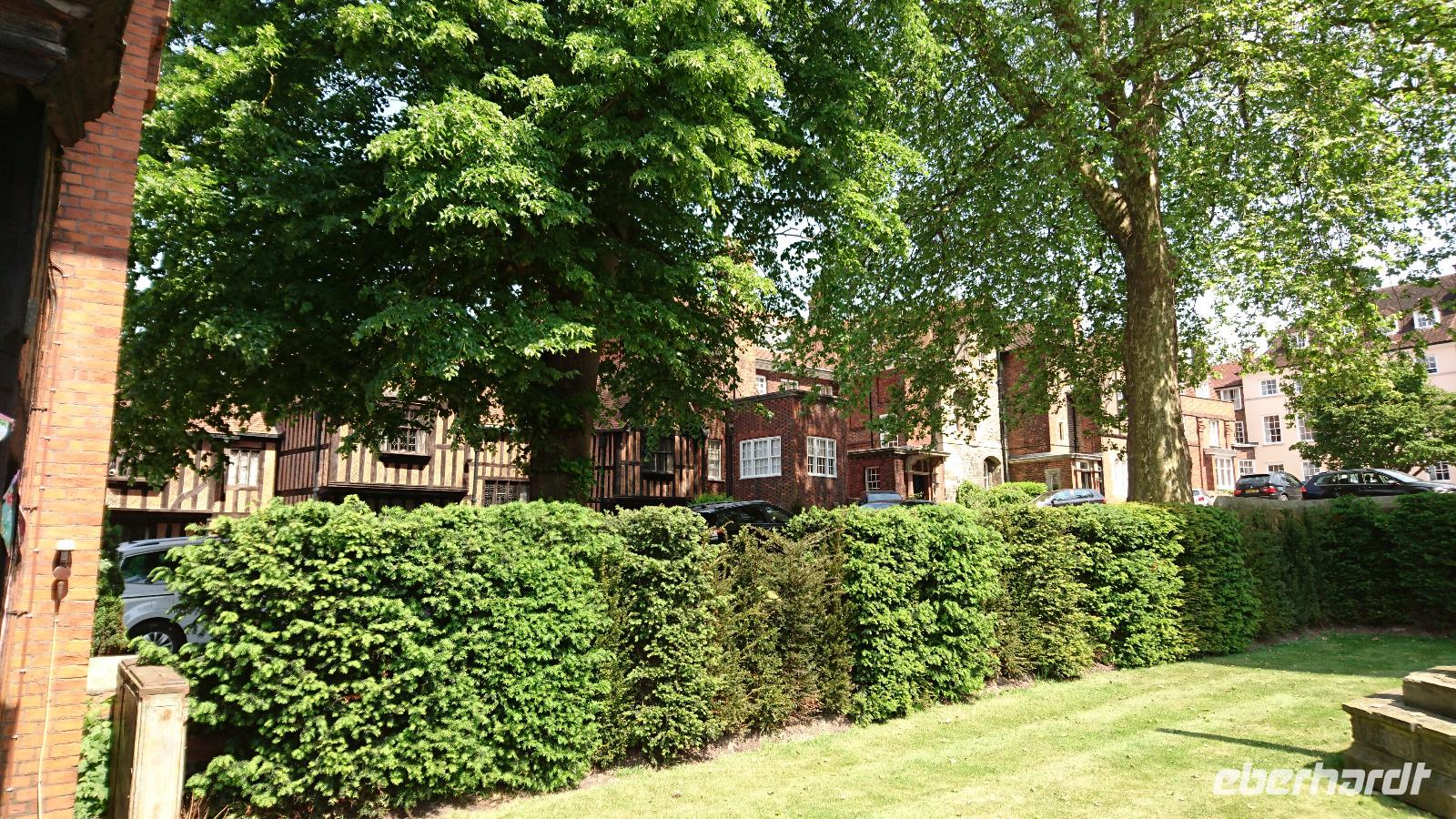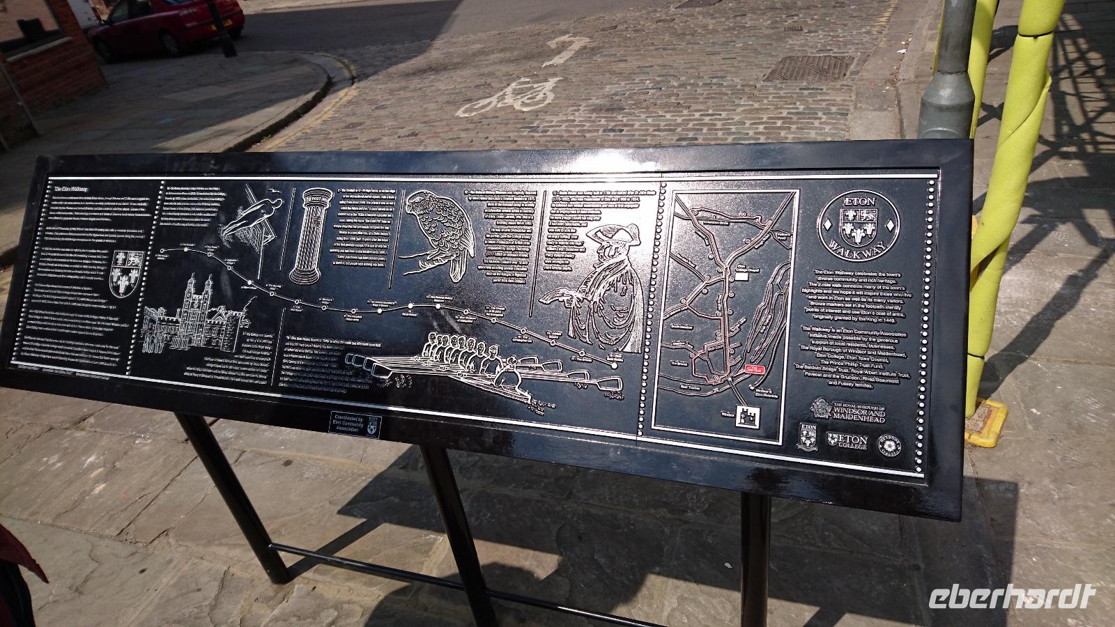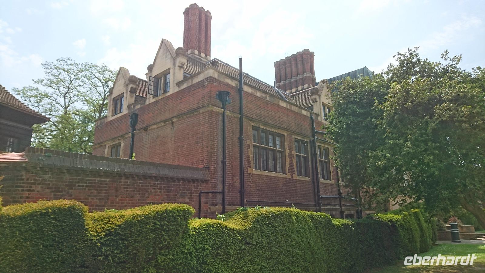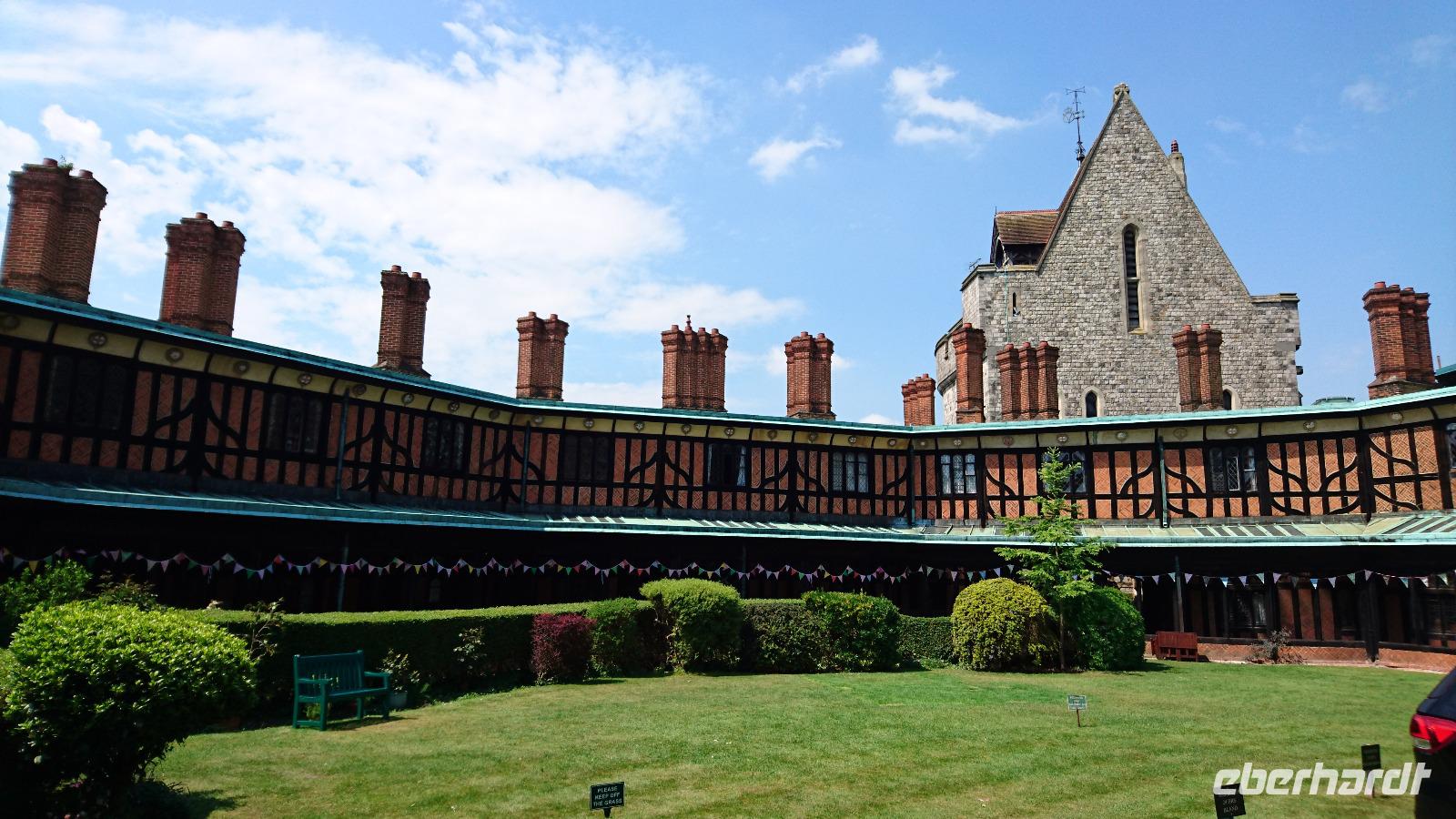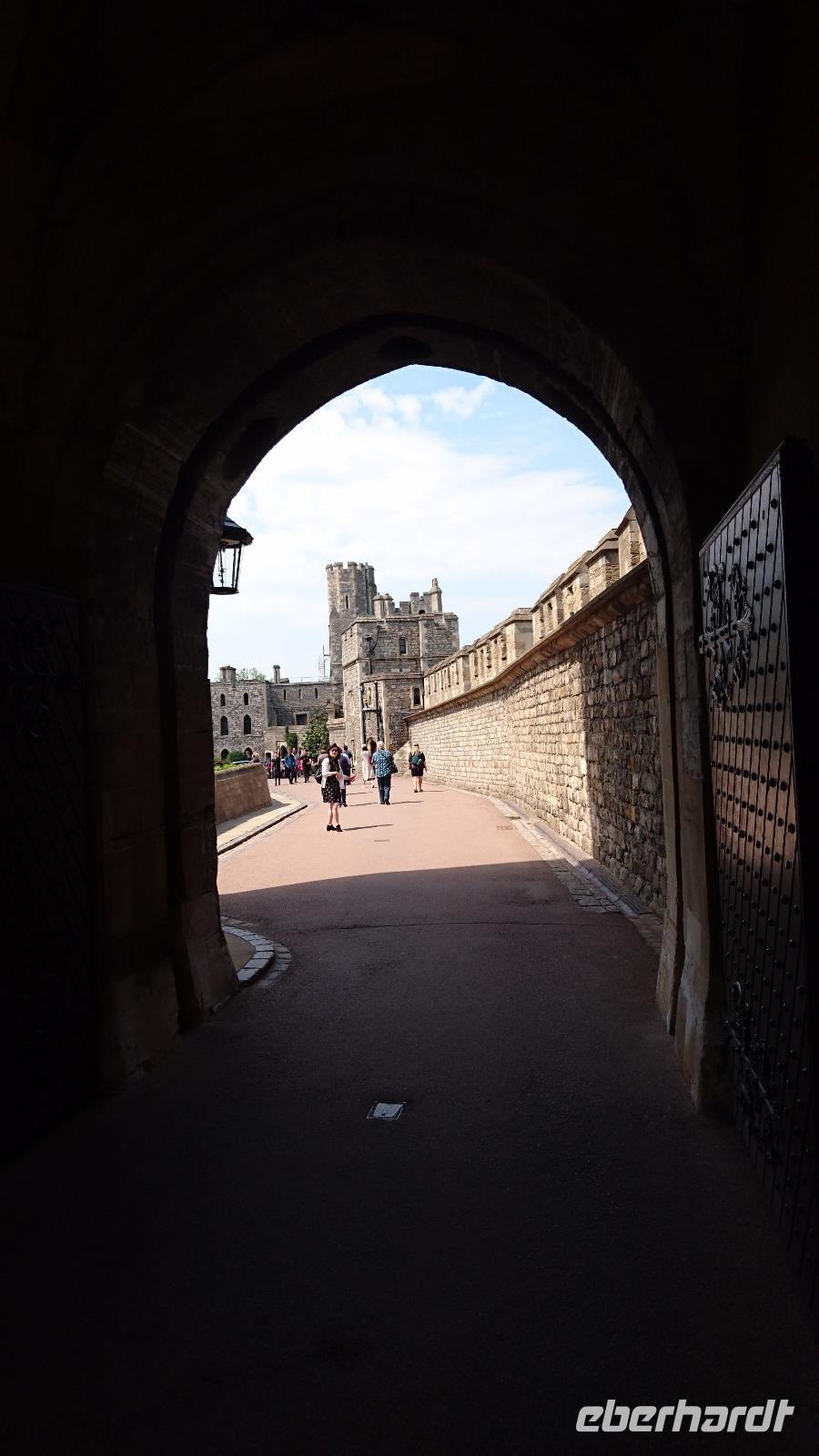 Am Vormittag trafen sich alle Windsor-Besucher wieder an der Rezeption, andere unternahmen bereits eigene Touren durch London oder hatten andere Pläne. Unser Bus fuhr dann durch den morgendlichen Verkehr durch die Innenstadt und dann zur Autobahn in Richtung „London Heathrow" und weiter nach Windsor. Natürlich sahen wir hier schon bei unserer Ankunft, wie viele Menschen wohl zur Hochzeit vor drei Tagen hier gewesen sein mussten und wie man diese, aber auch die königliche Familie und deren Gäste absicherte. Wir spazierten zum Eingang des Castle und besuchten dieses mit Audioguides, konnten, da die königliche Familie gerade in London weilte, alle zugänglichen Räume sehen, was nicht immer der Fall ist, und staunten über königliche Gemächer, royales Spielzeug, dicke Mauern, unendlich viele Räume, grüne Oasen zwischen den alten Steinen und Unmengen von Besuchern, die jedoch aufgrund der Weitläufigkeit in „Windsor Castle" nicht weiter störten. Jeder gestaltete sich seinen Schlossbesuch individuell, wer wollte, besuchte danach noch den kleinen Ort Windsor mit seinem Rathaus, in dem der „Prince of Wales" und Lady Camilla einst heirateten, dem alten Bahnhof, in dem man die Lokomotive des Regierungszuges von „Queen Victoria" bestaunen konnte, und den vielen Souvenirgeschäften, aber auch bunt angezogenen Damen auf den Straßen, welche die „Lustigen Weiber von Windsor" von William Shakespeare darstellen wollten. Später trafen wir uns fast alle für einen Spaziergang mit Stefan nach Eton. Leider war das „Eton College" aufgrund gerade laufender Prüfungen für die Öffentlichkeit geschlossen, doch Stefan zeigte und alte Häuser, schön gestaltete Gärten und Gassen und lud uns darauf noch in den zünftigen alten Eton-Pub „The George" auf ein Getränk unserer Wahl ein. Dabei sprachen wir gern über die vielen schönen Erlebnisse unserer Reise. Später spazierten wir wieder über die Themsebrücke zurück nach Windsor uns fuhren darauf mit unserem Bus zurück nach London, um noch einen Abend individuell gier zu verbringen und doch schon unsere Koffer zu packen. Dann wollten wir uns noch einmal ausruhen für den nächsten Tag.