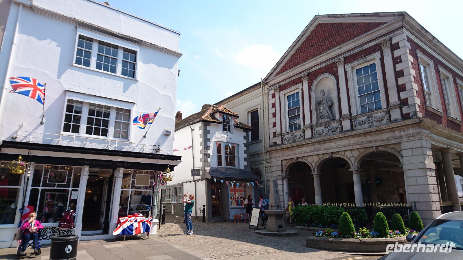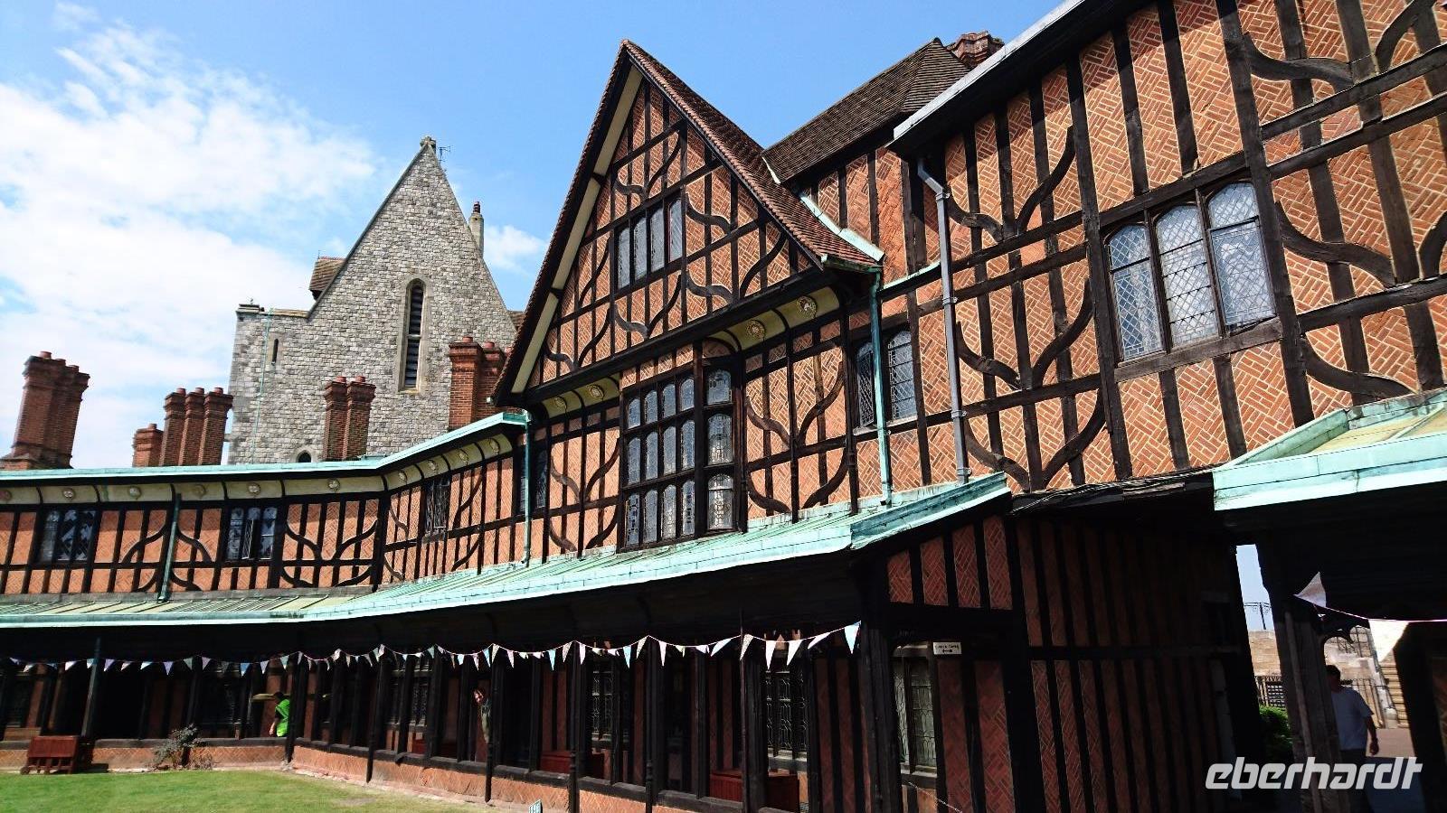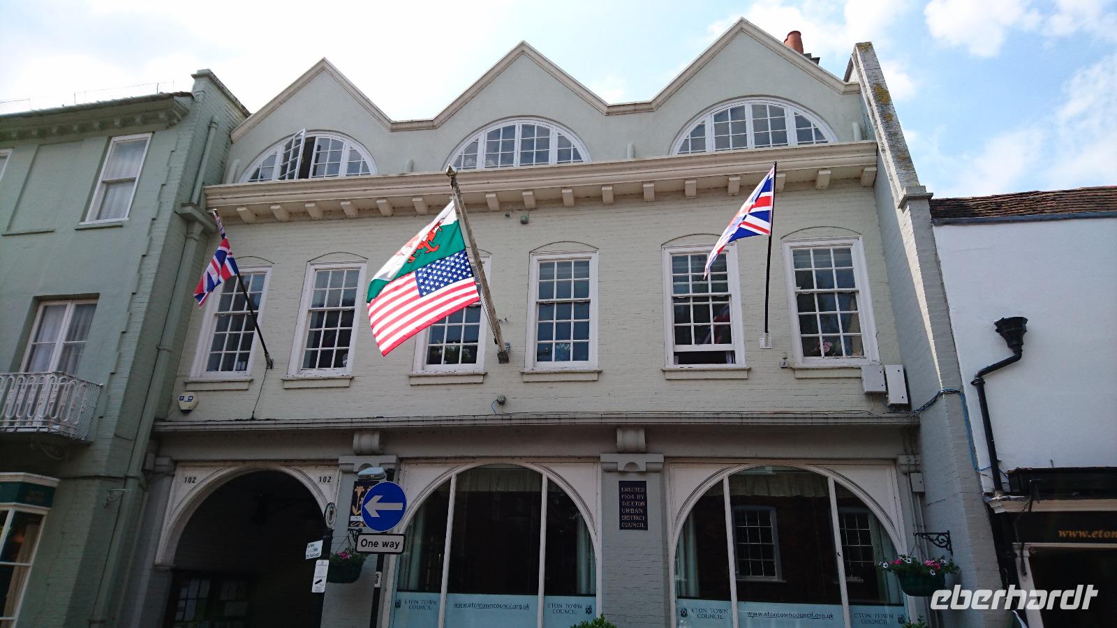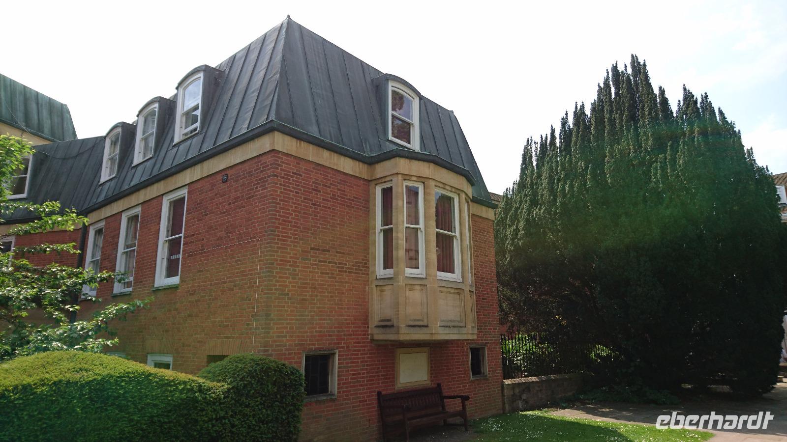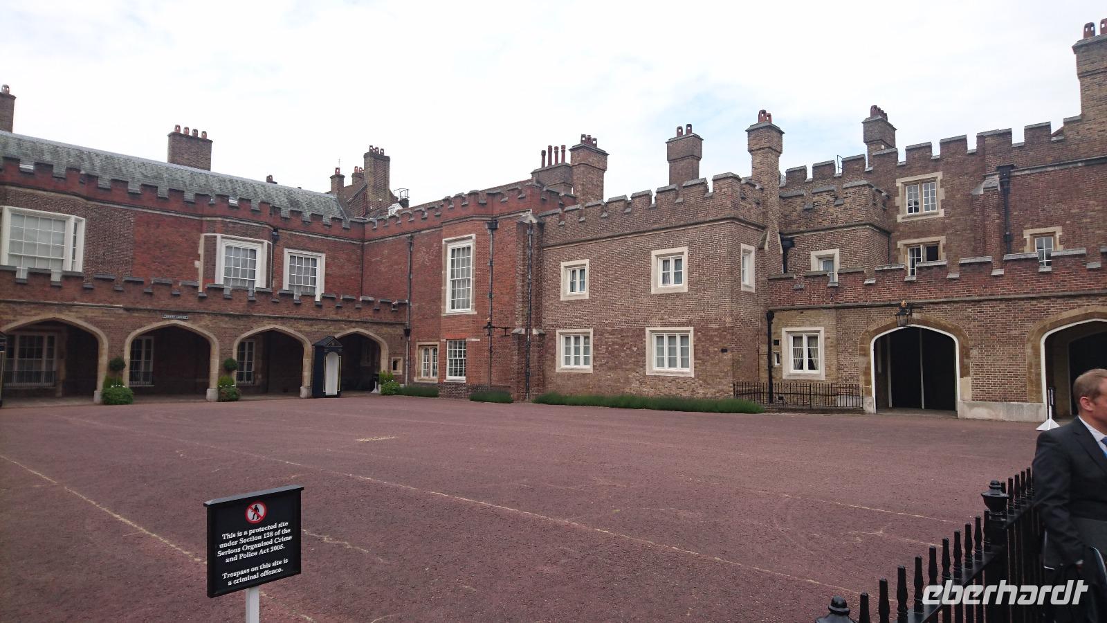 Am Vormittag trafen sich alle Windsor-Besucher wieder an der Rezeption, andere unternahmen bereits eigene Touren durch London oder hatten andere Pläne. Unser Bus fuhr dann durch den morgendlichen Verkehr durch die Innenstadt und dann zur Autobahn in Richtung „London Heathrow" und weiter nach Windsor. Natürlich sahen wir hier schon bei unserer Ankunft, wie viele Menschen wohl zur Hochzeit vor drei Tagen hier gewesen sein mussten und wie man diese, aber auch die königliche Familie und deren Gäste absicherte. Wir spazierten zum Eingang des Castle und besuchten dieses mit Audioguides, konnten, da die königliche Familie gerade in London weilte, alle zugänglichen Räume sehen, was nicht immer der Fall ist, und staunten über königliche Gemächer, royales Spielzeug, dicke Mauern, unendlich viele Räume, grüne Oasen zwischen den alten Steinen und Unmengen von Besuchern, die jedoch aufgrund der Weitläufigkeit in „Windsor Castle" nicht weiter störten. Jeder gestaltete sich seinen Schlossbesuch individuell, wer wollte, besuchte danach noch den kleinen Ort Windsor mit seinem Rathaus, in dem der „Prince of Wales" und Lady Camilla einst heirateten, dem alten Bahnhof, in dem man die Lokomotive des Regierungszuges von „Queen Victoria" bestaunen konnte, und den vielen Souvenirgeschäften, aber auch bunt angezogenen Damen auf den Straßen, welche die „Lustigen Weiber von Windsor" von William Shakespeare darstellen wollten. Später trafen wir uns fast alle für einen Spaziergang mit Stefan nach Eton. Leider war das „Eton College" aufgrund gerade laufender Prüfungen für die Öffentlichkeit geschlossen, doch Stefan zeigte und alte Häuser, schön gestaltete Gärten und Gassen und lud uns darauf noch in den zünftigen alten Eton-Pub „The George" auf ein Getränk unserer Wahl ein. Dabei sprachen wir gern über die vielen schönen Erlebnisse unserer Reise. Später spazierten wir wieder über die Themsebrücke zurück nach Windsor uns fuhren darauf mit unserem Bus zurück nach London, um noch einen Abend individuell gier zu verbringen und doch schon unsere Koffer zu packen. Dann wollten wir uns noch einmal ausruhen für den nächsten Tag.