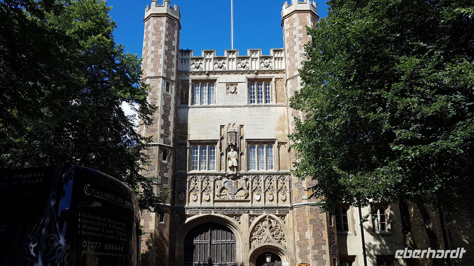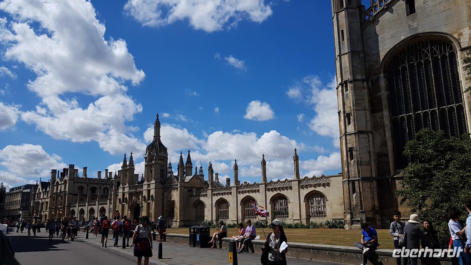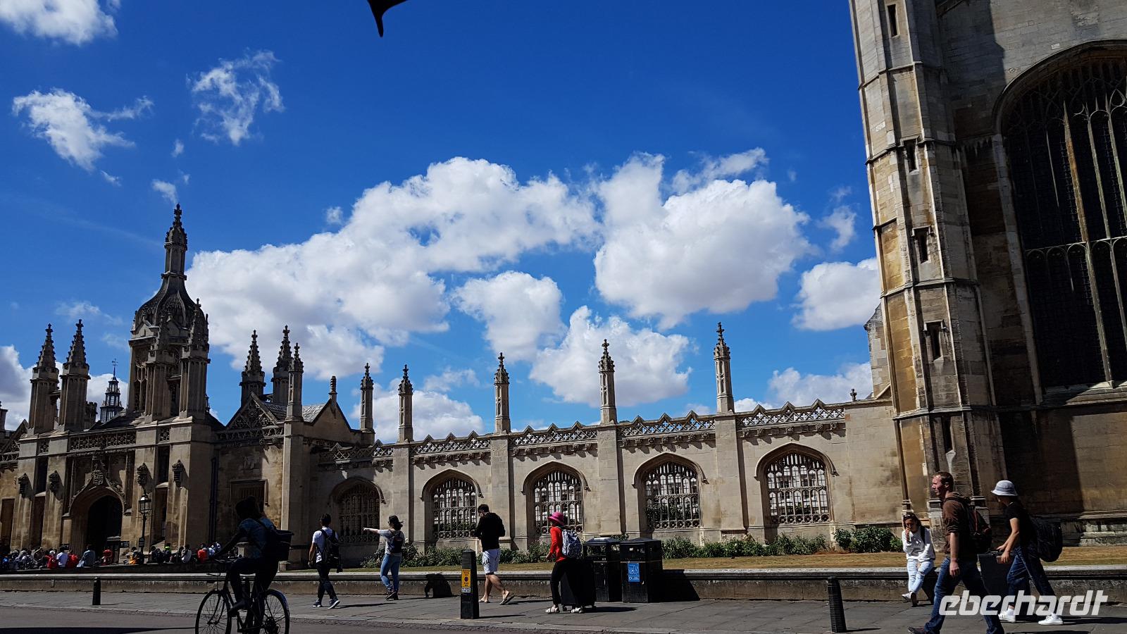 Auch wenn an Bord unserer Fähre bereits die englische Zeit galt (eine Stunde zurück) so hieß es doch zeitig aufstehen, ab 5.30 Uhr gab es Frühstück und wir trafen uns 6:20 Uhr um gemeinsam zum Bus auf Deck 3 zu gehen. Hier hieß es dann warten, was uns aber die Gelegenheit gab, die Manöver rund ums "Ausladen" zu beobachten inklusive des Hebens und Senkens der verschiedenen Autodecks. Beeindruckend ! Schlußendlich rollten auch wir von der Fähre und mit festem britischen Boden unter unseren Rädern begrüßten wir das Land standesgemäß mit seiner Nationalhymne- God save the Queen! Die Passkontrolle war rasch erledigt und schon saßen wir wieder im Bus und fuhren gen Westen zu unserem ersten Ziel für heute: Cambridge. Begrüßt wurden wir mit Blitz und Donner und (wohligen) 14 °C. Doch bald wurde es heller, die Wolken rissen auf und in Cambridge begrüßten uns strahlender Sonnenschein und ein wenig Wind. Den gebe es hier imm er, so versicherte es uns unsere Stadtführerin aber auch sie war über die Abkühlung froh. Selbst England hatte in den letzten Wochen unter der Hitze enorm gelitten. Wir spazierten am Cam entlang (von dem die Stadt ja ihren Namen hat) und konnten das Magdalene-College besuchen. Baulich an die Klöster der Zeit angelehnt (ein viereckiger Platz wurde auf den 4 Seiten umbaut) entstand im Innenhof tatsächlich sofort eine himmlische Ruhe- der Stadttrubel schien regelrecht ausgesperrt. Da konnten wir nachvollziehen, dass die Studenten sich hier auf ihr Studium konzentrieren konnten (oder könnten ?). Weitere Colleges passierten wir auf unserem Stadtrundgang- Höhepunkt waren natürlich das St. Johns und das Kings- College. An der St. Mary Kirche dann hatten wir ein wenig Freizeit, wer wollte schlenderte über den Markt oder die Straßen weiter bis wir uns gegen 12 Uhr wieder trafen und gemeinsam Richtung Bus aufbrachen. Unterwegs statteten wir dem "Zeitfresser" einen Besuch ab, eine Uhr, die ca. 1 Million Pfund wert ist, und mit 24 karätigem Gold überzogen ist, auf ihr läuft ein Rieseninsekt entlang und sorgt dafür, dass die Zeitraster weitergedreht werden...Ein letzter Foto-Stopp an der Mathematiker-Brücke und dann verabschiedeten wir uns von unserer Stadtführerin Elfriede und starteten gen London. An der Birch-Service-Station stärkten wir uns nochmal, wer wollte auch vom Bord-Service, und pünktlich 14:30 erreichten wir unser Hotel: das Geoman Tower Hotel direkt an der Tower Bridge. Auch unsere Fluggäste aus Berlin waren gerade eingetroffen und wir verabredeten uns für den Nachmittag zum Ausflug zum London Eye. Auch unsere Flug-Gäste aus Frankfurt waren sicher am Flughafen abgeholt worden und kamen nun im Hotel an, bezogen ihre Zimmer und dann starteten wir mit unserem Bus zum London Eye. Die kleine Stadtrundfahrt genossen alle und am Riesenrad angekommen konnten auch einige Kurzentschlossene mit Tickets versorgt werden. So genossen alle die Fahrt- die Luft schien nach dem Regen wie frisch gewaschen- die Aussicht- grandios! Allen stand ein Lächeln ins Gesicht geschrieben als sie zurückkamen und so fuhr uns Roy sicher zum Hotel zurück wo uns am Abend unser Begrüßungs-Dinner erwartete. Und nicht nur das- mit einem Glas Wein stießen wir auf erlebnisreiche Tage hier in London an und dann gab es auch noch jede Menge Papier: Tagespläne und die Unterlagen/ Tickets für die vielen individuellen Buchungen im Vorfeld. So klang wieder ein langer Tag aus und wir verabschiedeten uns bis morgen.
