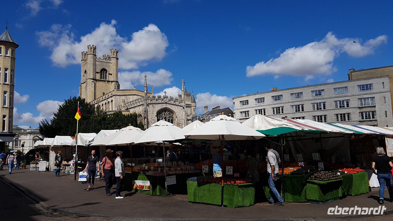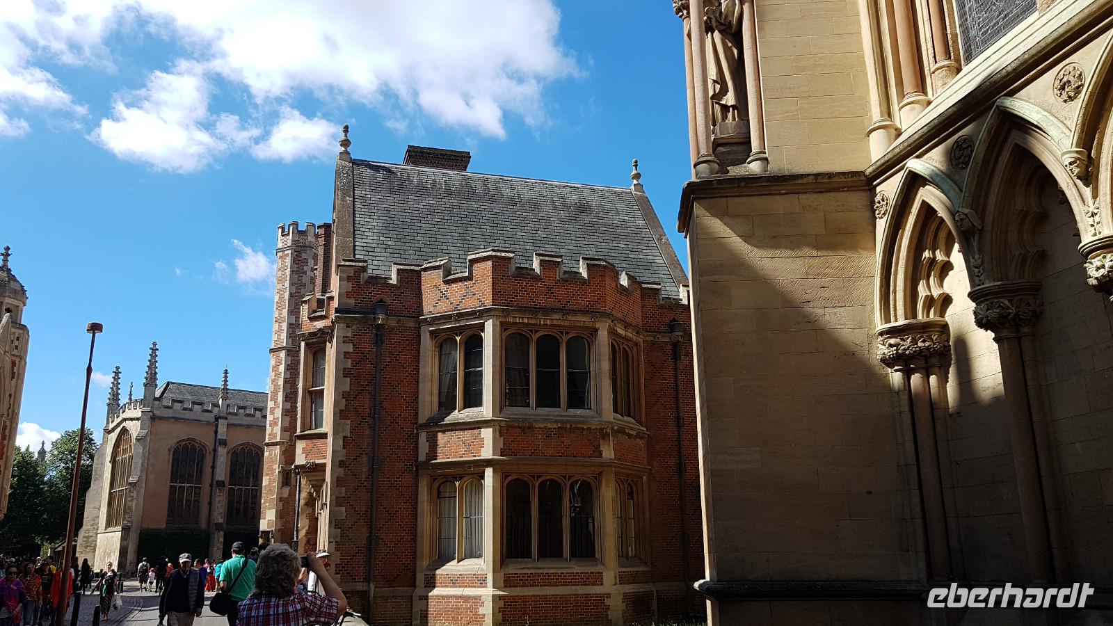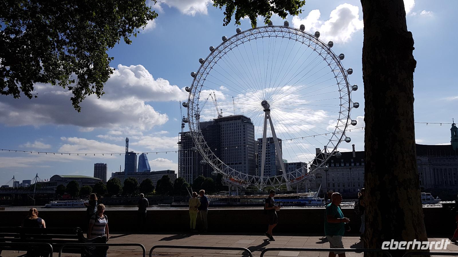 Auch wenn an Bord unserer Fähre bereits die englische Zeit galt (eine Stunde zurück) so hieß es doch zeitig aufstehen, ab 5.30 Uhr gab es Frühstück und wir trafen uns 6:20 Uhr um gemeinsam zum Bus auf Deck 3 zu gehen. Hier hieß es dann warten, was uns aber die Gelegenheit gab, die Manöver rund ums "Ausladen" zu beobachten inklusive des Hebens und Senkens der verschiedenen Autodecks. Beeindruckend ! Schlußendlich rollten auch wir von der Fähre und mit festem britischen Boden unter unseren Rädern begrüßten wir das Land standesgemäß mit seiner Nationalhymne- God save the Queen! Die Passkontrolle war rasch erledigt und schon saßen wir wieder im Bus und fuhren gen Westen zu unserem ersten Ziel für heute: Cambridge. Begrüßt wurden wir mit Blitz und Donner und (wohligen) 14 °C. Doch bald wurde es heller, die Wolken rissen auf und in Cambridge begrüßten uns strahlender Sonnenschein und ein wenig Wind. Den gebe es hier imm er, so versicherte es uns unsere Stadtführerin aber auch sie war über die Abkühlung froh. Selbst England hatte in den letzten Wochen unter der Hitze enorm gelitten. Wir spazierten am Cam entlang (von dem die Stadt ja ihren Namen hat) und konnten das Magdalene-College besuchen. Baulich an die Klöster der Zeit angelehnt (ein viereckiger Platz wurde auf den 4 Seiten umbaut) entstand im Innenhof tatsächlich sofort eine himmlische Ruhe- der Stadttrubel schien regelrecht ausgesperrt. Da konnten wir nachvollziehen, dass die Studenten sich hier auf ihr Studium konzentrieren konnten (oder könnten ?). Weitere Colleges passierten wir auf unserem Stadtrundgang- Höhepunkt waren natürlich das St. Johns und das Kings- College. An der St. Mary Kirche dann hatten wir ein wenig Freizeit, wer wollte schlenderte über den Markt oder die Straßen weiter bis wir uns gegen 12 Uhr wieder trafen und gemeinsam Richtung Bus aufbrachen. Unterwegs statteten wir dem "Zeitfresser" einen Besuch ab, eine Uhr, die ca. 1 Million Pfund wert ist, und mit 24 karätigem Gold überzogen ist, auf ihr läuft ein Rieseninsekt entlang und sorgt dafür, dass die Zeitraster weitergedreht werden...Ein letzter Foto-Stopp an der Mathematiker-Brücke und dann verabschiedeten wir uns von unserer Stadtführerin Elfriede und starteten gen London. An der Birch-Service-Station stärkten wir uns nochmal, wer wollte auch vom Bord-Service, und pünktlich 14:30 erreichten wir unser Hotel: das Geoman Tower Hotel direkt an der Tower Bridge. Auch unsere Fluggäste aus Berlin waren gerade eingetroffen und wir verabredeten uns für den Nachmittag zum Ausflug zum London Eye. Auch unsere Flug-Gäste aus Frankfurt waren sicher am Flughafen abgeholt worden und kamen nun im Hotel an, bezogen ihre Zimmer und dann starteten wir mit unserem Bus zum London Eye. Die kleine Stadtrundfahrt genossen alle und am Riesenrad angekommen konnten auch einige Kurzentschlossene mit Tickets versorgt werden. So genossen alle die Fahrt- die Luft schien nach dem Regen wie frisch gewaschen- die Aussicht- grandios! Allen stand ein Lächeln ins Gesicht geschrieben als sie zurückkamen und so fuhr uns Roy sicher zum Hotel zurück wo uns am Abend unser Begrüßungs-Dinner erwartete. Und nicht nur das- mit einem Glas Wein stießen wir auf erlebnisreiche Tage hier in London an und dann gab es auch noch jede Menge Papier: Tagespläne und die Unterlagen/ Tickets für die vielen individuellen Buchungen im Vorfeld. So klang wieder ein langer Tag aus und wir verabschiedeten uns bis morgen.