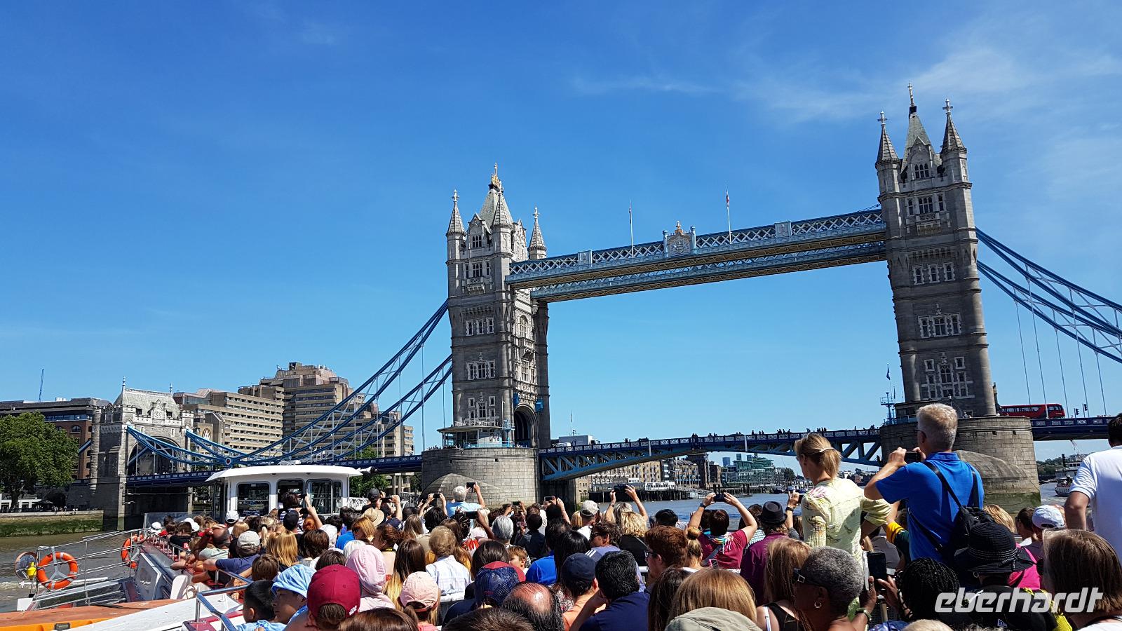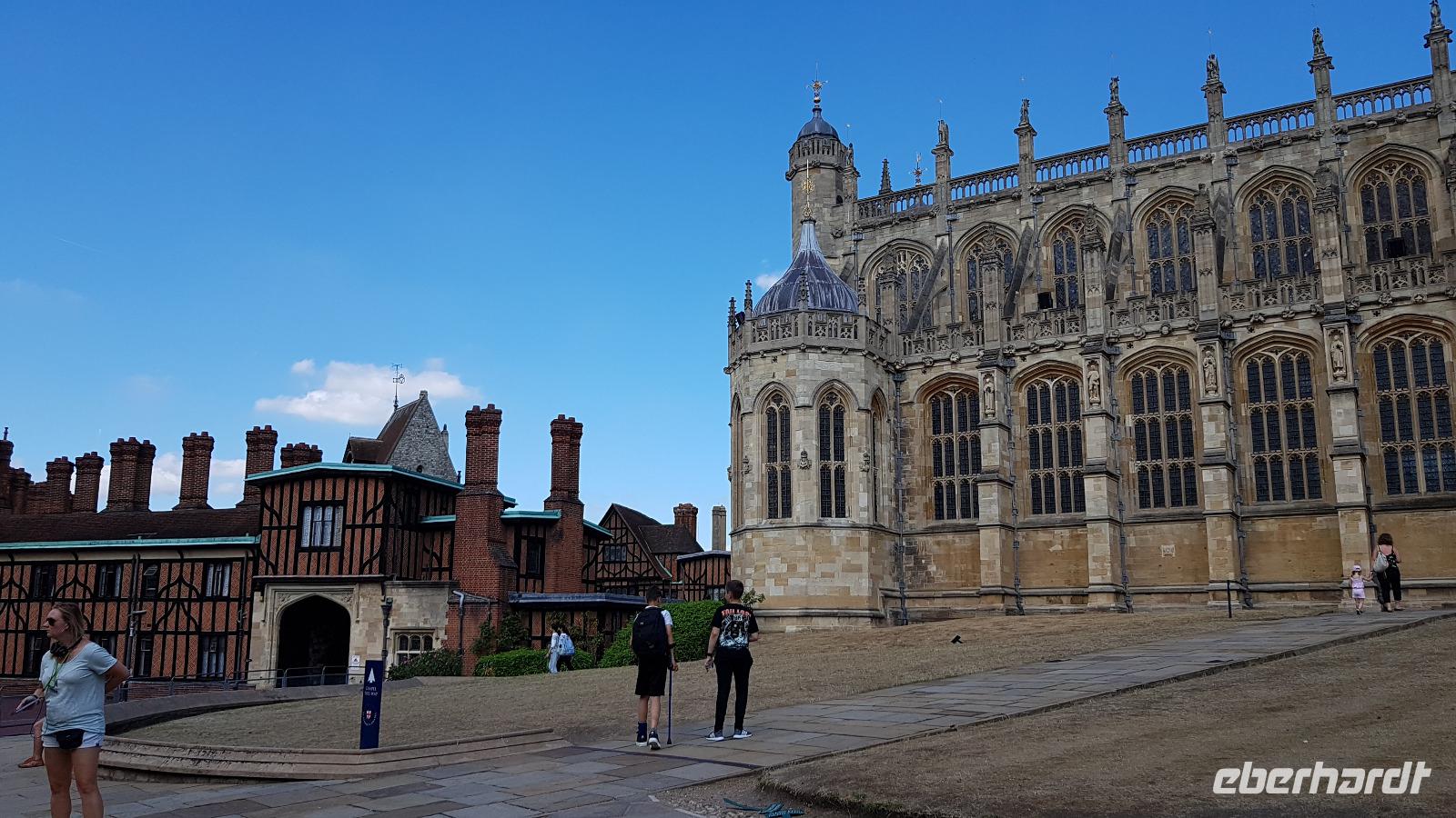 Heute stehen ganz individuelle Erkundungen auf dem Plan. Eine größere Gruppe hat sich für den Ausflug nach Windsor und Eton entschlossen und zeitig um 8 Uhr geht es los. Das ist auch gut so denn wir kommen ohne Stau aus der Stadt. Obwohl wir recht zeitig in Windsor sind ist die Schlange am Einlass schon enorm lang. Aber es geht zügig voran und mit einem Bändchen am Handgelenk, einer Übersichtskarte und Audio Guides geht es auf Erkundungstour. Absolut beeindruckend selbstverständlich die Staatsgemächer, wir kommen uns vor wie Staatsgäste, die auf einem roten Teppich empfangen werden. Schade nur, dass das Puppenhaus der Queen immernoch für längere Zeit geschlossen bleibt. Man restauriert wohl. Wer wollte traf sich nach dem Mittag noch für einem Spaziergang nach Eton. Das dortige College ist zwar wegen der Sommerferien geschlossen, aber ein Besuch lohnt allemal. Zumal Eton selber eine kleine Perle ist. Die Themse bildet die natürliche Grenze zwischen Windsor und Eton, dann taucht man ein in eine fast völlig erhaltene mittelalterliche Welt. Was für Häuser und Details daran! Am Nachmittag dann fahren wir zurück nach London, vorbei am Flughafen und ins Zentrum, dann hat uns der Wochenend-Stau fest im Griff. Die Musical-Besucher bangen um die rechtzeitige Ankunft, aber wir schaffen es noch. Am Abend dann sitzen viele noch beisammen und lassen den Tag revue passieren, tauschen ihre Erlebnisse aus und schon naht der Abschied von dieser wundervollen Metropole. Zumindest für die Fluggäste, die müssen morgen früh zeitig los.