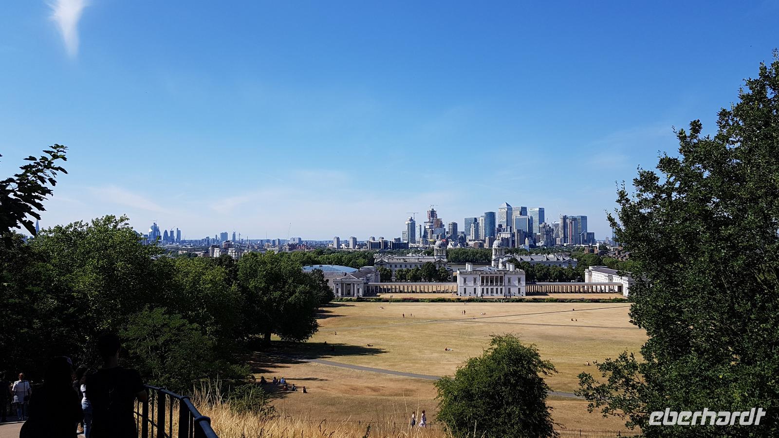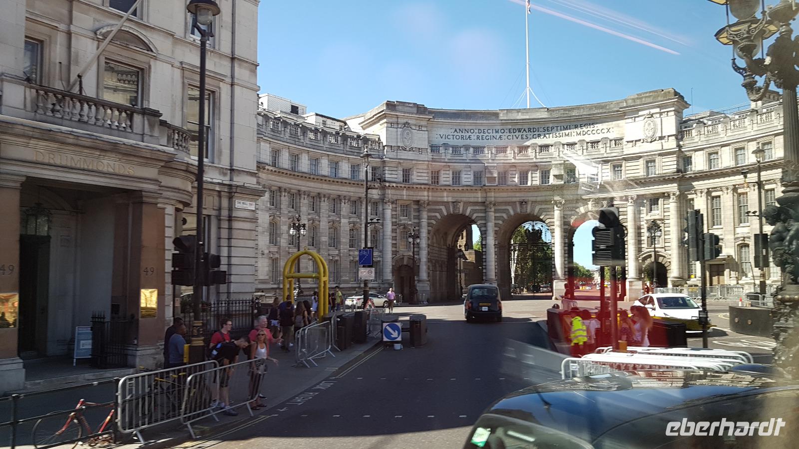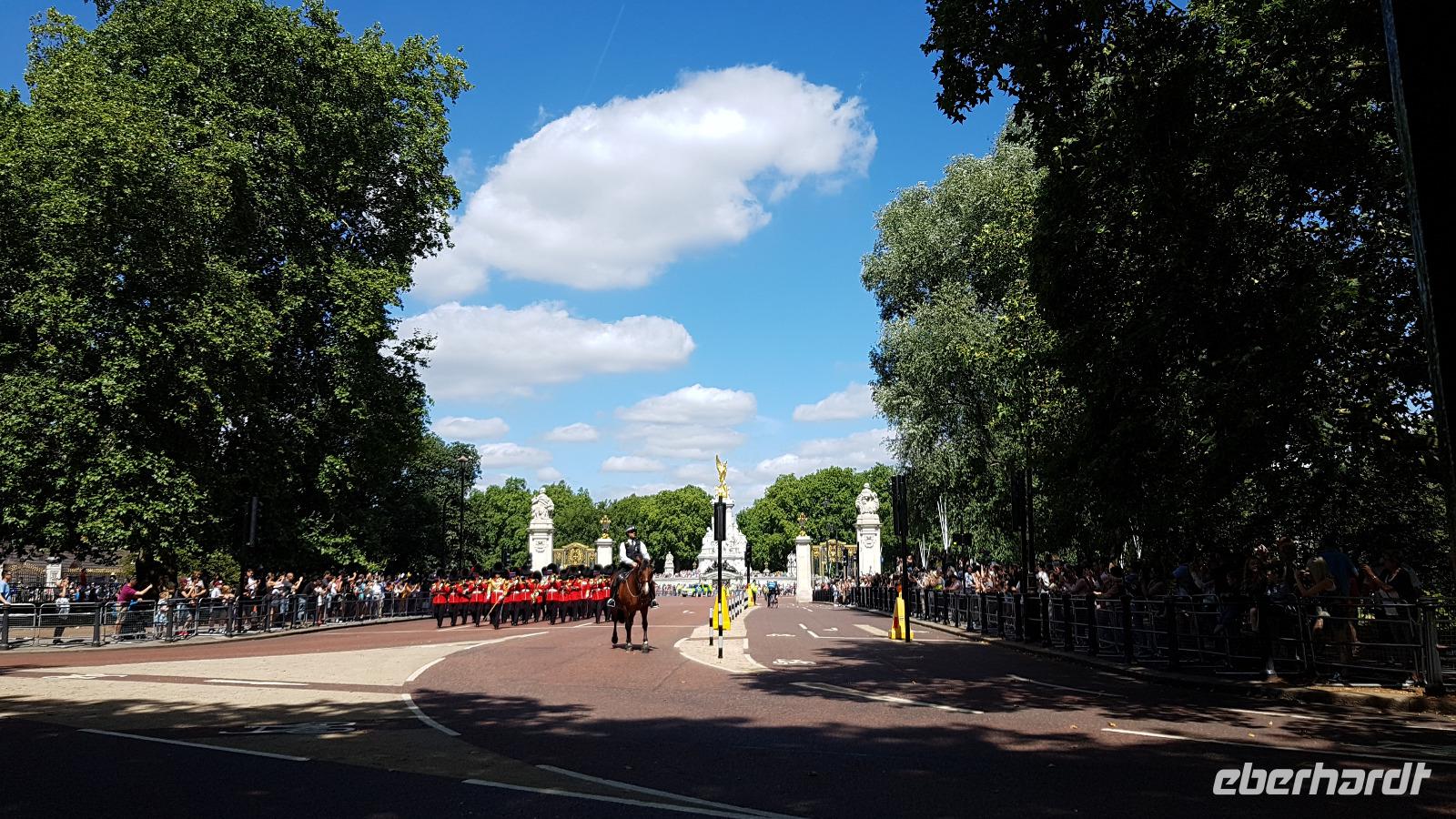 Mein Info-Treff am Morgen in der Hotel-Lobby wurde gut besucht und wir hatten Mühe, rechtzeitig zum Bus aufzubrechen. Der stand in der Tiefgarage des Tower Hill Coach Park und die wollten wir spätestens 9 Uhr verlassen.Das taten wir dann auch- aber- es fehlt jemand, also laufe ich nochmal zurück zum Hotel und hole einen verspäteten Gast ab. Nun aber ging es los, am Victoria Embankment steigen wir aus und spazierten gemeinsam an der Westminster Abbey vorbei, erfuhren, warum der Statue von Winston Churchill keine Taube etwas anhaben kann und kamen dann zur berühmten Downing Street. Gut gesichert 10 Downing Street, der Sitz von Theresy May, der Premierministerin Großbritanniens. Weiter ging es bis zum Trafalger Square und von dort über die Mall, die Prachtstraße, zum Buckingham Palace. Schließlich waren wir auf den Spuren der königlichen Residenz London. Es gab noch ein paar Tipps, wo man die Wachablösung gut sehen konnte und dann suchte sich jeder einen guten Platz dafür. Begeistert verfolgten wir, wie diese traditionelle Zeremonie moderner wird, die Kapelle spielte Themen aus Bond- Filmen, GoT und auch die Beatles waren mit von der Partie. Nach dem Wachwechsel holte uns Roy am Buckingham Palace ab und wir fuhren zum Westminster Pier. Von hier aus starteten wir unsere Bootsfahrt auf der Themse nach Greenwich. Heute morgen war ein Kreuzfahrtschiff, die Silverwind, eingetroffen, dafür war die Tower Bridge geöffnet worden. Dieses passierten war, es hatte an der HMS Belfast festgemacht. Vorbei am Tower und den neuen Wharf-Bebauungen erreichten wir schließlich Greenwich und stiegen hier aus. Der Teeklipper "Cutty Sark" empfing uns, einst der schnellste Teesegler der Welt. Von hier aus ging es zum Maritim Museum. Das konnte jeder individuell erkunden und am Königlichen Observatorium, dem Royal Observatory wartete ich dann bereits mit den Eintritts- Bändchen. Vorher hieß es aber, den Hügel hinauf zu erklimmen- dafür wurden wir mit einer grandiosen Ansicht der Skyline von London belohnt. Wieder erkundeten wir individuell dieses Museum, wer wollte auch mit Audio Guides und so erfuhren wir viel über die Geschichte und die ausgestellten Geräte hier. Natürlich durfte die Zeitkugel nicht fehlen und auch das obligatorische Foto vom Null-Meridian nicht. Dann genossen wir die restliche Zeit bei einem Spaziergang durch den Königlichen Park und trafen am Parkausgang auf Roy, der mit unserem Bus bereits wartete. Die Rückfahrt wurde dann eine Geduldsprobe, Feierabend-Verkehr und ein Problem auf der Tower Bridge ließen die Fahrt endlos erscheinen. Dafür konnten wir die recht ungewöhnlichen Auslegungen von Verkehrs-Regeln hier in London kennenlernen. Mit einem Ausblick auf morgen verabschiedeten wir uns voneinander und jeder konnte den Abend dort ausklingen lassen, wo es ihm oder ihr gefiel.