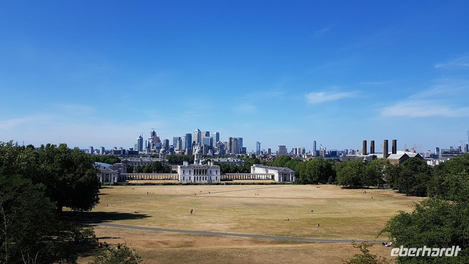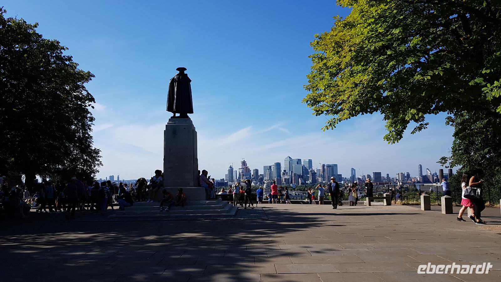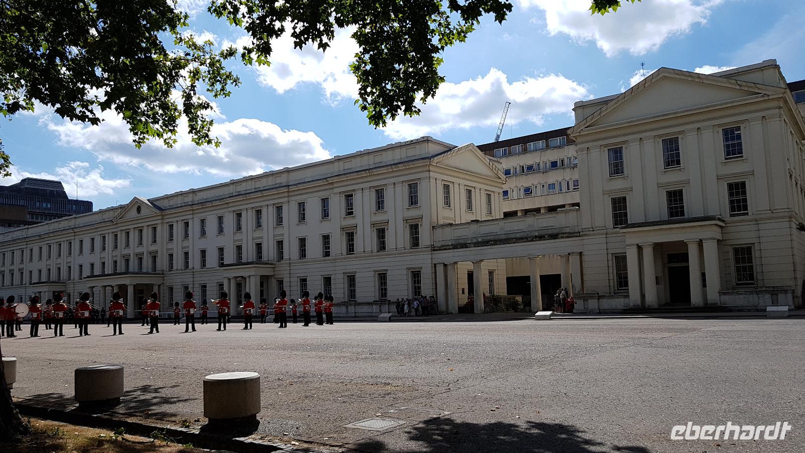 Mein Info-Treff am Morgen in der Hotel-Lobby wurde gut besucht und wir hatten Mühe, rechtzeitig zum Bus aufzubrechen. Der stand in der Tiefgarage des Tower Hill Coach Park und die wollten wir spätestens 9 Uhr verlassen.Das taten wir dann auch- aber- es fehlt jemand, also laufe ich nochmal zurück zum Hotel und hole einen verspäteten Gast ab. Nun aber ging es los, am Victoria Embankment steigen wir aus und spazierten gemeinsam an der Westminster Abbey vorbei, erfuhren, warum der Statue von Winston Churchill keine Taube etwas anhaben kann und kamen dann zur berühmten Downing Street. Gut gesichert 10 Downing Street, der Sitz von Theresy May, der Premierministerin Großbritanniens. Weiter ging es bis zum Trafalger Square und von dort über die Mall, die Prachtstraße, zum Buckingham Palace. Schließlich waren wir auf den Spuren der königlichen Residenz London. Es gab noch ein paar Tipps, wo man die Wachablösung gut sehen konnte und dann suchte sich jeder einen guten Platz dafür. Begeistert verfolgten wir, wie diese traditionelle Zeremonie moderner wird, die Kapelle spielte Themen aus Bond- Filmen, GoT und auch die Beatles waren mit von der Partie. Nach dem Wachwechsel holte uns Roy am Buckingham Palace ab und wir fuhren zum Westminster Pier. Von hier aus starteten wir unsere Bootsfahrt auf der Themse nach Greenwich. Heute morgen war ein Kreuzfahrtschiff, die Silverwind, eingetroffen, dafür war die Tower Bridge geöffnet worden. Dieses passierten war, es hatte an der HMS Belfast festgemacht. Vorbei am Tower und den neuen Wharf-Bebauungen erreichten wir schließlich Greenwich und stiegen hier aus. Der Teeklipper "Cutty Sark" empfing uns, einst der schnellste Teesegler der Welt. Von hier aus ging es zum Maritim Museum. Das konnte jeder individuell erkunden und am Königlichen Observatorium, dem Royal Observatory wartete ich dann bereits mit den Eintritts- Bändchen. Vorher hieß es aber, den Hügel hinauf zu erklimmen- dafür wurden wir mit einer grandiosen Ansicht der Skyline von London belohnt. Wieder erkundeten wir individuell dieses Museum, wer wollte auch mit Audio Guides und so erfuhren wir viel über die Geschichte und die ausgestellten Geräte hier. Natürlich durfte die Zeitkugel nicht fehlen und auch das obligatorische Foto vom Null-Meridian nicht. Dann genossen wir die restliche Zeit bei einem Spaziergang durch den Königlichen Park und trafen am Parkausgang auf Roy, der mit unserem Bus bereits wartete. Die Rückfahrt wurde dann eine Geduldsprobe, Feierabend-Verkehr und ein Problem auf der Tower Bridge ließen die Fahrt endlos erscheinen. Dafür konnten wir die recht ungewöhnlichen Auslegungen von Verkehrs-Regeln hier in London kennenlernen. Mit einem Ausblick auf morgen verabschiedeten wir uns voneinander und jeder konnte den Abend dort ausklingen lassen, wo es ihm oder ihr gefiel.