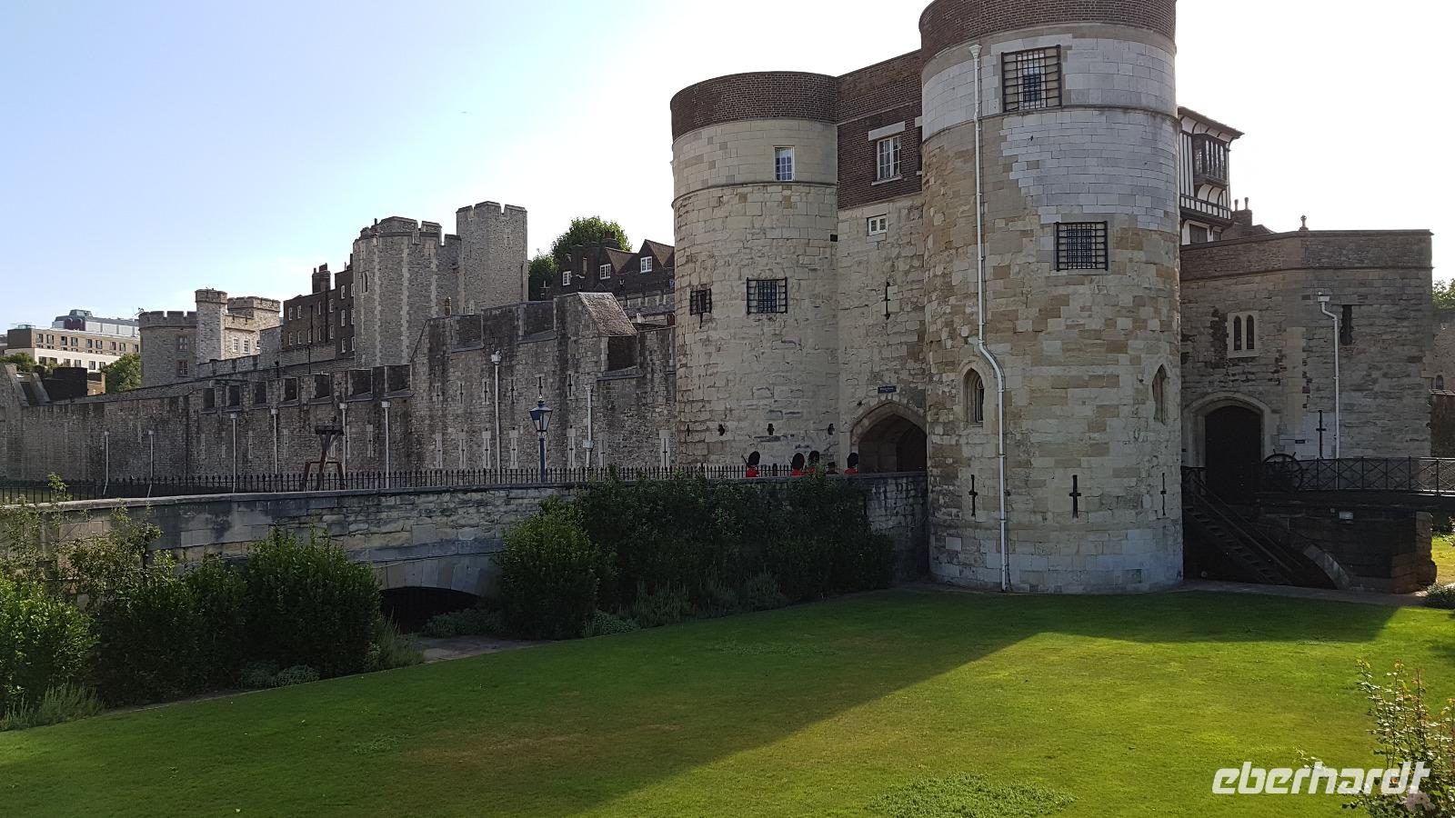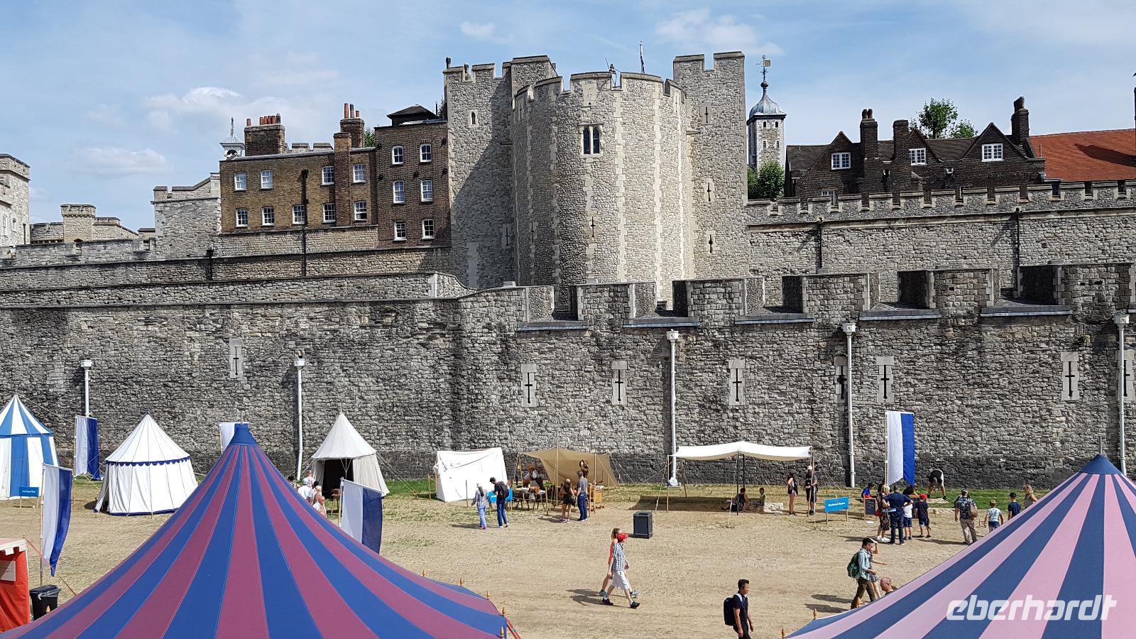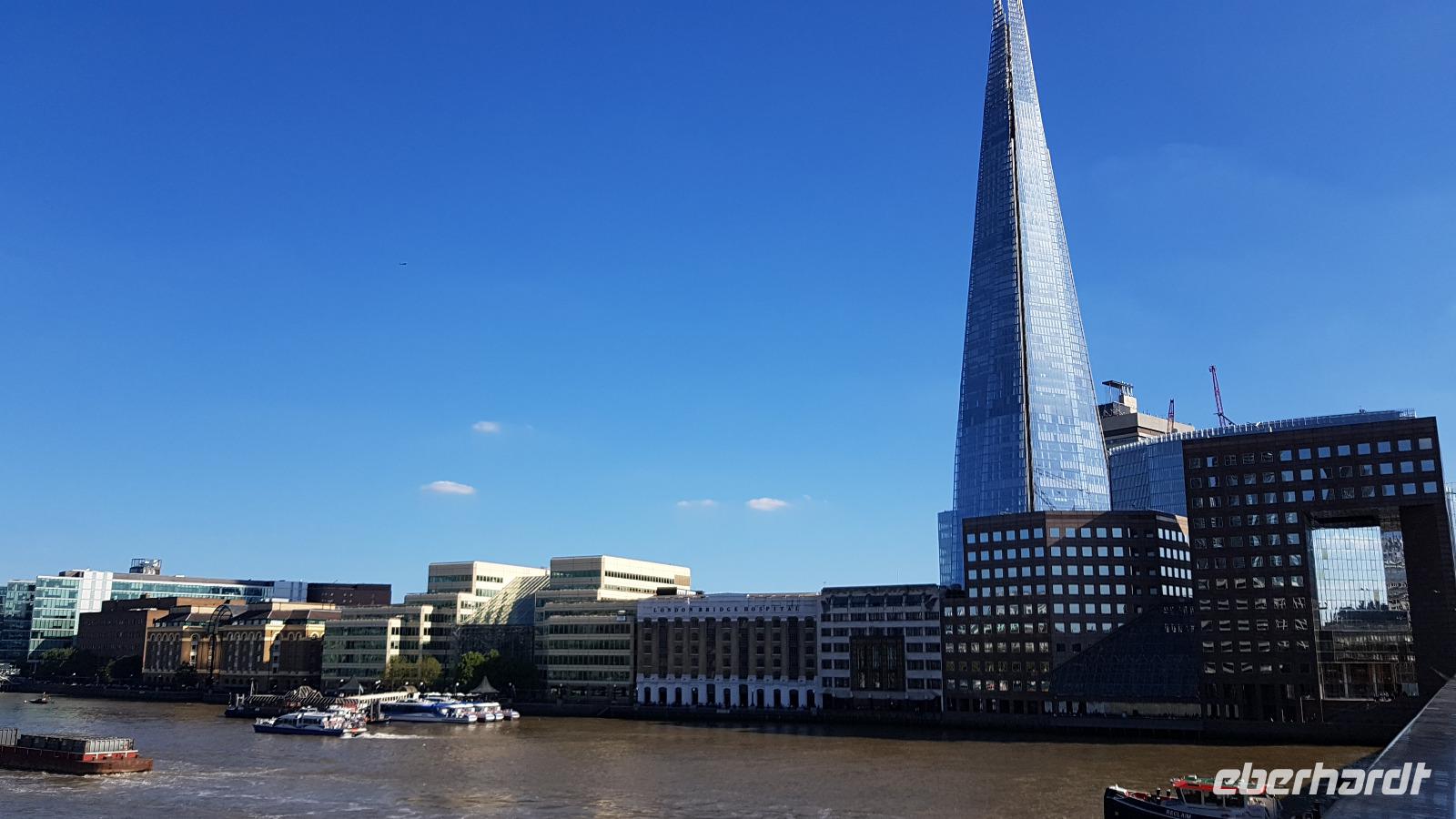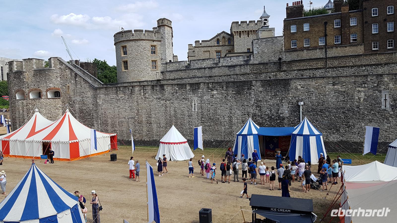 Heute fordert die gestrige Hitze Tribut, ich komme erst 20 Minuten später als geplant zur Gruppe, aber es geht wieder. Gemeinsam machen wir uns mit Monica auf, diese Metropole London besser kennenzulernen. Mit unserem Bus geht es zum Finanzdistrikt, zum Trafalger Square, dem Picadilly Circus, vorbei an Harrods und dem Ritz zum Denkmal für Prince Albert, den Mann von Königin Victoria. Dort machen wir eine kleine Pause und werfen auch einen Blick auf die Royal Albert Hall.Wir passieren das Naturkunde- und das Wissenschaftsmuseum, diese sind wie alle Museen Dank Albert kostenfrei für Besucher. Weiter geht es durch das Viertel der Botschaften bis zu White Hall und 10 Downing Street, dem Sitz der Premierministerin. Vorbei an den Horse-Guards fahren wir schließlich zurück Richtung Tower. Und dann stellen wir fest, dass es tatsächlich schon die letzte gemeinsame Busfahrt war. Nach Windsor fahren morgen nicht alle mit und übermorgen früh fliegen die Flug-Gäste bereits morgens zurück. Also singen wir heute bereits unser Abschieds-Lied: Auld Lang Syne. Schon sind wir am Tower angelangt-den wollen wir heute besuchen, also treffen wir uns am Eingang, jeder erhält Tickets und Übersichtspläne, dann hole ich noch Audio Guides für alle und los geht es. Jeder kann individuell erkunden, was ihn oder sie interessiert, die Kronjuwelen, die Rüstkammer, die Folterkammer, das Tower Green, die Kapelle,...Einige Gäste treffen sich am späten Nachmittag und spazieren zum Shard hinüber, gegen 17 Uhr können sie im 65. Stockwerk eine phantastische Aussicht genießen. Viele verfolgen auch gespannt, wie das Kreuzfahrtschiff London verläßt. Es hatte längsseits der HMS Belfast festgemacht. Schlepper ziehen es rückwärts die Themse hinaus und auch die Tower Bridge wird dafür wieder geöffnet. Was für ein Spektakel! Am Abend steht dann für einige ein Musical-Besuch an, andere lassen sich in der hoteleigenen Brasserie wieder mit einem guten Dinner verwöhnen, andere bummeln weiter durch die Stadt. Die untergehende Sonne taucht alles in goldenes Licht- eine tolle Stadt!