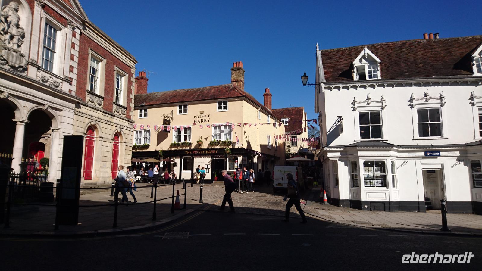 Heute war frei. Wer wollte, nutzte den Tag für ganz individuelle Erkundungen. Filmstudios, Wachsfiguren, Kriminalmuseen, Musicals oder Auffahrten auf hohe Bauwerke, das war nur eine kleine Auswahl der vielen Londoner Möglichkeiten. Ein großer teil unserer Gruppe fuhr mit Stefan und unserem englischen Bus nach Windsor zur Besichtigung des dortigen Castle. Am frühen Mittag trafen wir dort ein, erlebten nach einer Besichtigung des Bahnhofes Windsor u.a. mit der alten Schnellzuglokomotive des Regierungszuges von Queen Victoria die Wachablösung am Castle und besuchten dieses nach einer intensiven Sicherheitskontrolle mit Audioguides individuell. So konnten wir alle unsere Geschwindigkeit und die besuchten Räume und Bauwerke selbst festlegen. Am Nachmittag nach dem Durchbummeln des schönen kleinen Ortes Windsor und der Suche nach den lustigen Weibern von Shakespeare erwartete Stefan uns zu einem kleinen Spaziergang in die nahe College-Stadt Eton auf der anderen Seite der hier noch gar nicht an die Londoner Breite erinnernden Themse. Alte Fachwerkhäuser und gewaltige College- und Kirchbauten, ein interessanter Friedhof und schmale, begrünte Durchgänge erwarteten uns hier. Später kehrten wir nach Windsor und dort zum Coachpark zurück, bestiegen wieder unseren Bus und reihten uns mit diesem bald in den nachmittäglichen dichten Verkehr gen London ein. In der Stadt stiegen Einige von uns an unterschiedlichen Plätzen der Innenstadt aus, um den letzten Abend in der britischen Hauptstadt für individuelle Rundgänge und Erkundungen zu nutzen. Später packten wir dann schon unsere Koffer und schliefen noch ein paar Stunden dem frühen Abreisemorgen entgegen.