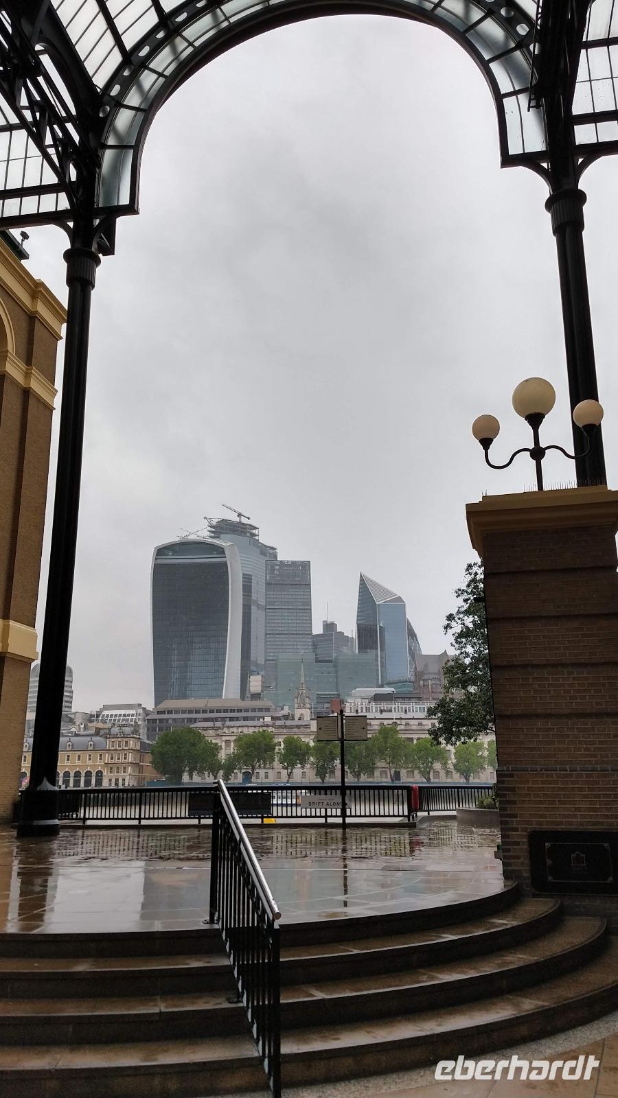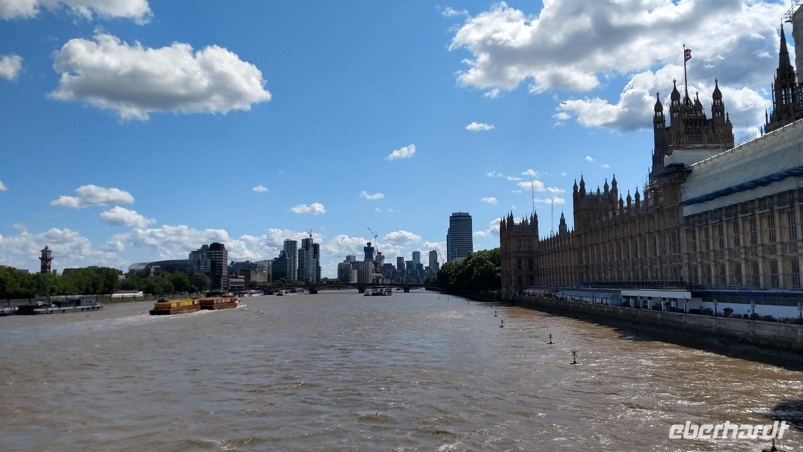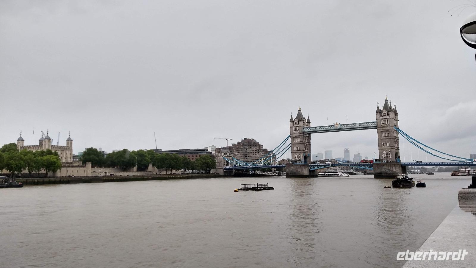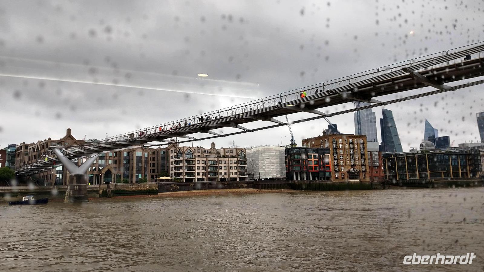 Der Morgen ist leider etwas regnerisch. Aber es ist angenehm warm an der Themse.