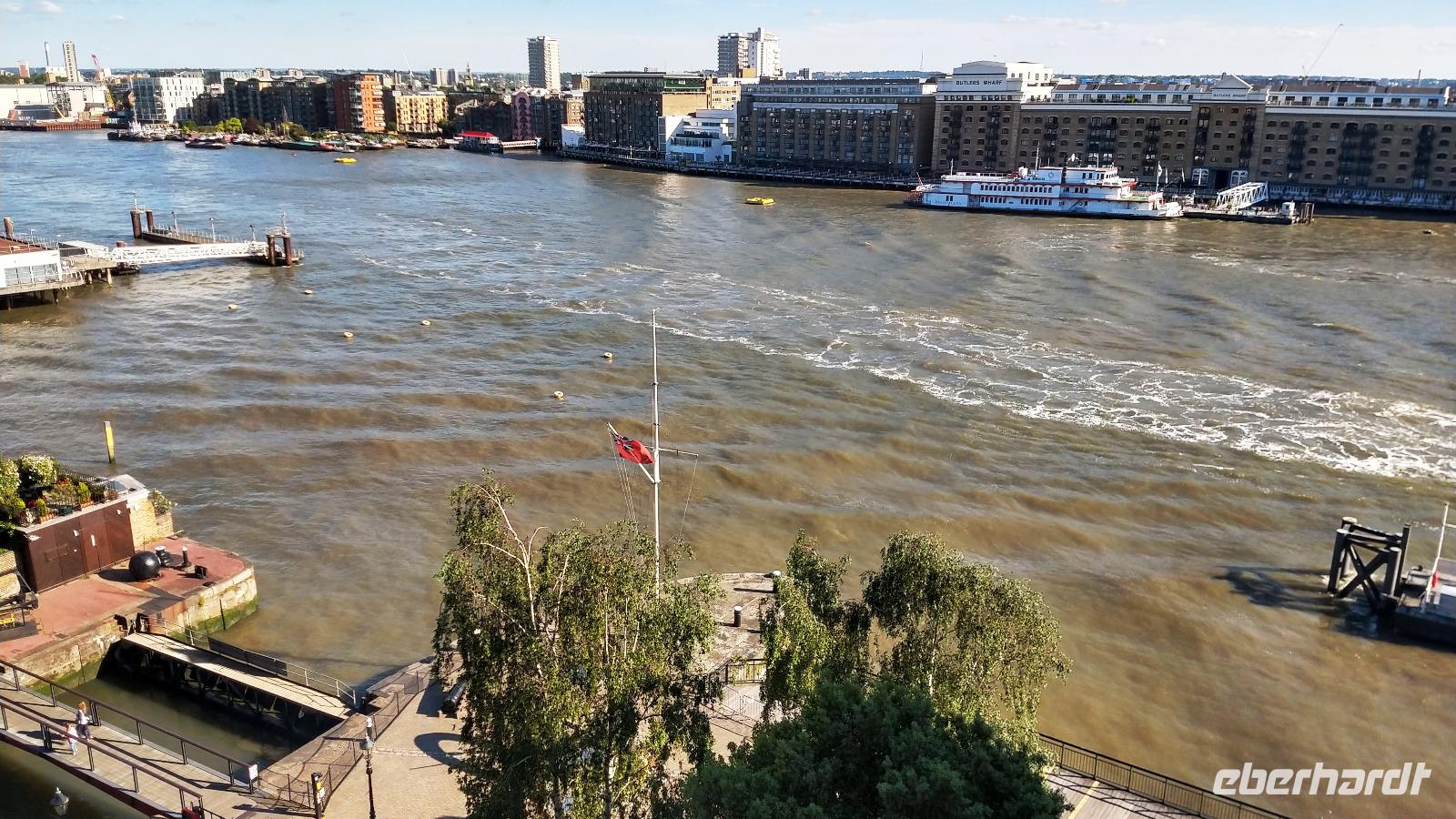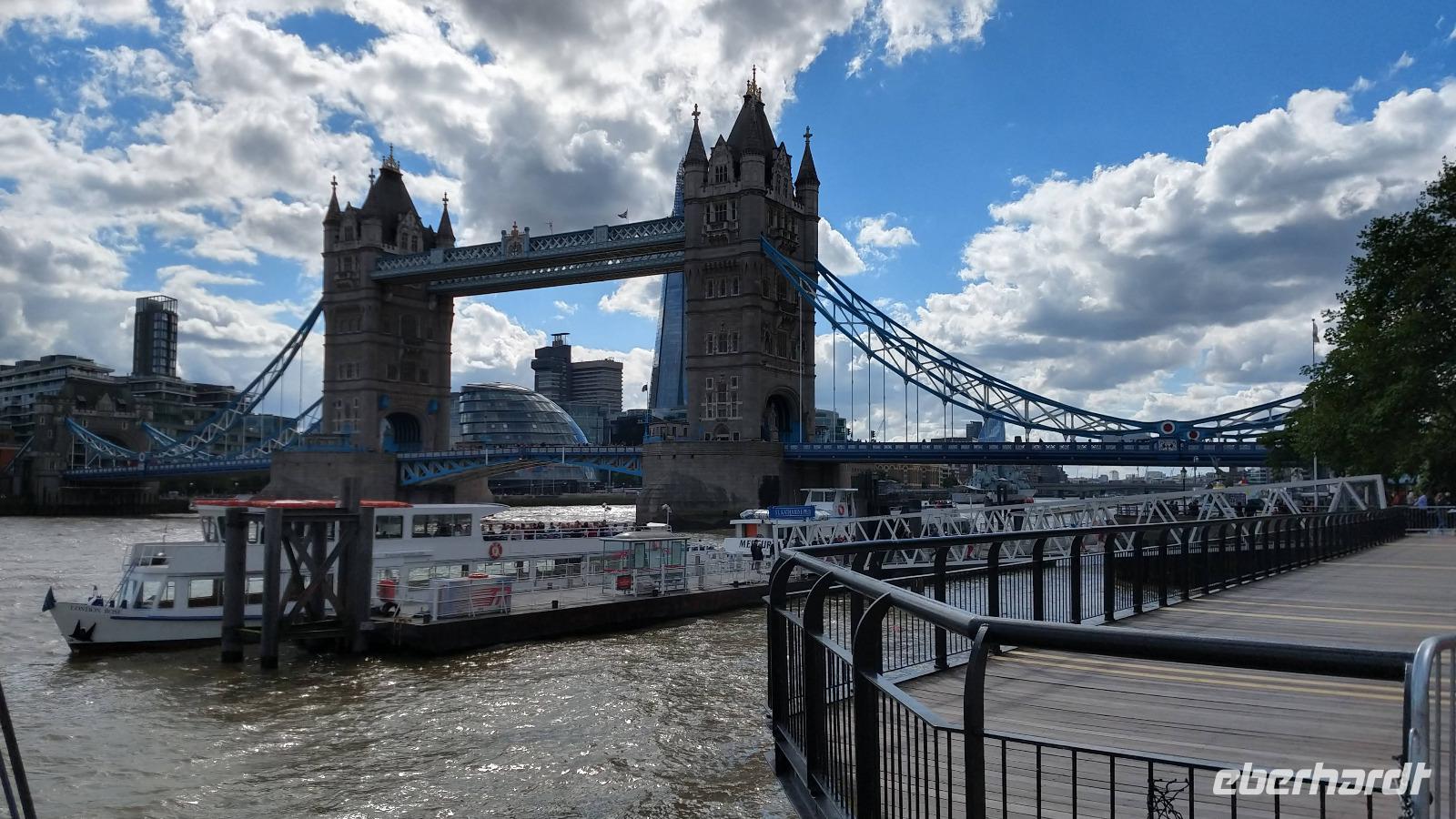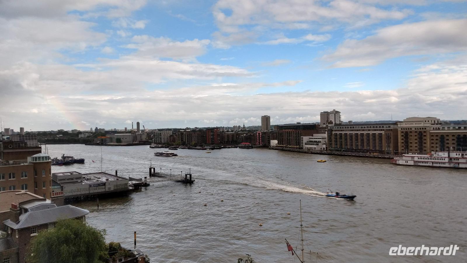 Der Morgen ist leider etwas regnerisch. Aber es ist angenehm warm an der Themse.