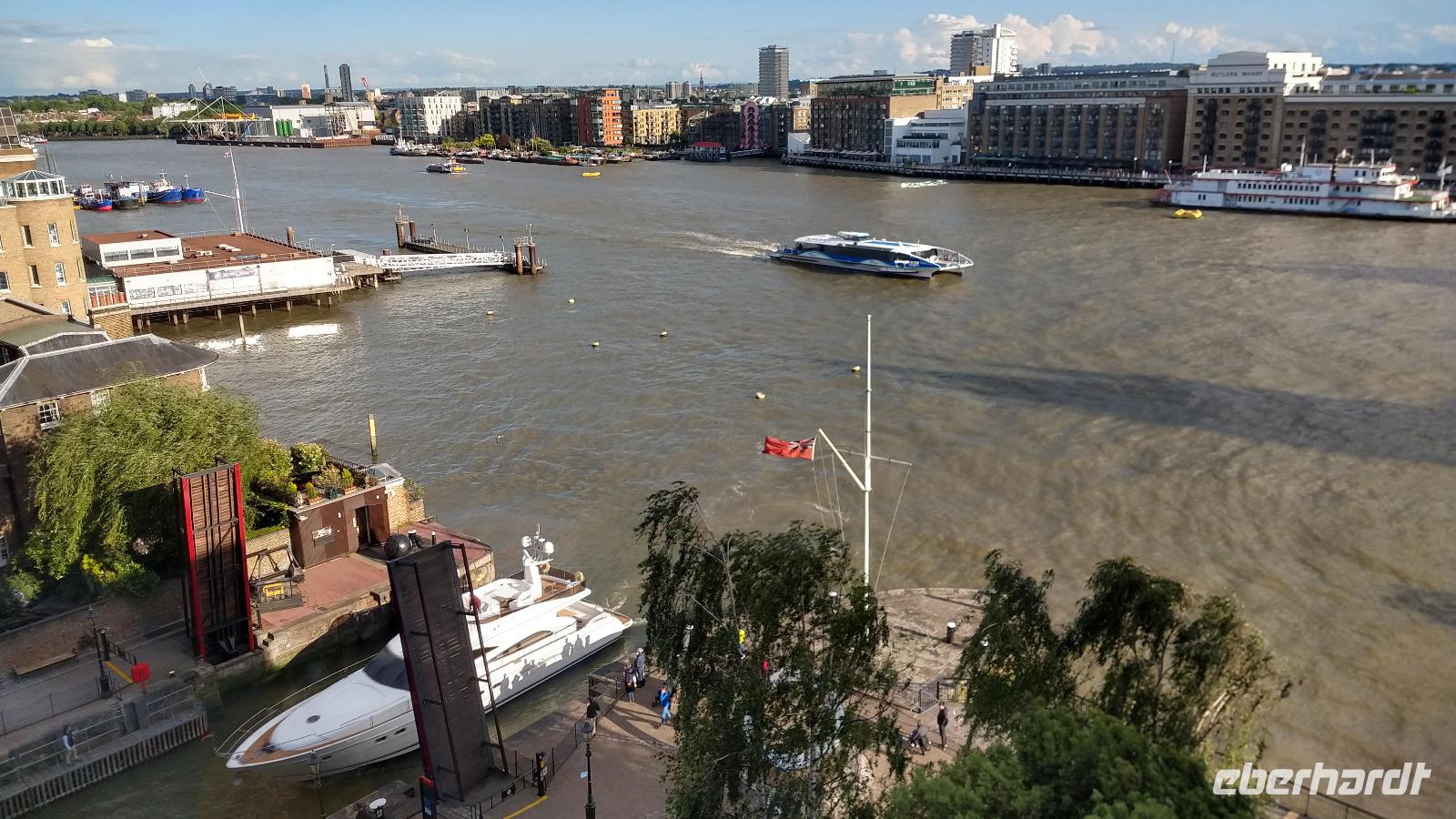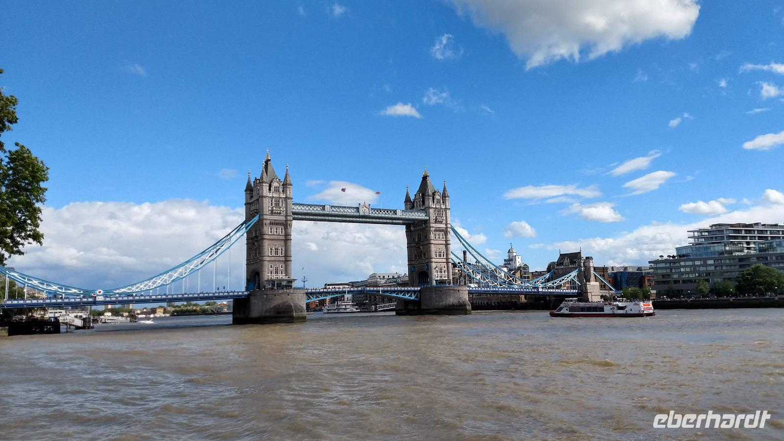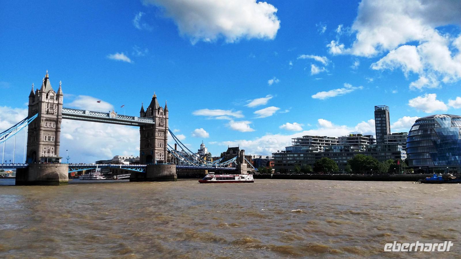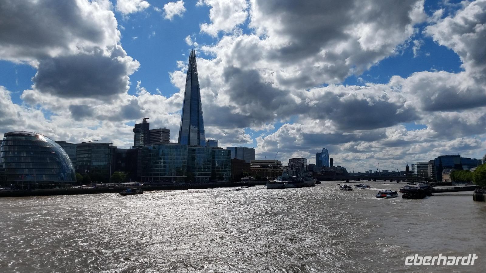 Der Morgen ist leider etwas regnerisch. Aber es ist angenehm warm an der Themse.