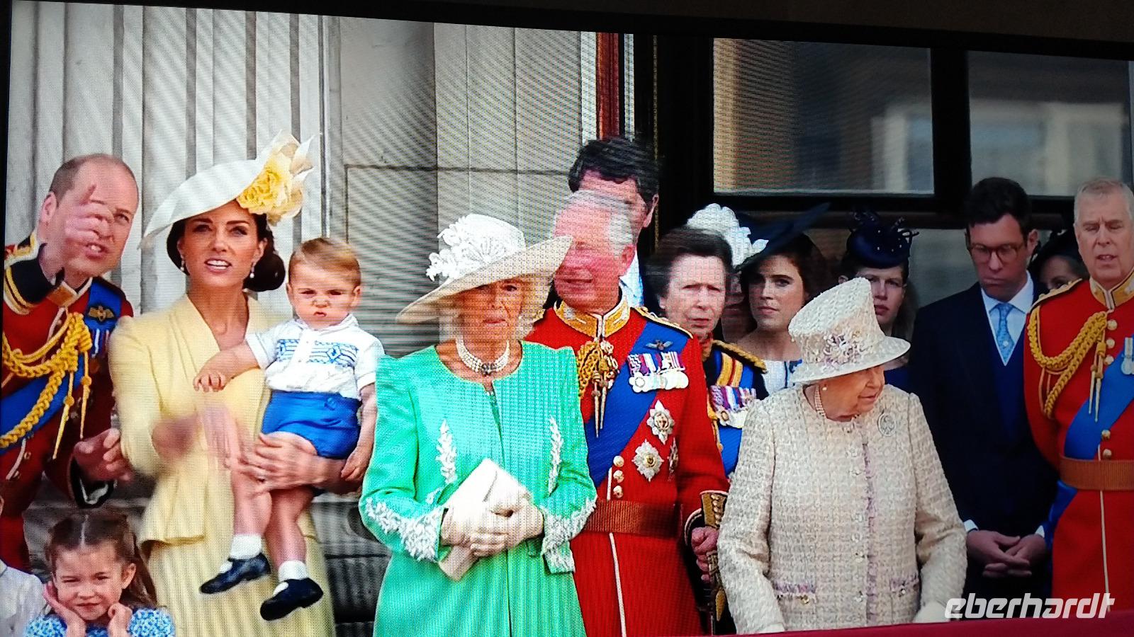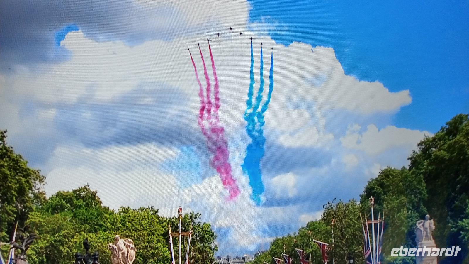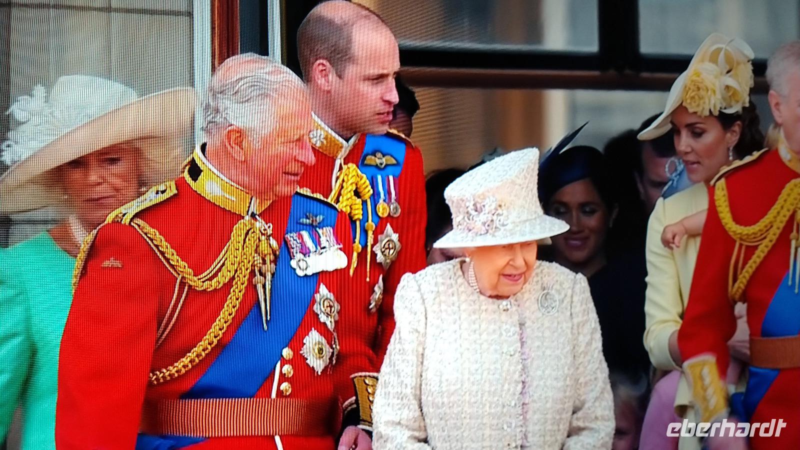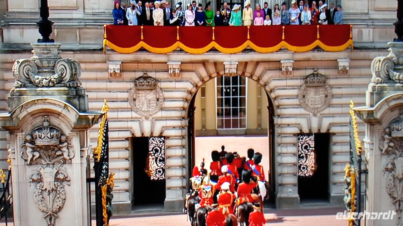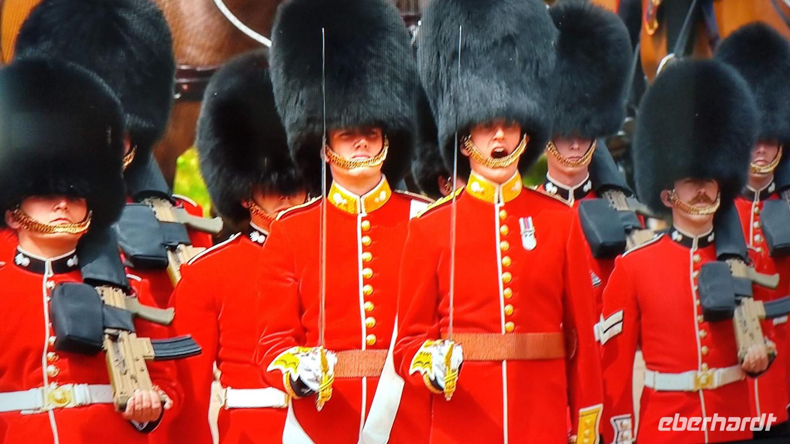 Wir suchen uns geeignete Plätze entlang der Mall für diese Show. Und schon kommen die ersten Regimenter, die Kutschen mit der königlichen Familie und schließlich Queen Elizabeth II. Dann heißt es warten, während des Appells.