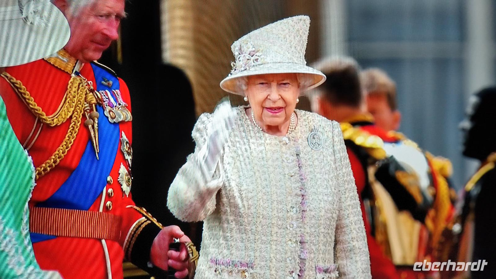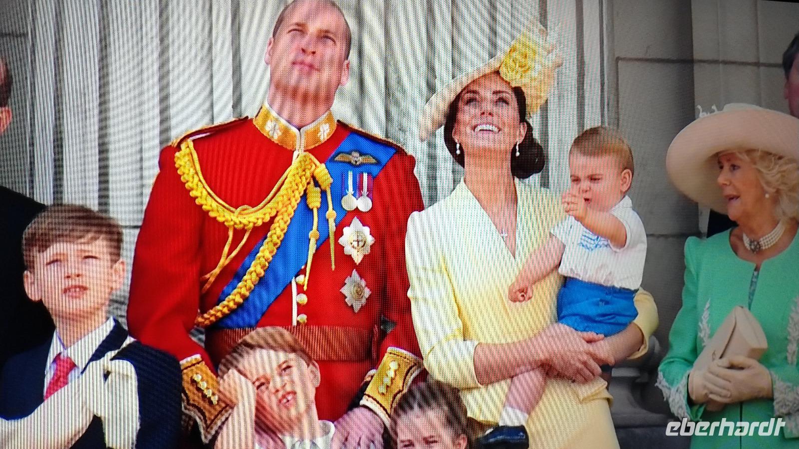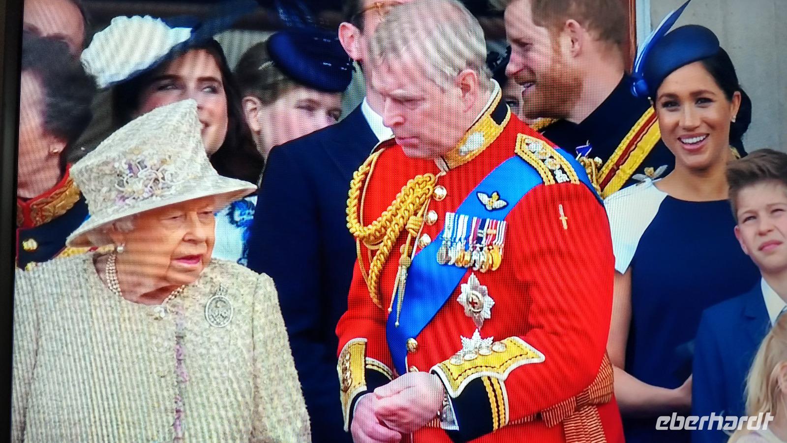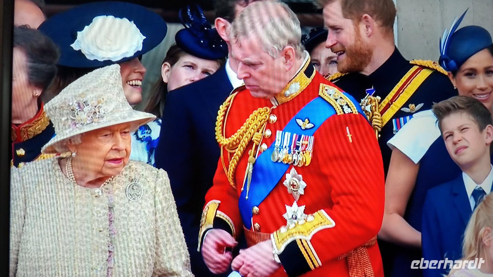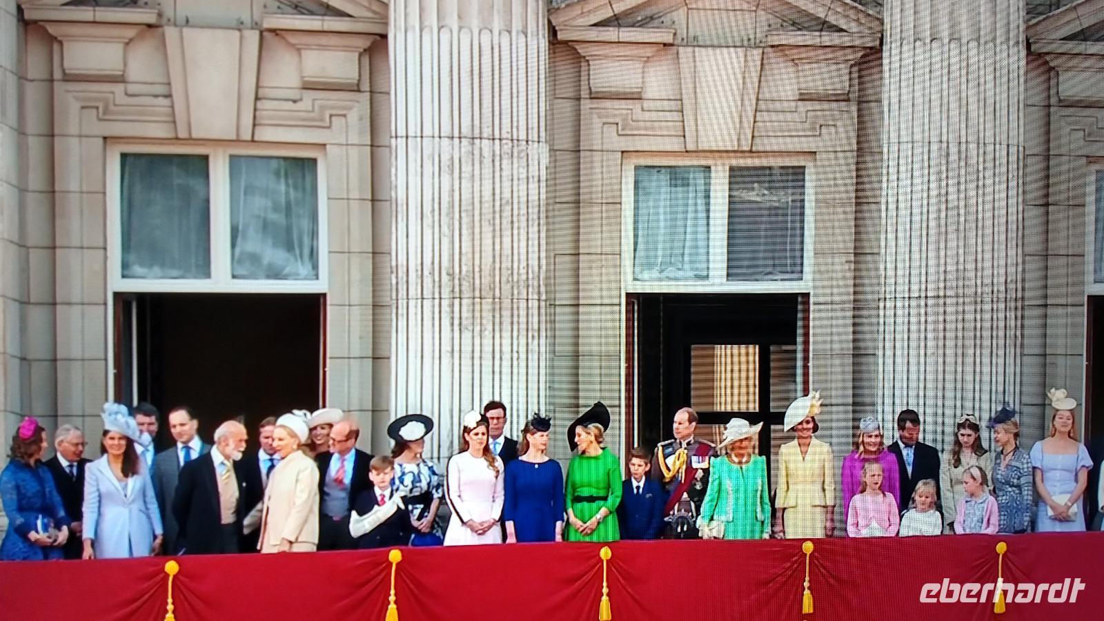 Wir suchen uns geeignete Plätze entlang der Mall für diese Show. Und schon kommen die ersten Regimenter, die Kutschen mit der königlichen Familie und schließlich Queen Elizabeth II. Dann heißt es warten, während des Appells.