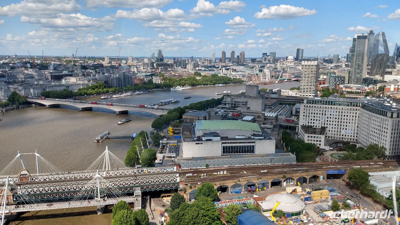Dann spazieren wir über die Westminsterbrücke zurück, mit schönen Ausblicken hinunter auf die Themse und zum London Eye, unserem nächsten Ziel. Ein Gast besucht das Historien-Spektakel London-Dungeon.