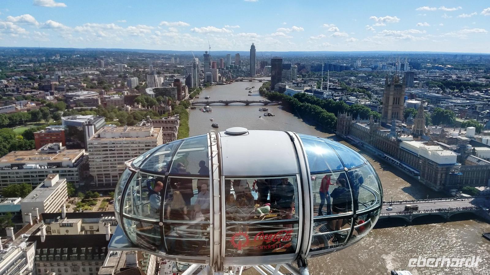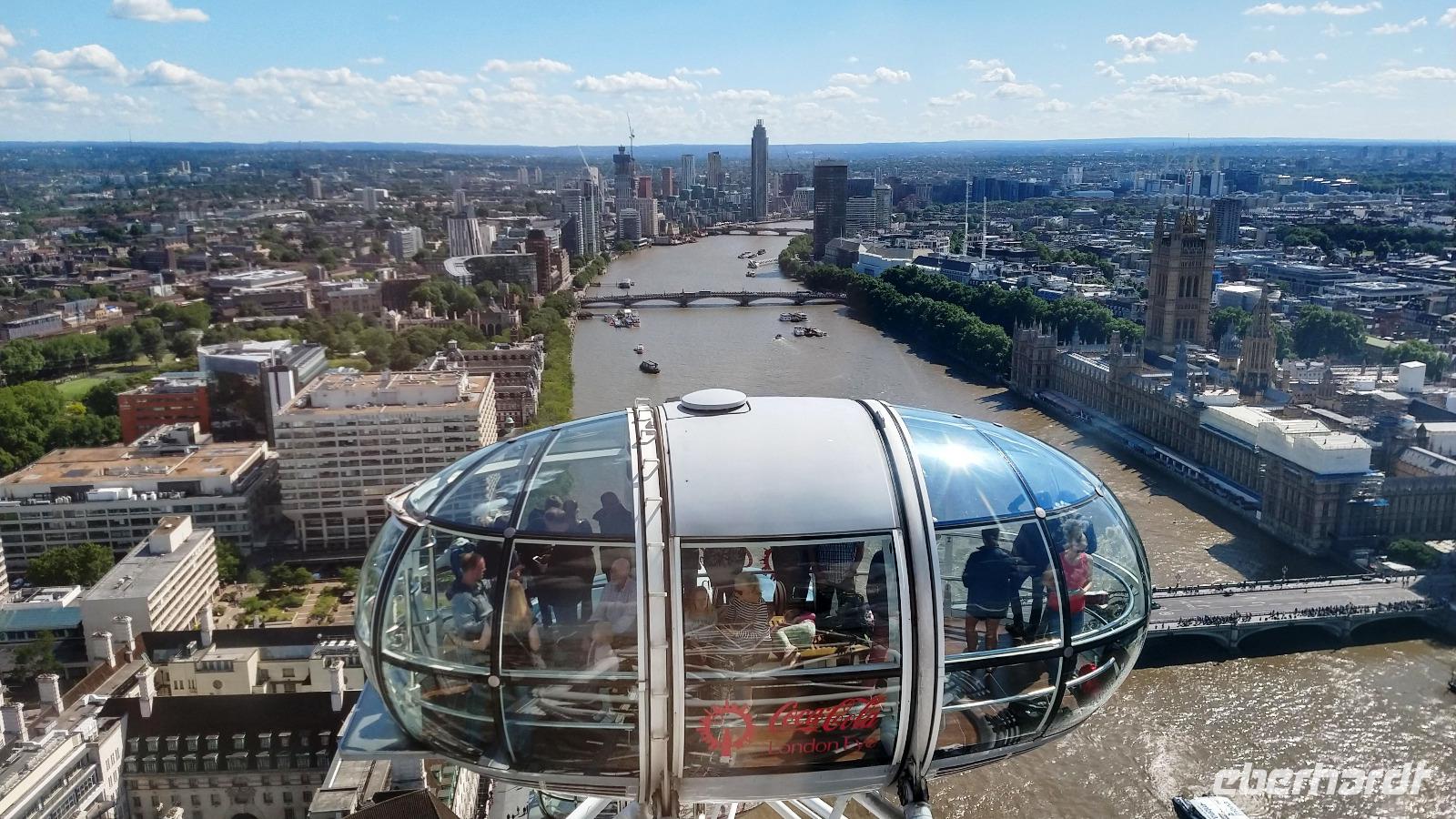 Wir haben e-Tickets und so brauchen wir gar nicht lange anstehen, bis es in die Aussichtsgondel geht. Das Wetter ist jetzt sehr klar uns sonnig und so ist die halbstündige Fahrt für alle ein tolles Erlebnis.