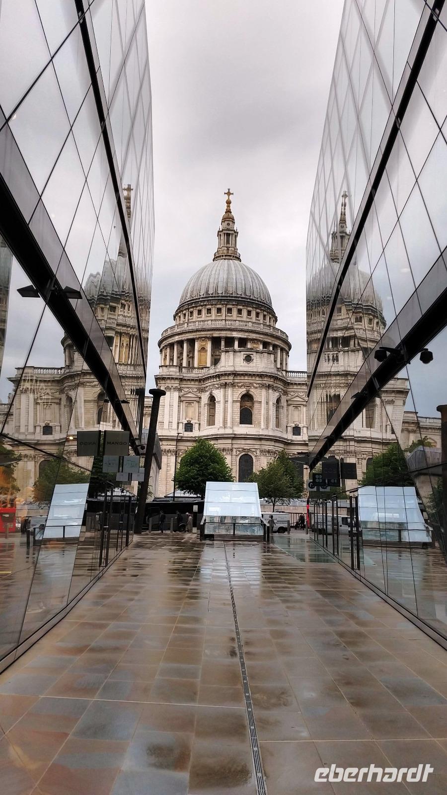 Theresa Hunt, unsere Stadtführerin, holt uns im Hotel ab und wir steigen am Tower Hotel mit ihr gemeinsam in unseren Reisebus. Wir starten zur Stadtrundfahrt durch London - mit erstem Halt nahe der St. Pauls Cathedral und einem Spaziergang auf die Aussichtsplattform des gegenüberliegenden Einkaufscenters. Weiter geht die schöne Rundfahrt zum Trafalgar Square, nach Westminster, Vauxhall, Chelsea, Kensington mit den Museen, der Royal Albert Hall und dem Royal Albert Memorial, nach Knightsbridge mit den Kaufhäusern, nach Picadilly und vorbei an Soho, zum Greenpark mit dem Hard Rock Cafe gegenüber, zu Hydepark Corner, zum Buckingham Palast und wieder nach Westminster, wo wir an der Westminster Abbey aussteigen. Im Bistro der Westminster Central Hall finden wir vor dem Regen Schutz und können uns etwas stärken. Dann bringt uns Theresa noch bis zur Westminster Station und hinüber zum Pier, wo wir uns herzlich von ihr verabschieden.