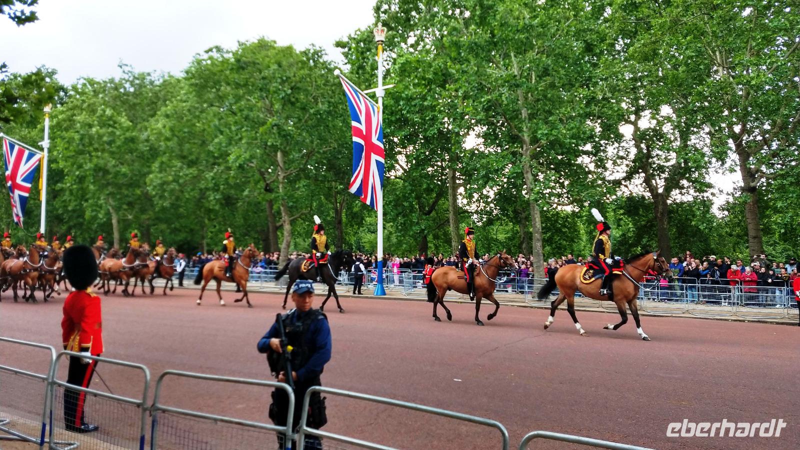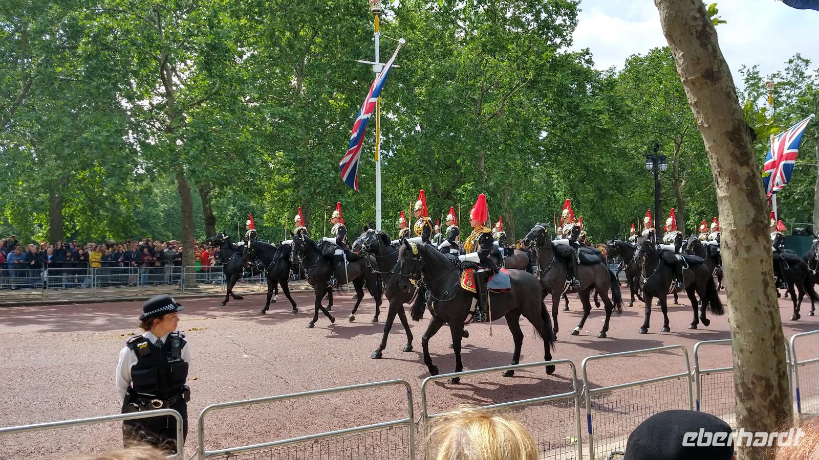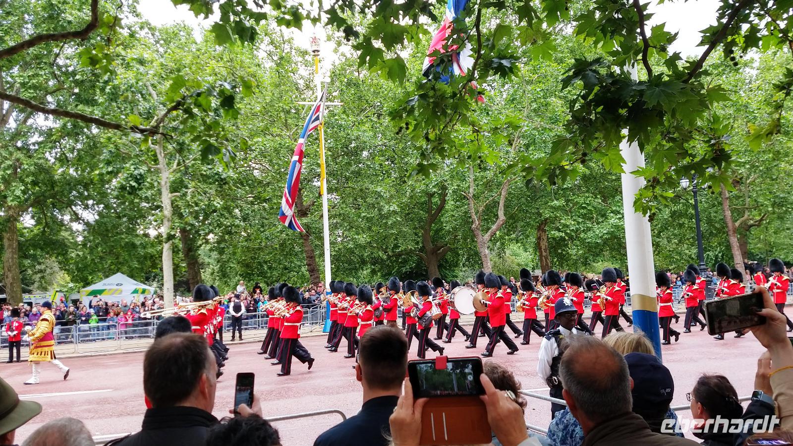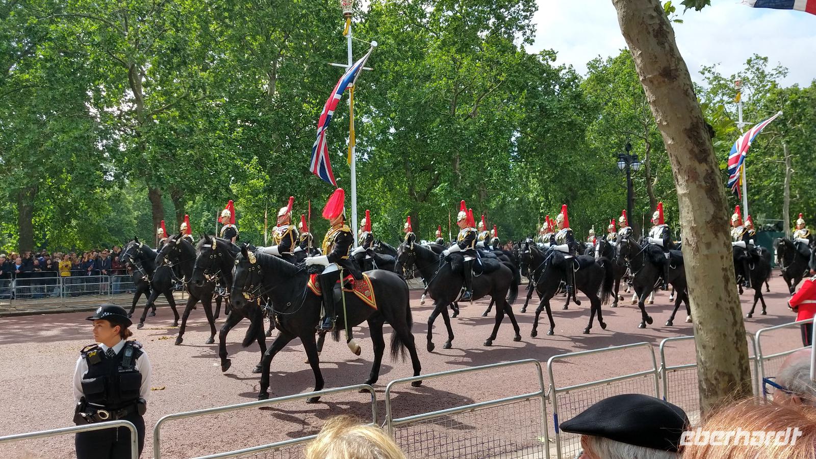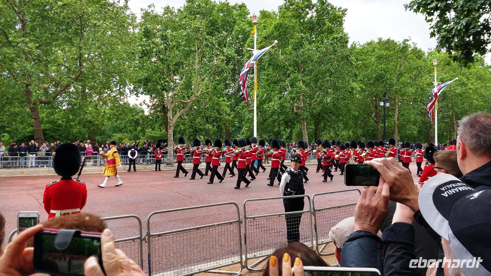 Etwas verspätet beginnt dann der Vorbeimarsch Richtung Buckingham Palace.