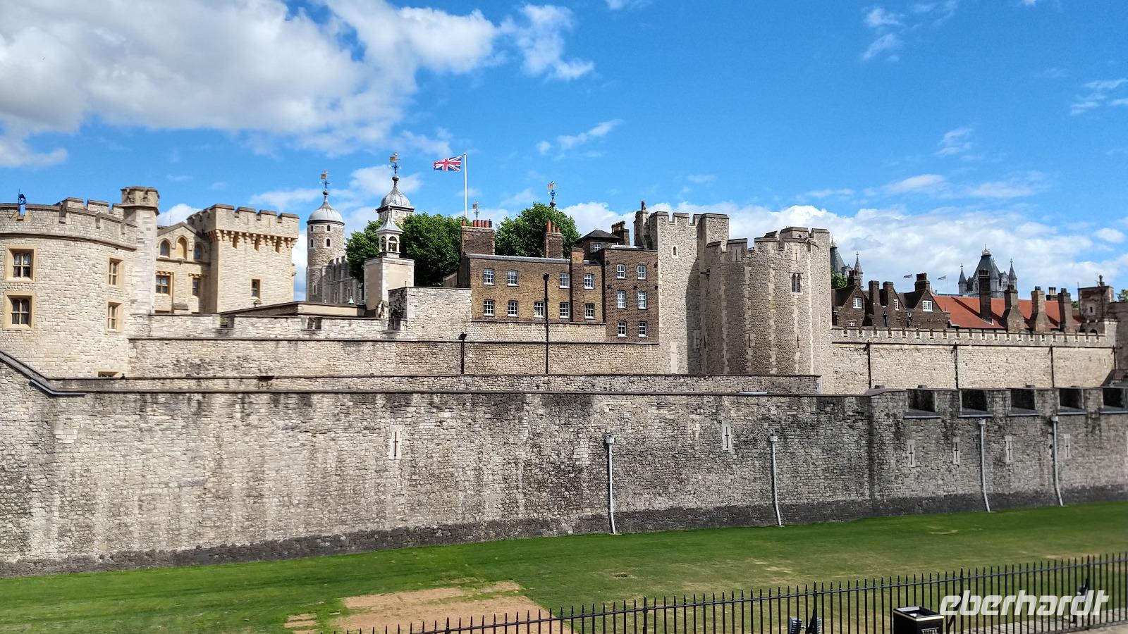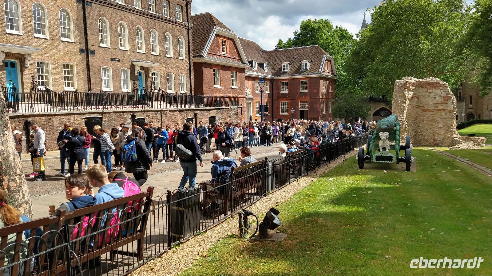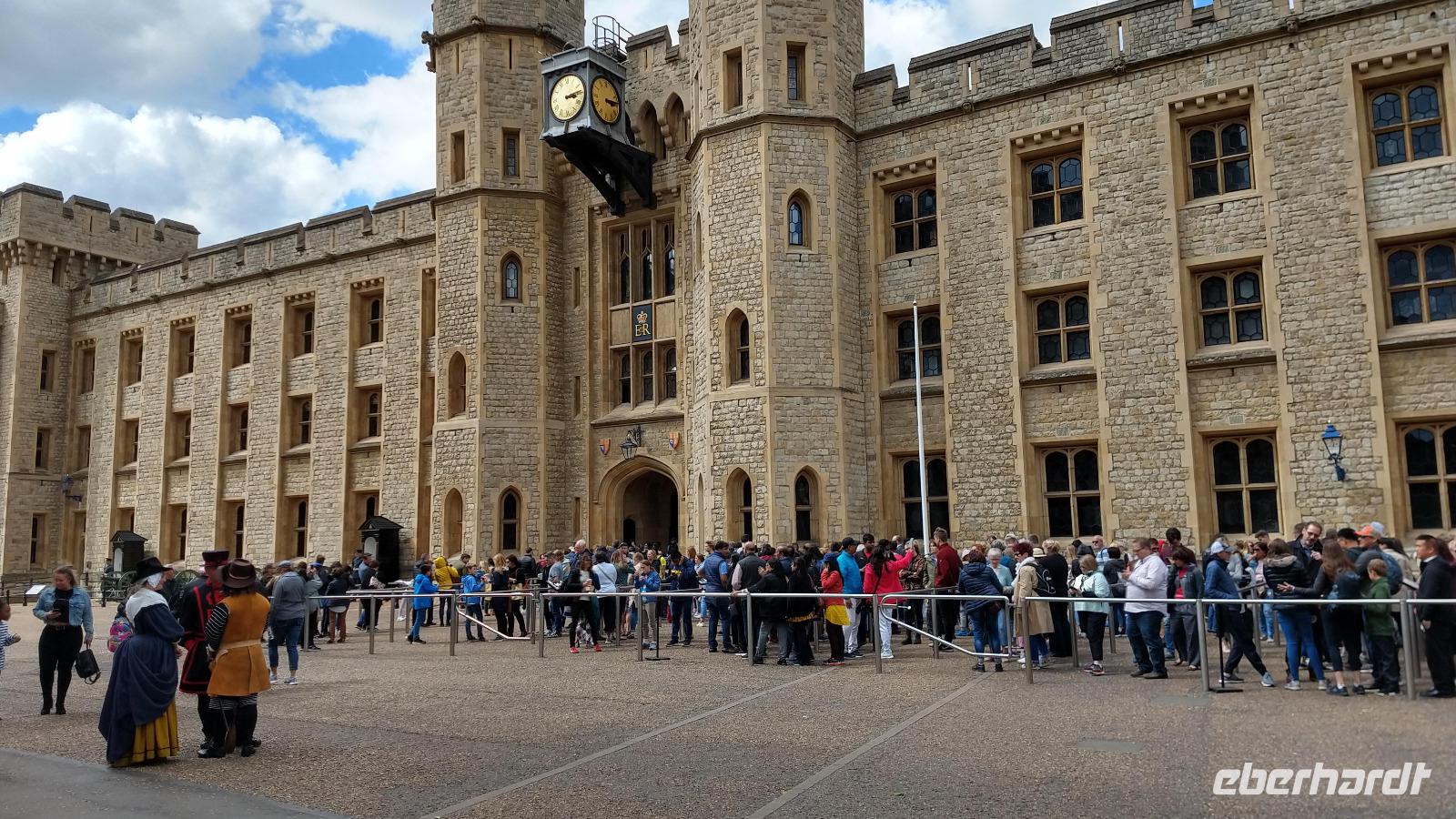 Im Laufe der Geschichte war der Tower Königsburg, Festung, Gefängnis, Hinrichtungsstätte, Münze, Staatsarchiv, Waffenarsenal und Observatorium. Einen Höhepunkt bilden ohne Zweifel die ausgestellten Britischen Kronjuwelen, aber die Anzahl der Touristen zu Pfingsten ist enorm und so muss angestanden werden.