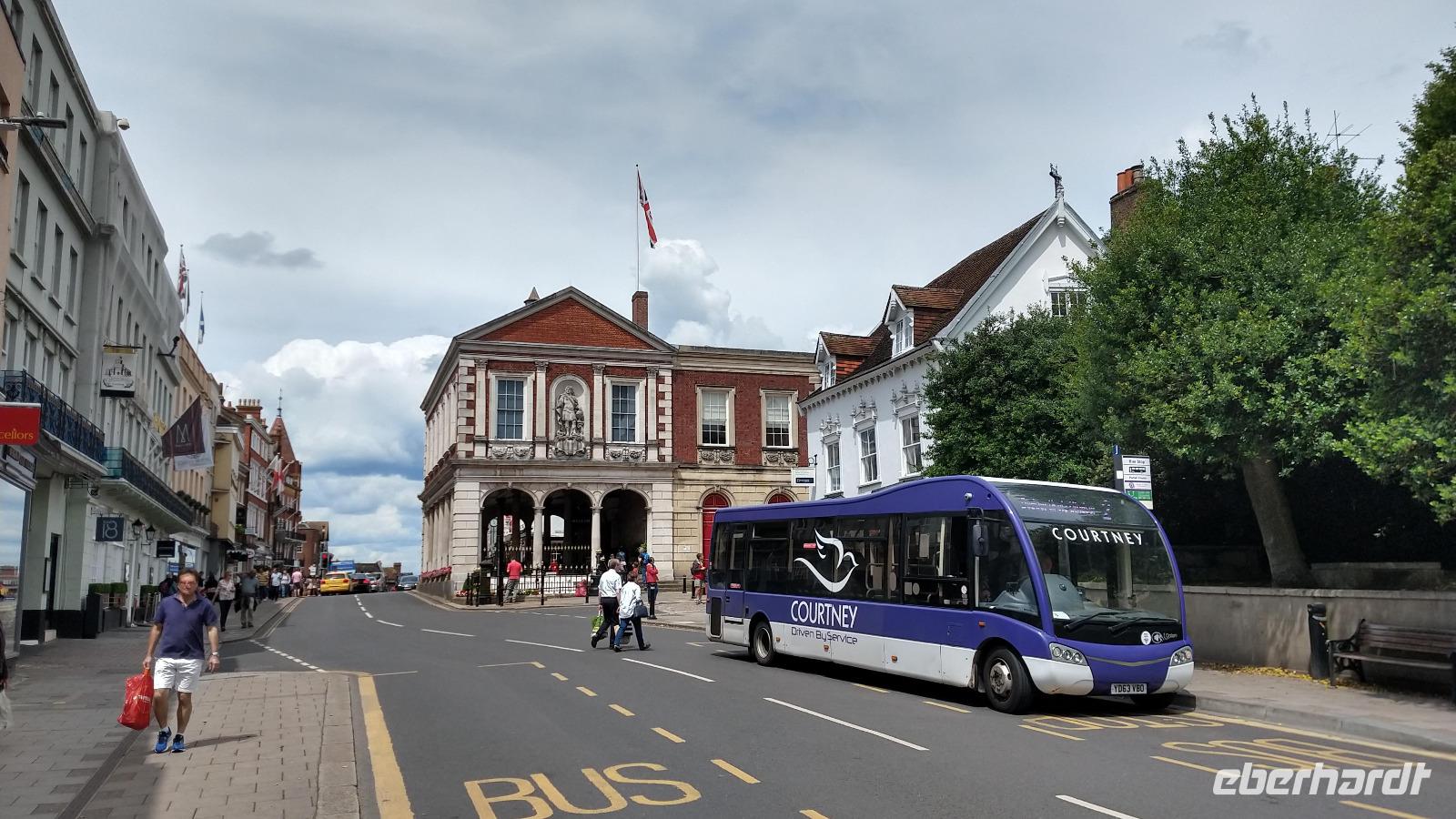 Unser kleiner Reisebus bringt uns heute zügig westwärts aus London heraus und über die Motorway M4 erreichen wir den Ort Windsor, schön an der Themse gelegen.