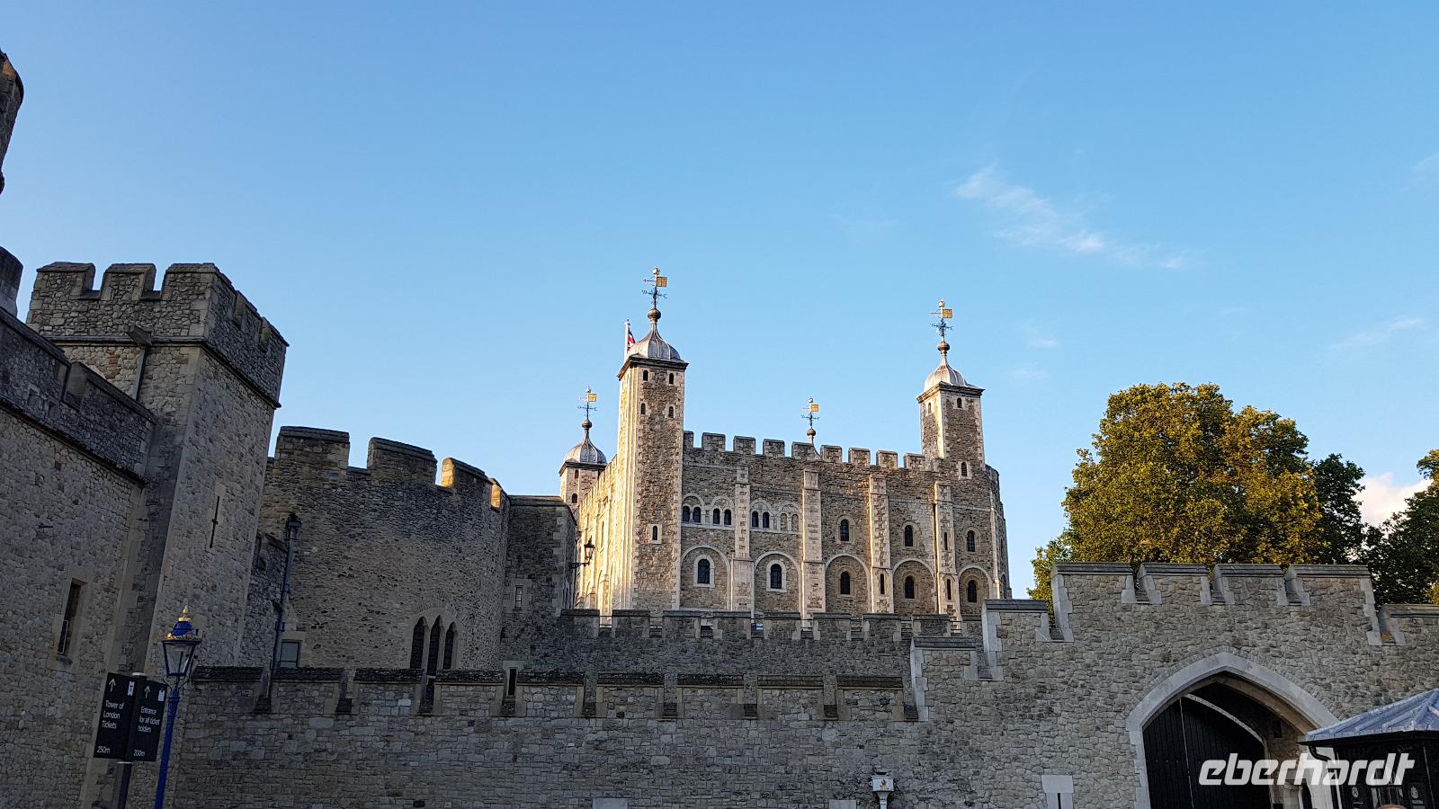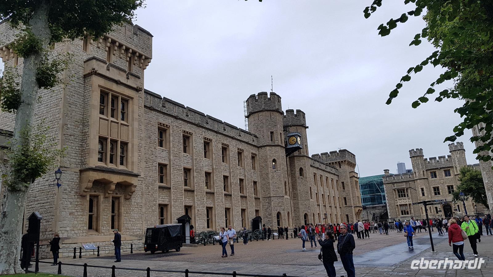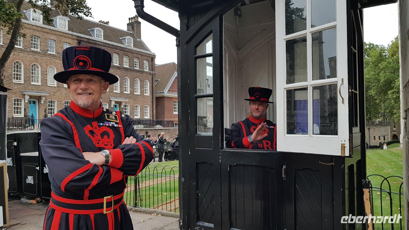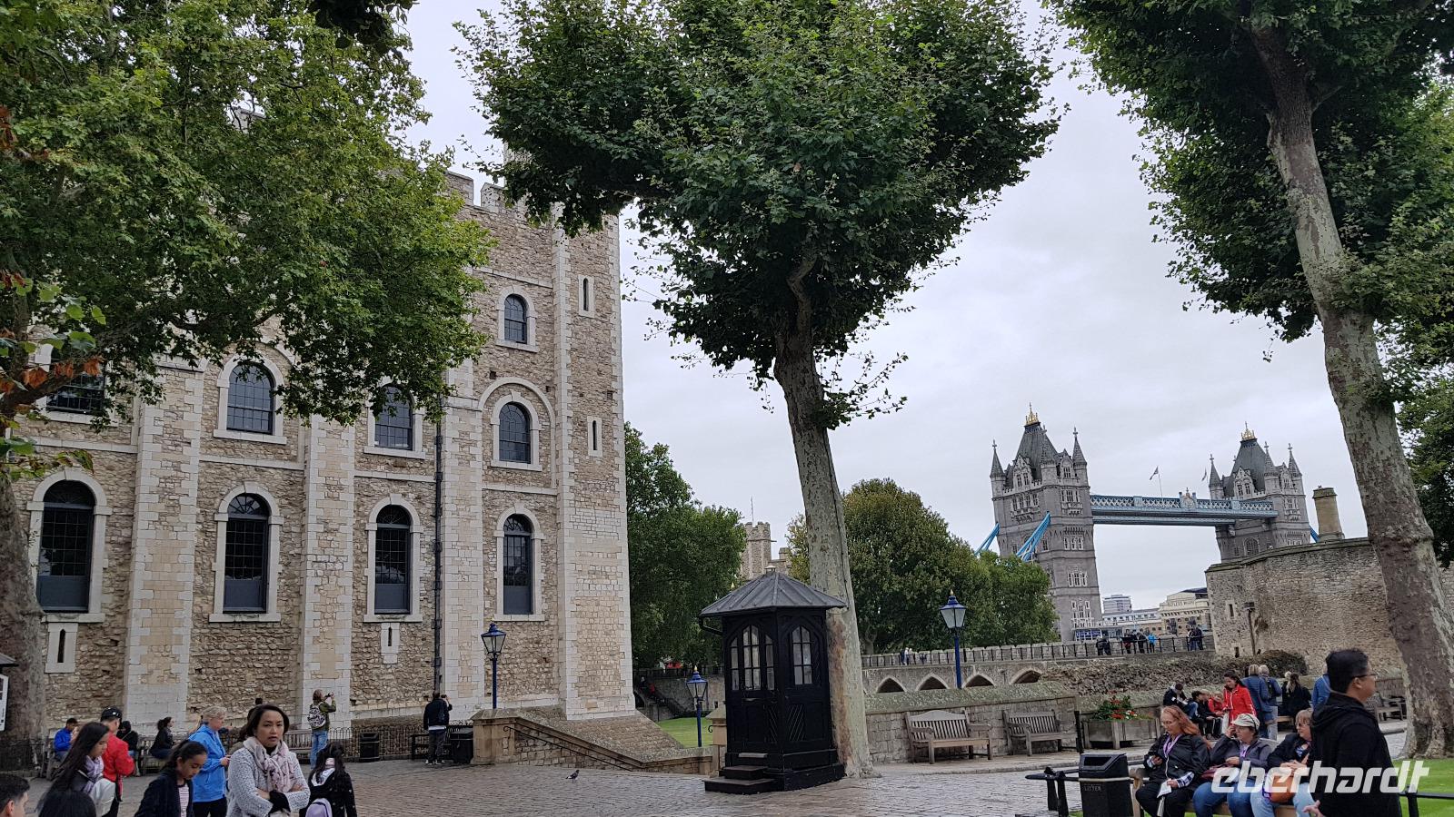 Er geht zurück auf William den Eroberer, er ließ den heutigen White Tower erbauen, um das eroberte Land zu kontrollieren. Um 1100 wurde die Burg fertiggestellt und dann erfolgte eine Erweiterung nach der anderen. Die Ringmauern kamen später dazu und sind heute um die 700 Jahre alt. Im Laufe einer Geschichte war der Tower of London vieles: Königspalast, Gefängnis, Hinrichtungsstätte, Münzprägestätte, sogar ein Zoo war einmal hier untergebracht. Den Elefant hatte Ludwig der XIV. von Frankreich dem englischen König geschenkt. Die Wachen des Tower, die sogenannten Yeoman Warders wurden früher auch Beefeater genannt- vermutlich, weil sie Fleisch für ihren harten Dienst bekamen, das konnte sich die normale Bevölkerung nicht leisten. Heute führen sie die Besucher durch den Tower und leben auch mit ihren Familien im Tower. Ein Abstecher zu den Kronjuwelen durfte natürlich nicht fehlen, ebenso wie der Besuch der Kapelle, der Zellen oder ein Rundgang auf den Mauern. Einige Gäste hatten danach noch einen besonderen Termin: sie hatten einen Ausblick vom