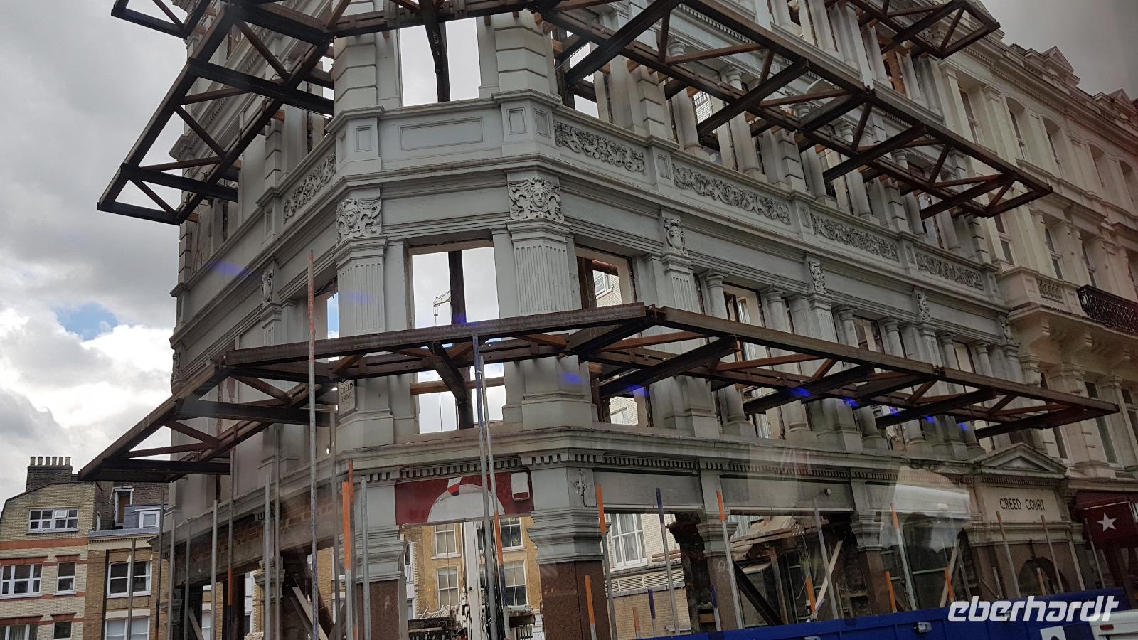 Ganz zeitig starteten wir von Dresden, Frankfurt und Berlin aus in die britische Hauptstadt. Ein klein weng Verspätung führte dazu, dass wir über London kreisen mußten, bevor wir landen konnten, da bekamen wir zwischen den Wolken schon einmal einen kleinen Vorgeschmack auf die Stadt, die uns erwartete. Und mit Verzögerungen ging es weiter. Es wird immer irgendwo gebaut, die ohnehin schon engen Straßen werden zu Nadelöhren und wir brauchen lange für die Fahrt zum Hotel. Endlich angekommen treffen wir uns mit den Berliner Fluggästen, die uns schon ungeduldig erwarteten. Also rasch Zimmer beziehen und dann geht es zu einem ersten Erkundungsgang los. Unser Hotel ist das