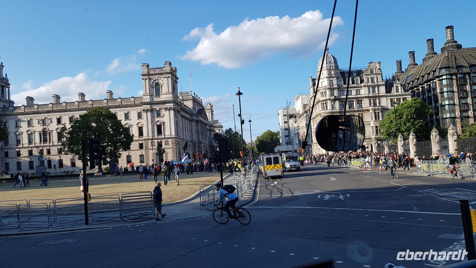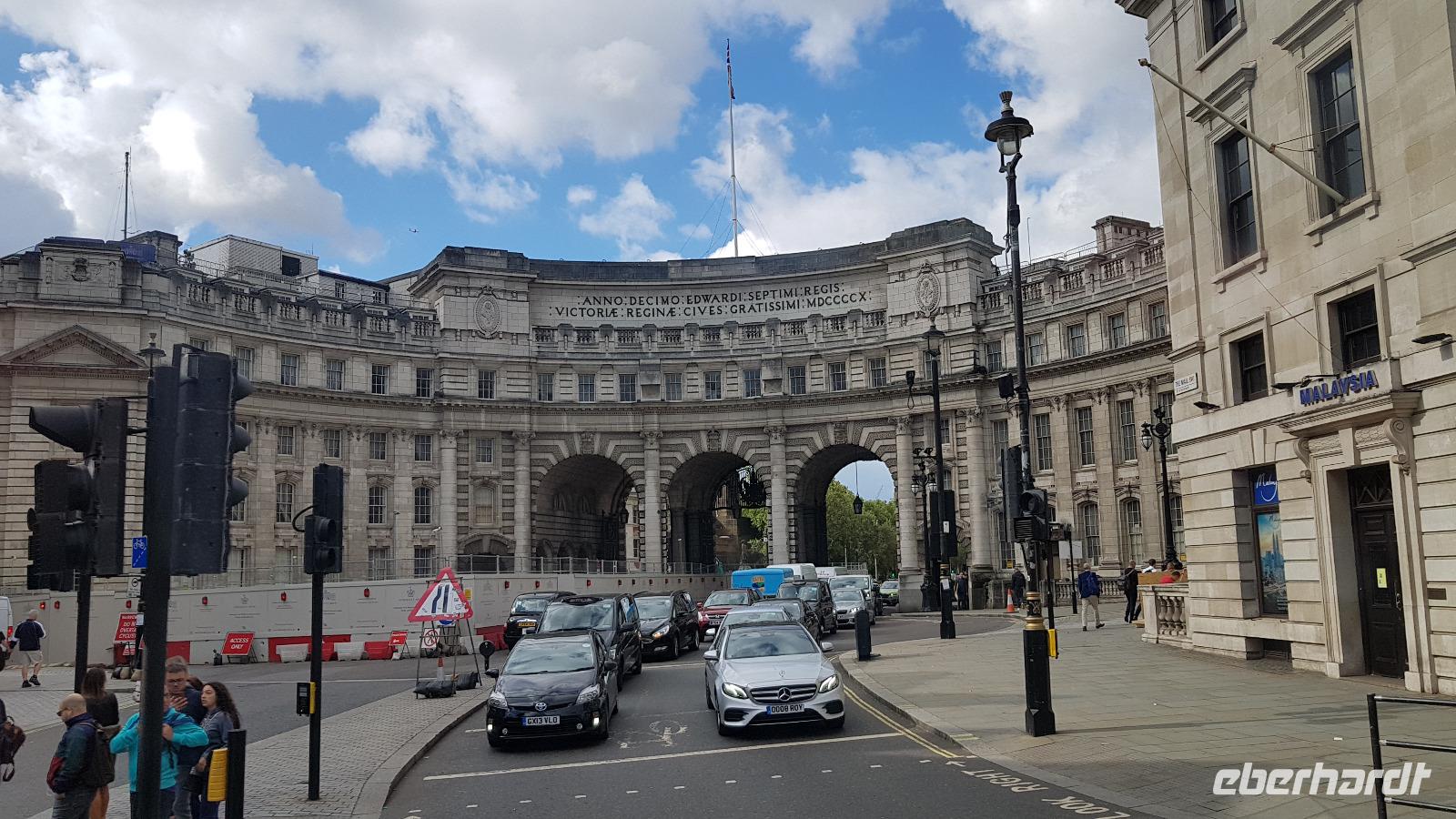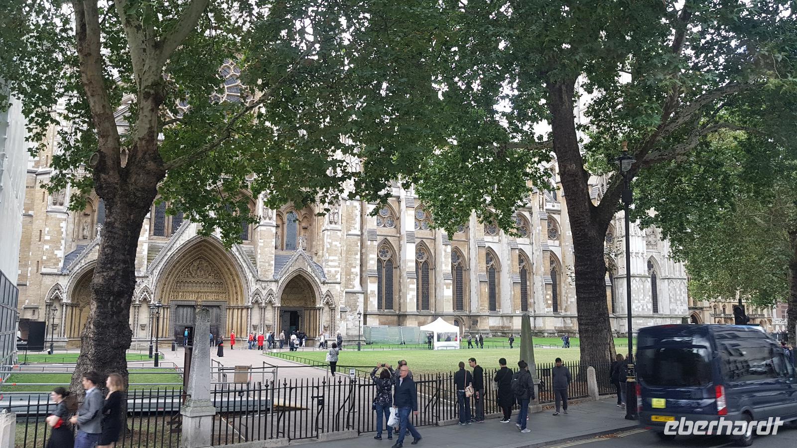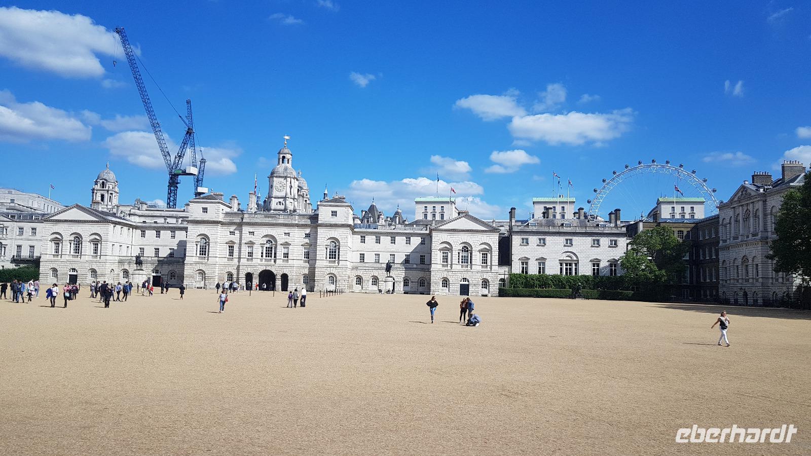dann ein kleiner Stopp bevor es in der City of Westminster weitergeht. Das Sommerset House aus dem 18. Jahrhundert wurde eigentlich als Bürohaus für die Regierung gebaut, heute ist es vielbeachtete Filmkulisse, Ausstellungsstätte und im Winter ist im Innenhof eine Eisbahn. Natürlich fahren wir zum Trafalger Square, der Mitte Londons, von hier werden alle Entfernungen zu anderen Orten gemessen. Die riesige Säule zu Ehren Admiral Nelsons erinnert an die Seeschlacht von Trafalger 1805, bei der er tödlich getroffen wurde. Ein kurzer Schwenk führt uns zum Picadilly Circus bevor es zurückgeht zu den Horse Guards, Downing Street und dem Parliament Square. Wir passieren Westminster Abbey, in der von 1056 bis 1953 insgesamt 38 Krönungen stattgefunden haben. Und zum Sitz der Königin, dem