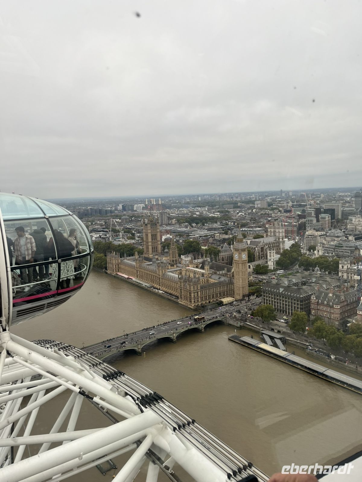 Zum Abschluss des Tages fuhren wir zum London Eye. Während sich das Riesenrad langsam drehte, genossen wir den Blick über die Stadt – von der Themse bis zu den Hochhäusern der City.