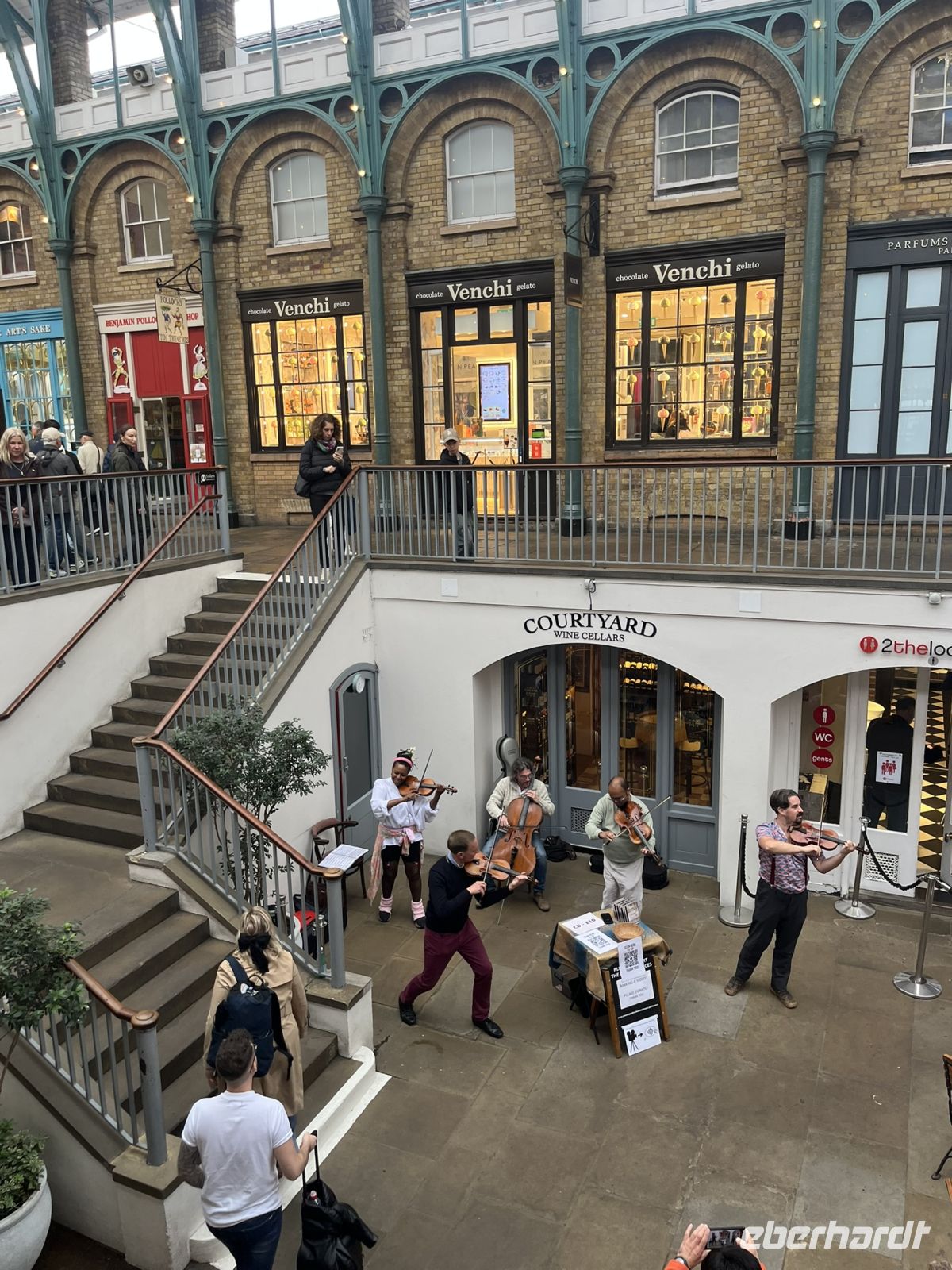 An der Westminster Abbey endete die Busfahrt, und wir setzten den Rundgang zu Fuß fort. Tim führte uns vorbei am Houses of Parliament mit dem markanten Elizabeth Tower mit der weltberühmten Glocke Big Ben, über den Parliament Square und die Straße Whitehall bis zum Trafalgar Square. Von dort aus spazierten wir durch das Theatre District, Covent Garden, China Town und weiter bis zum St. James’s Palace. Unser Guide gestaltete die Tour flexibel und ging auf die Wünsche der Gäste ein, sodass wir einen guten ersten Überblick der Weltmetropole erhielten.
