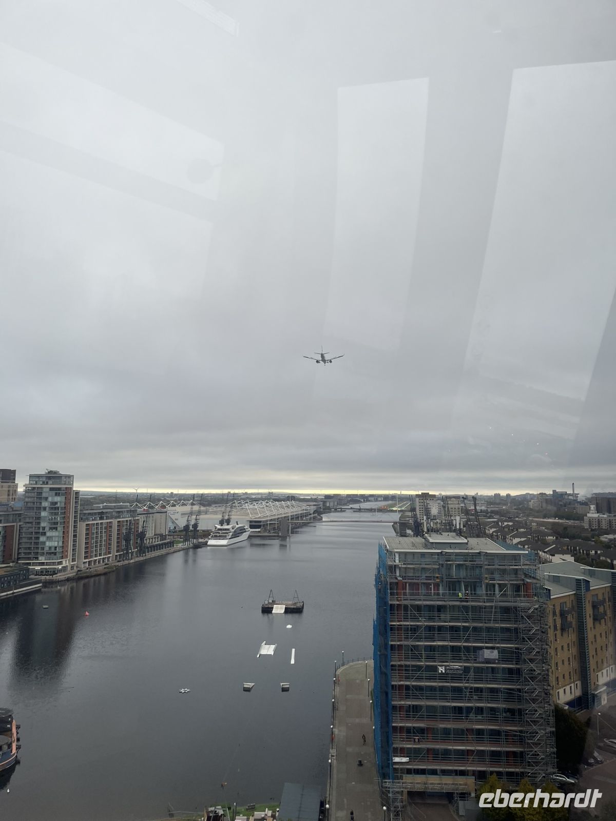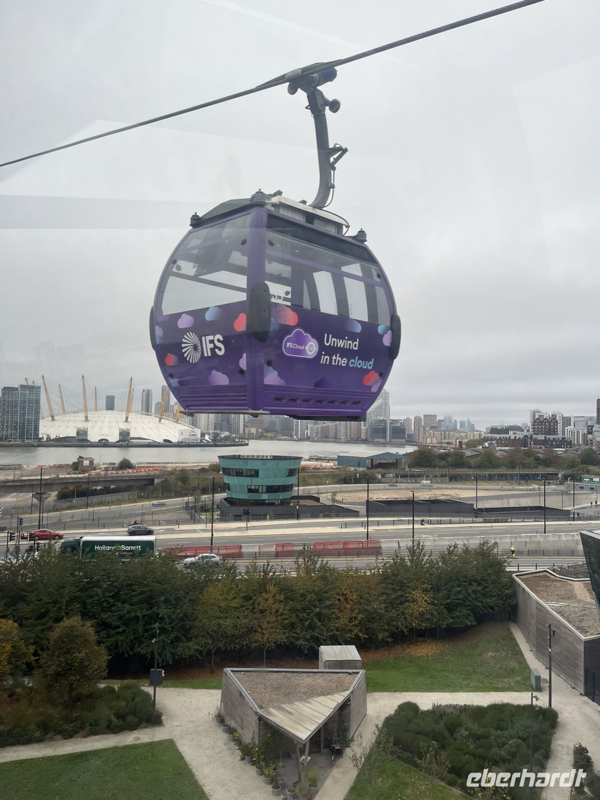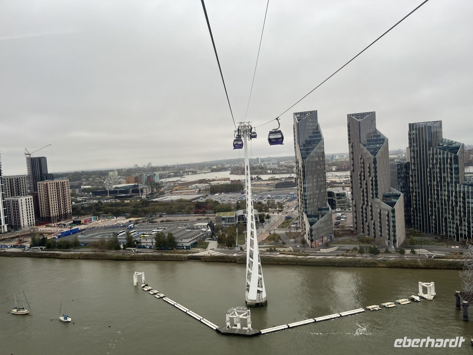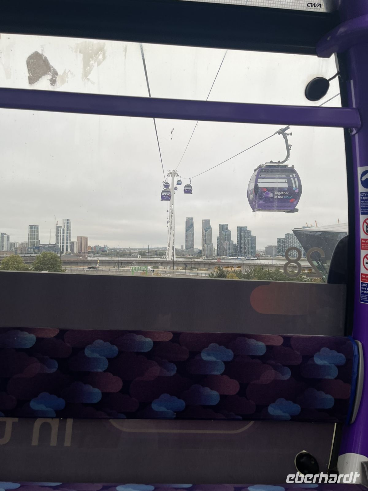 Am nächsten Morgen führte uns die Fahrt an die Themse, wo wir mit der Seilbahn über den Fluss schwebten. Der Blick auf die Skyline der Docklands und angrenzende Umgebung war ein schöner Start in den Tag.
