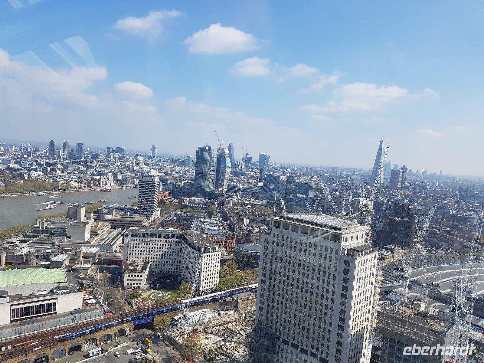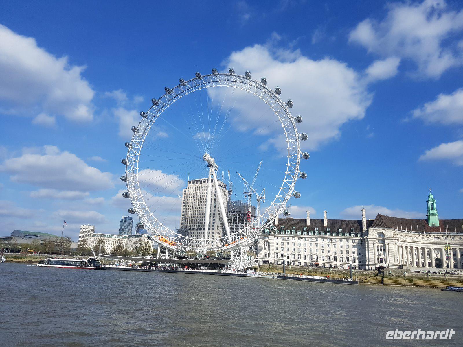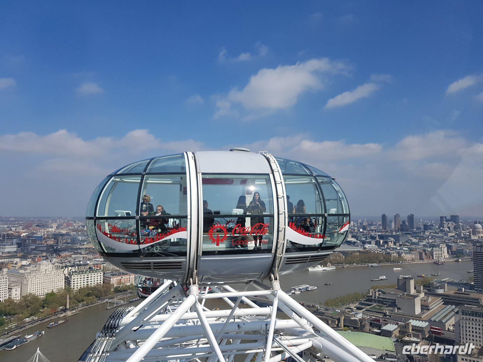 Heute steht zunächst eine Fahrt mit dem London Eye auf dem Programm. Nachdem wir nun schon einige Tage London vom Boden aus erlebt haben, rundet der Blick aus der Vogelperspektive unseren Eindruck von der britischen Metropole perfekt ab; 135m hoch genießen wir phantastische Impressionen.