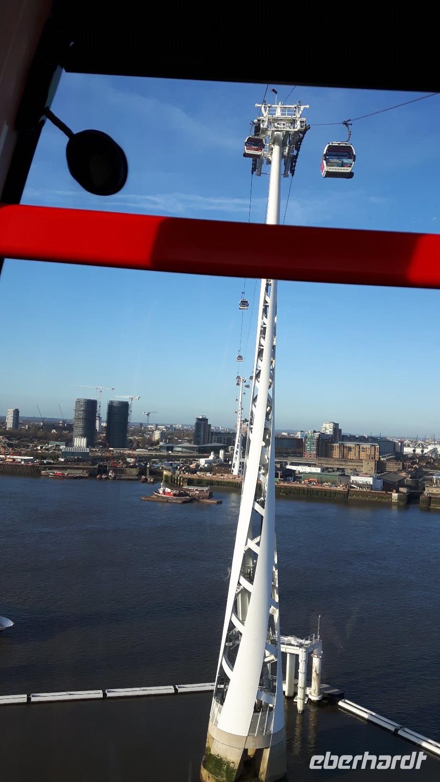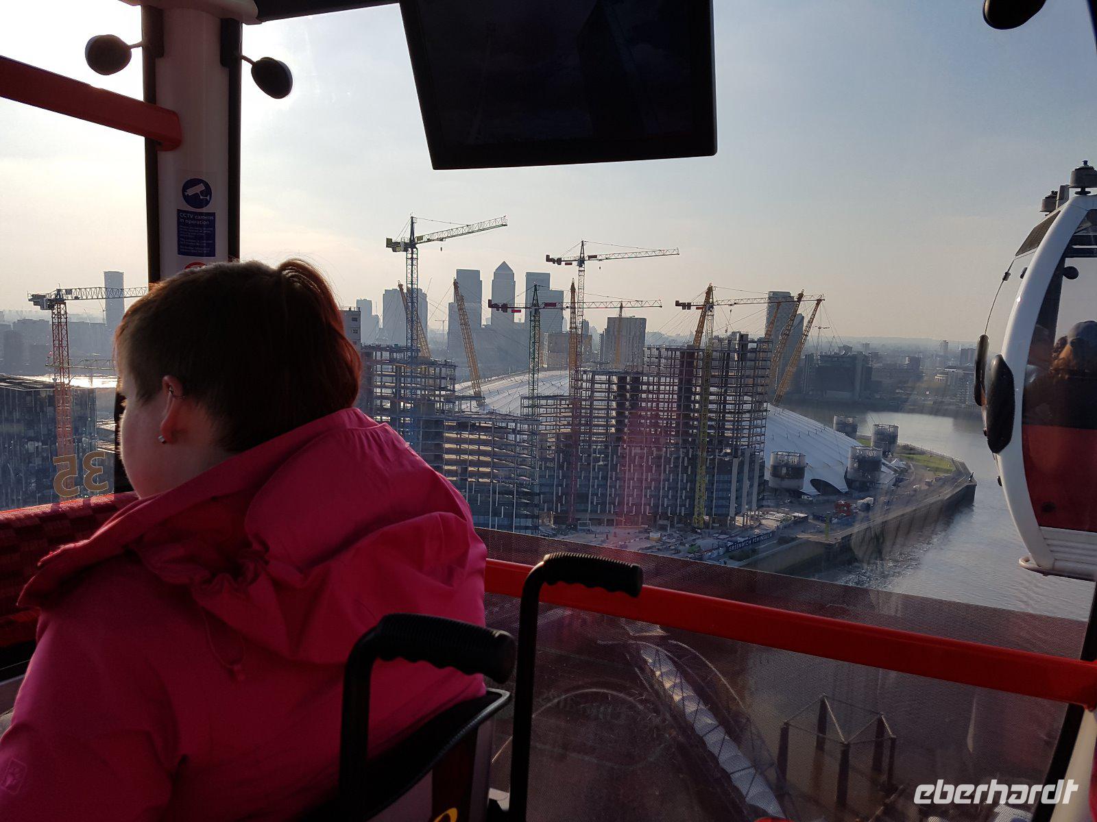 Mit dem Bus geht es dann am späten Nachmittag Richtung Millennium Dome. Zunächst aber eine Fahrt mit der Emirates Airline; ein atemberaubender „Überflug" der Themse.