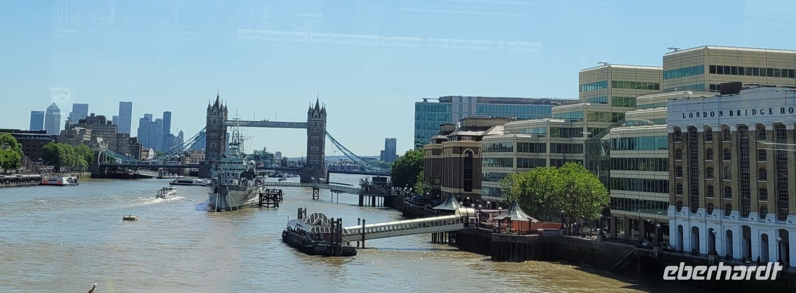 Vom Riesenrad aus spazieren wir dann entlang der Themsepromenade zum Tower. Dieses historisch wahrscheinlich bedeutendste Bauwerk London sowie das umliegende Themseareal mit dem Neuen Rathaus, Tower Bridge und HMS-Belfast lassen wir beim Spaziergang auf uns wirken.